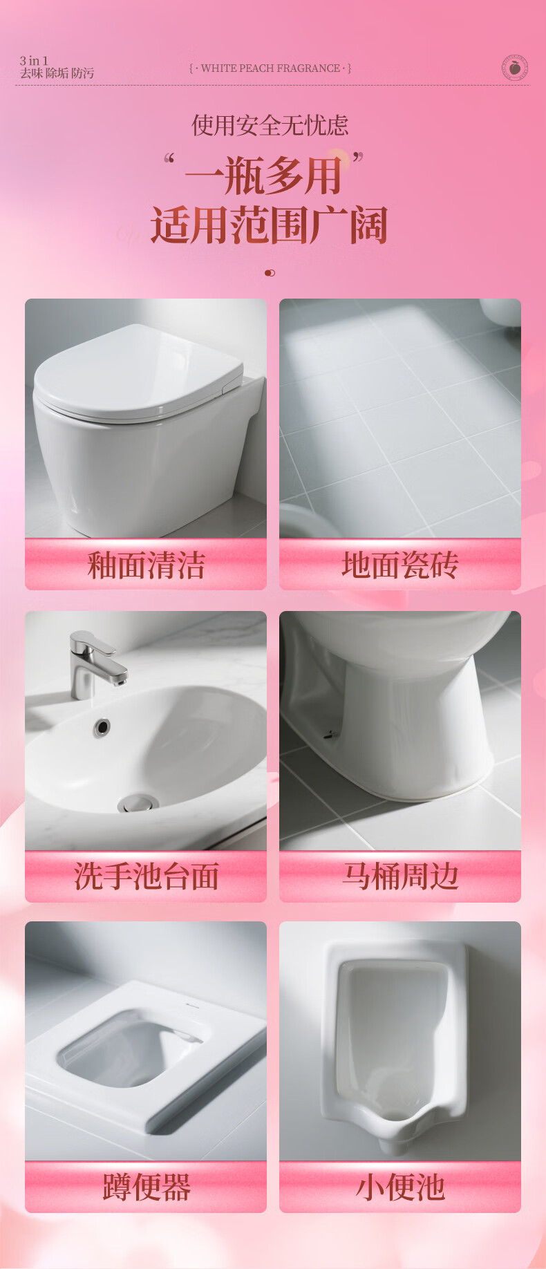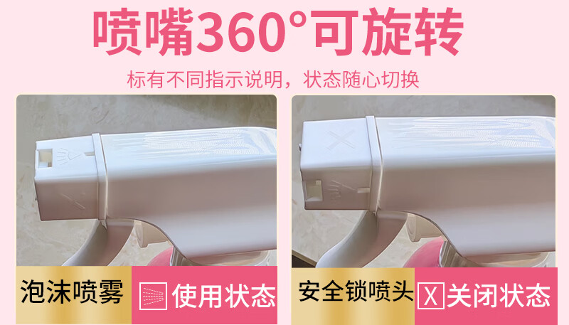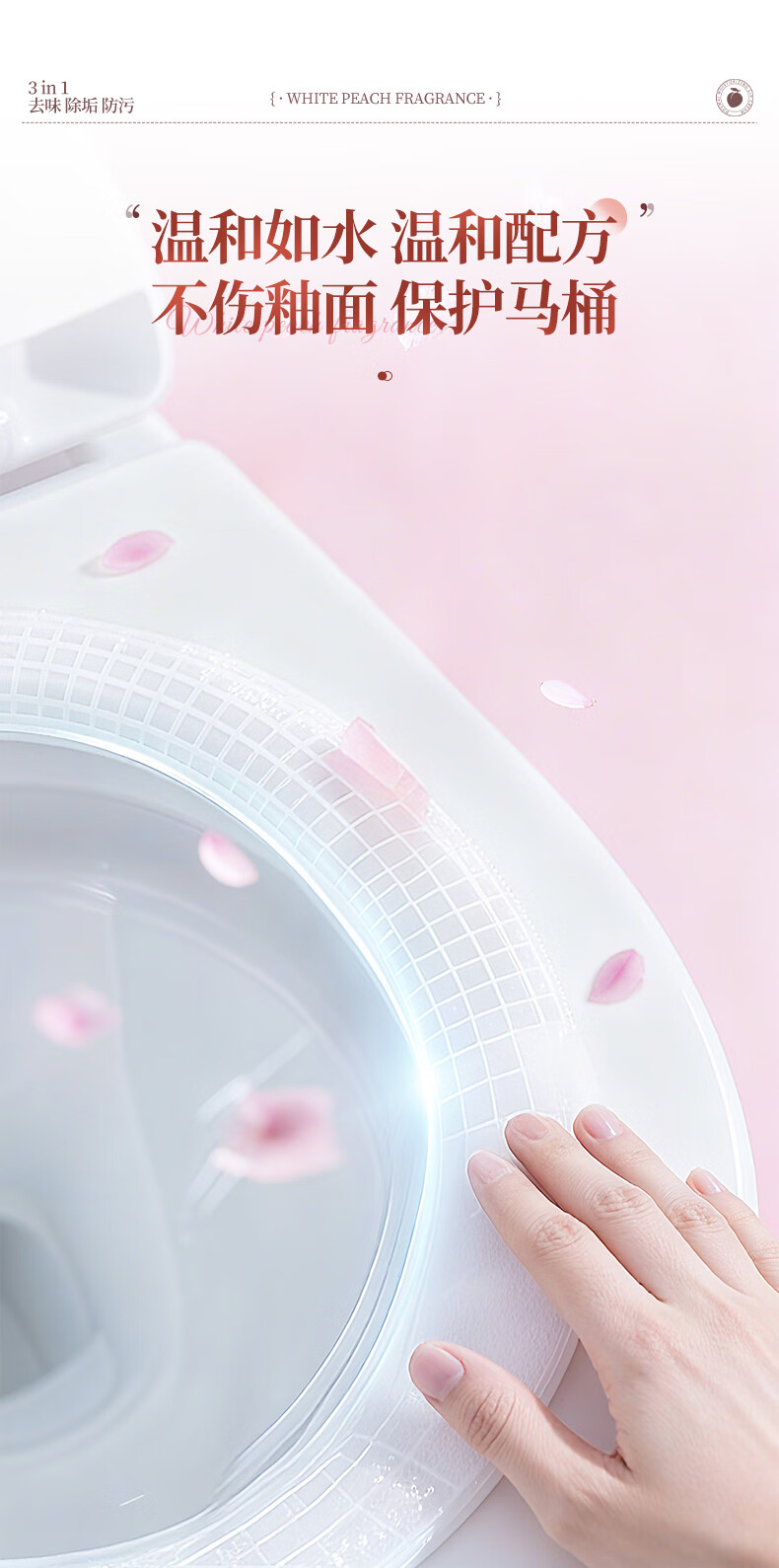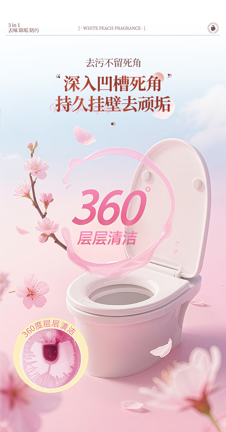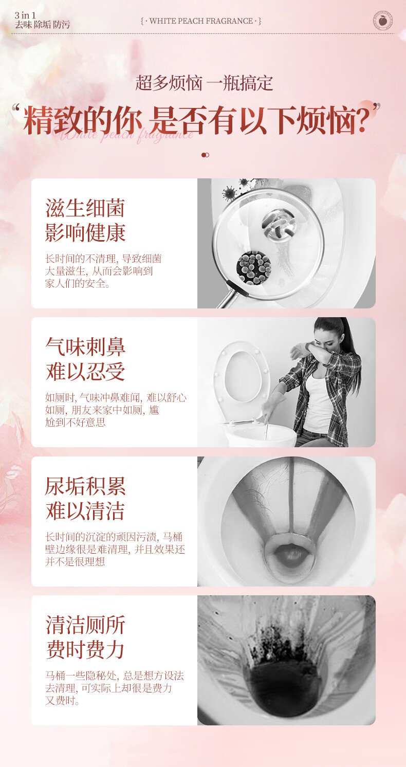 爱恩倍马桶清洁慕斯清洁剂洁厕泡泡厕所洁厕灵泡沫除垢去异味留香 白桃味 500g 2瓶 +1个喷头