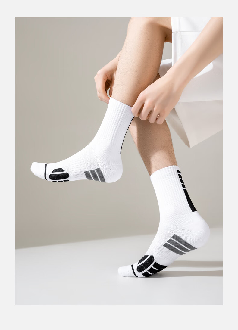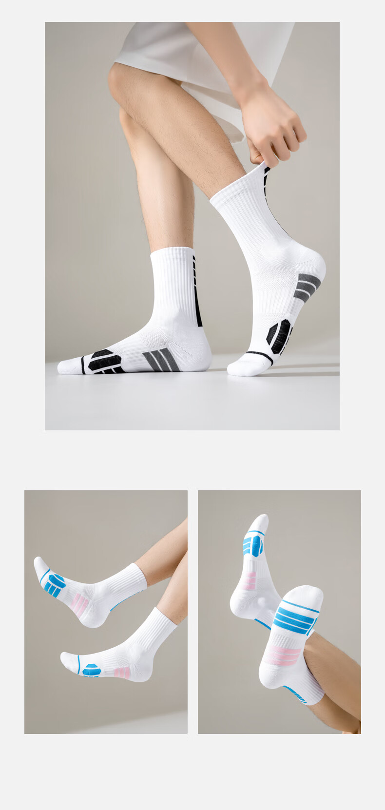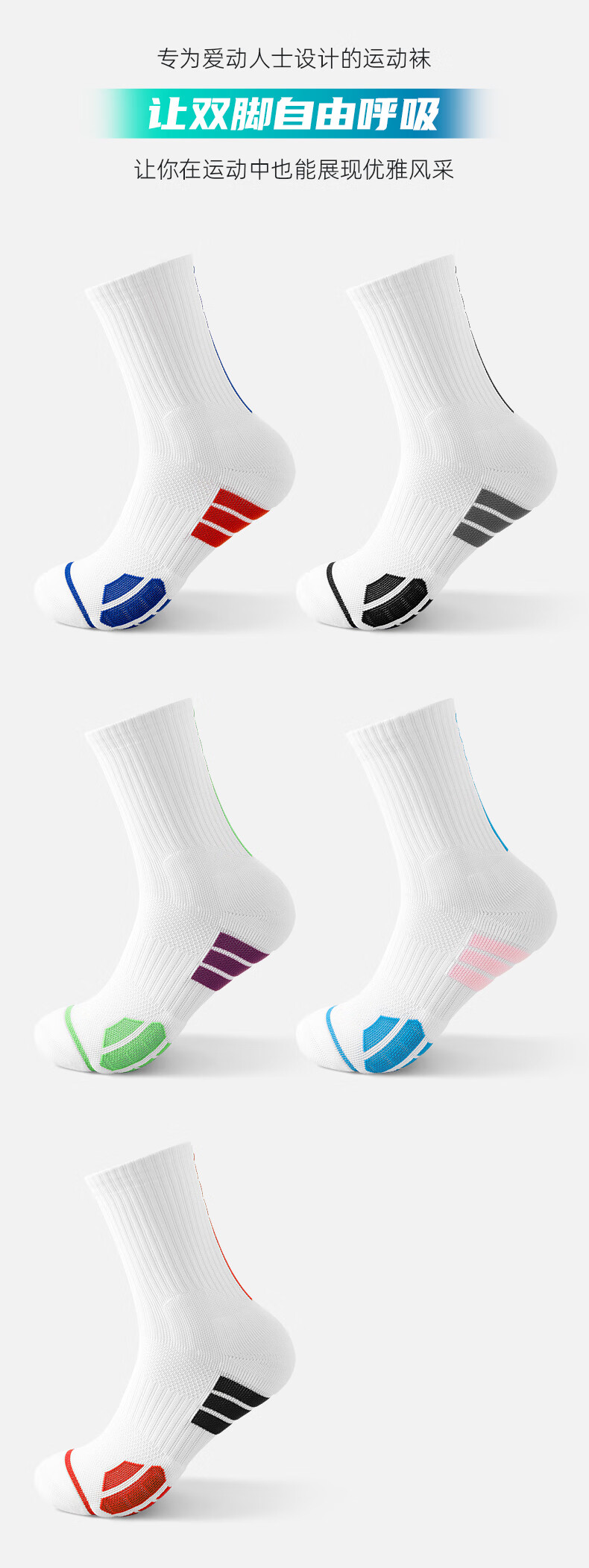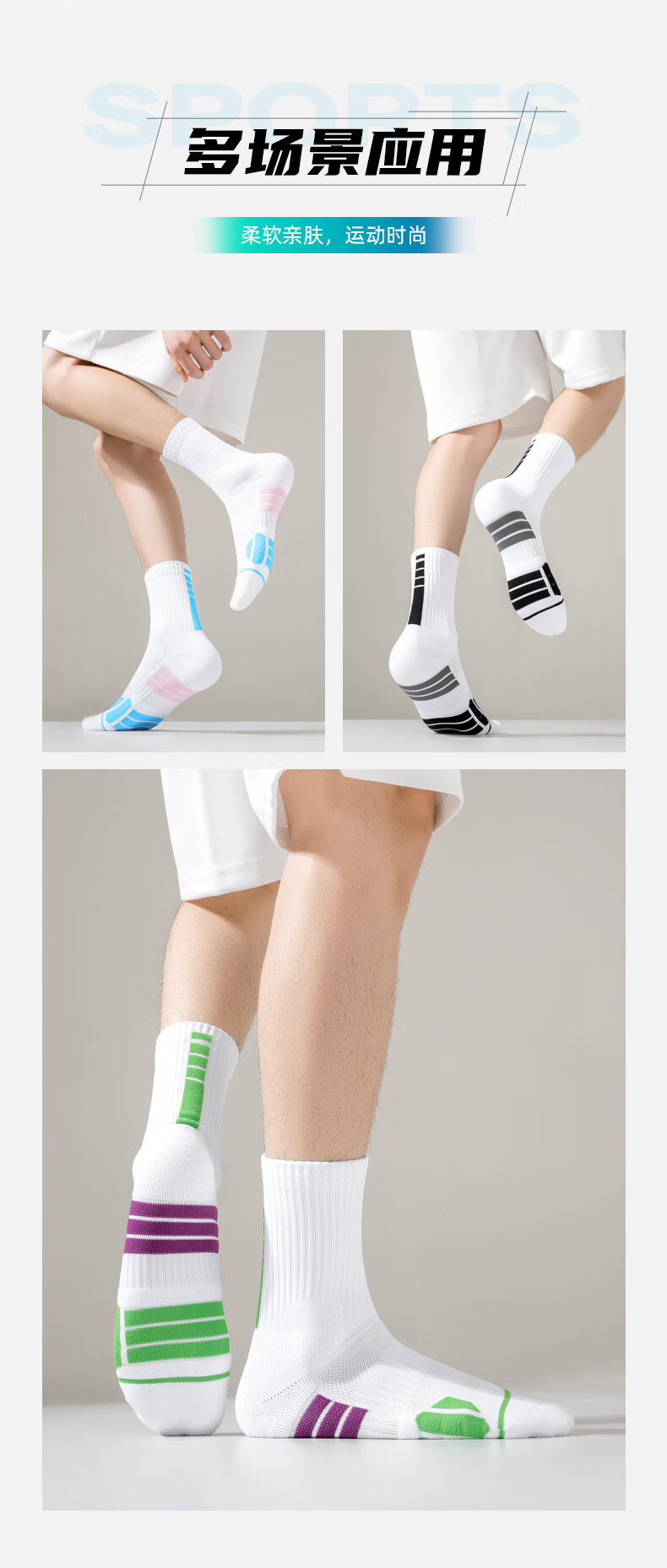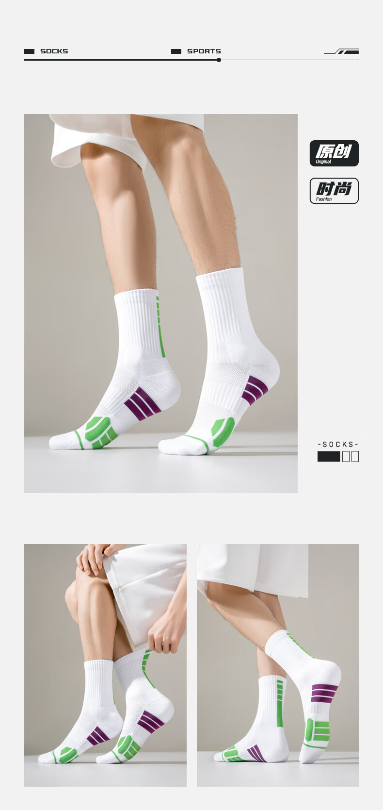 罗蒙实战专业篮球袜子时尚撞色男毛巾底跑步训练美式防滑中长筒运动袜 LM-1380专业运动袜绿紫 3双 均码 (适合38-44码)
