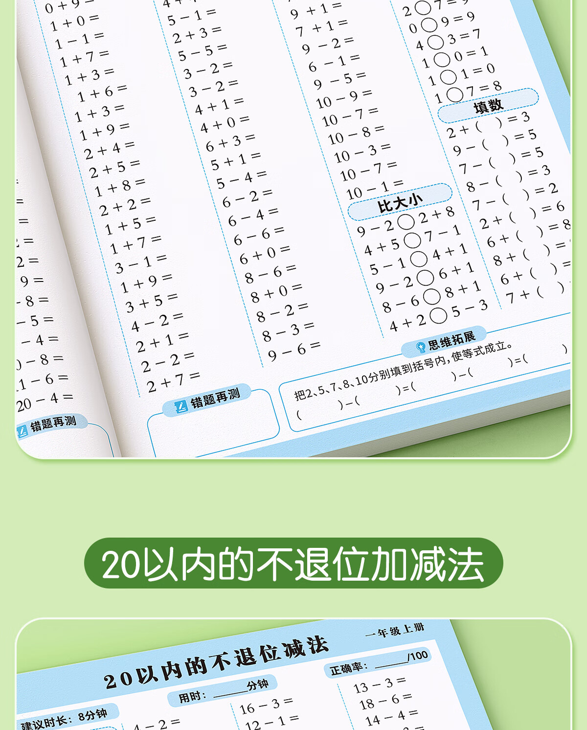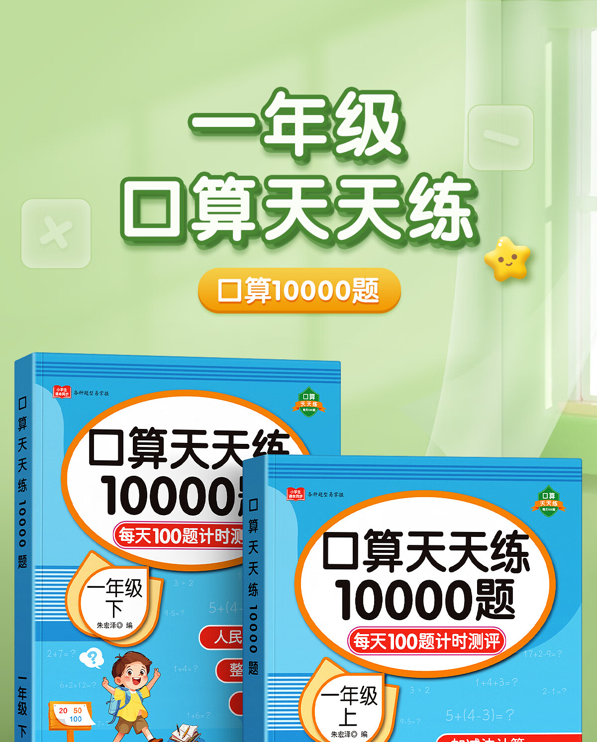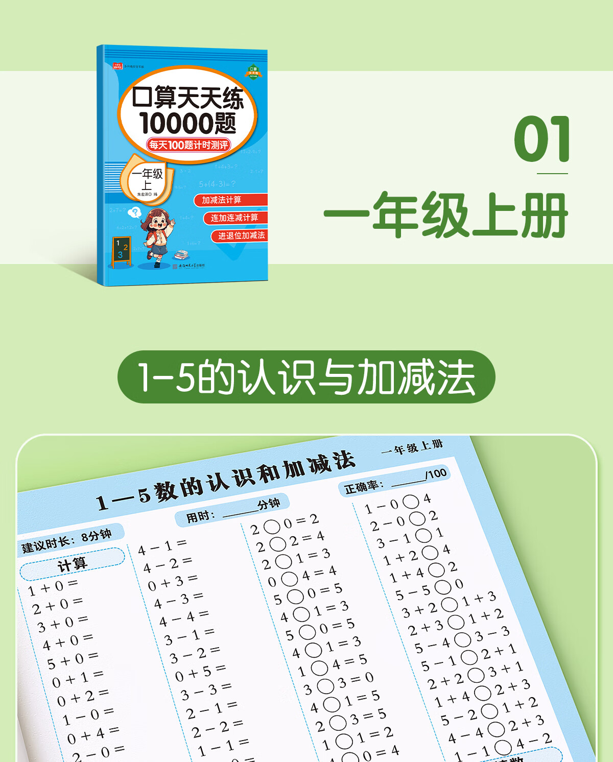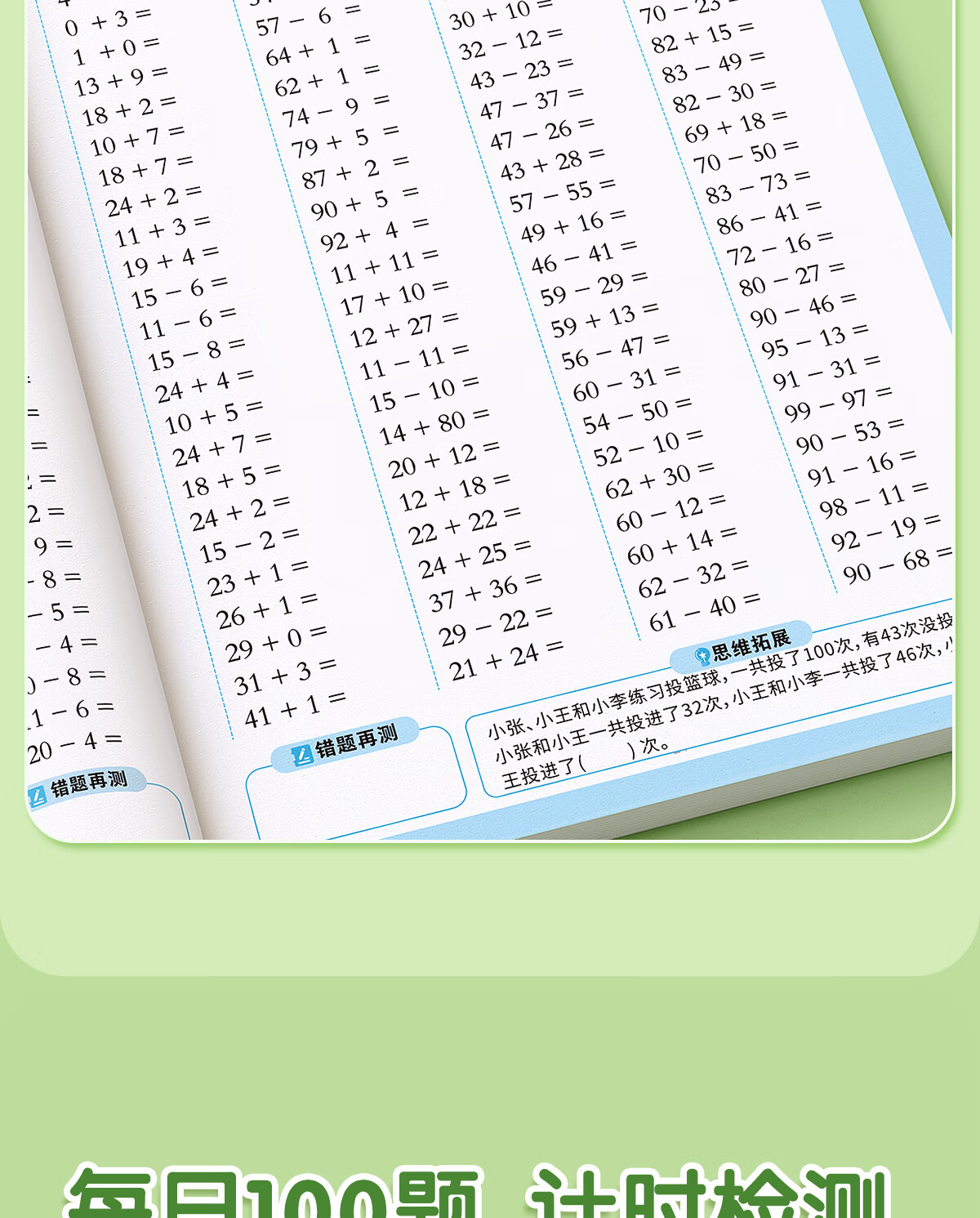 金枝叶一年级上册口算100以内加减法混合练习1-6年级算术题人教版数学练习册口算题卡幼小衔接心算速算二年级应用题每日一练 一年级上册口算10000题