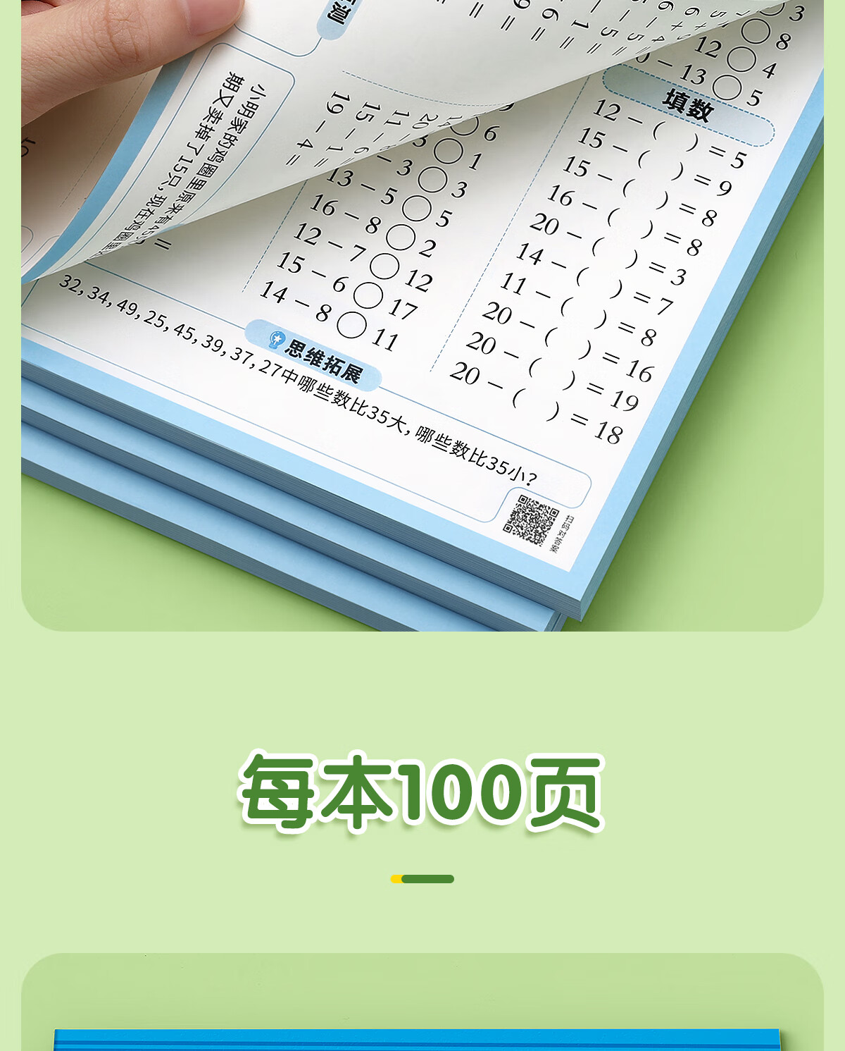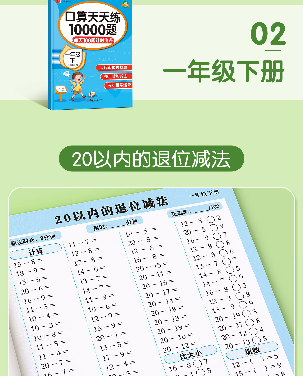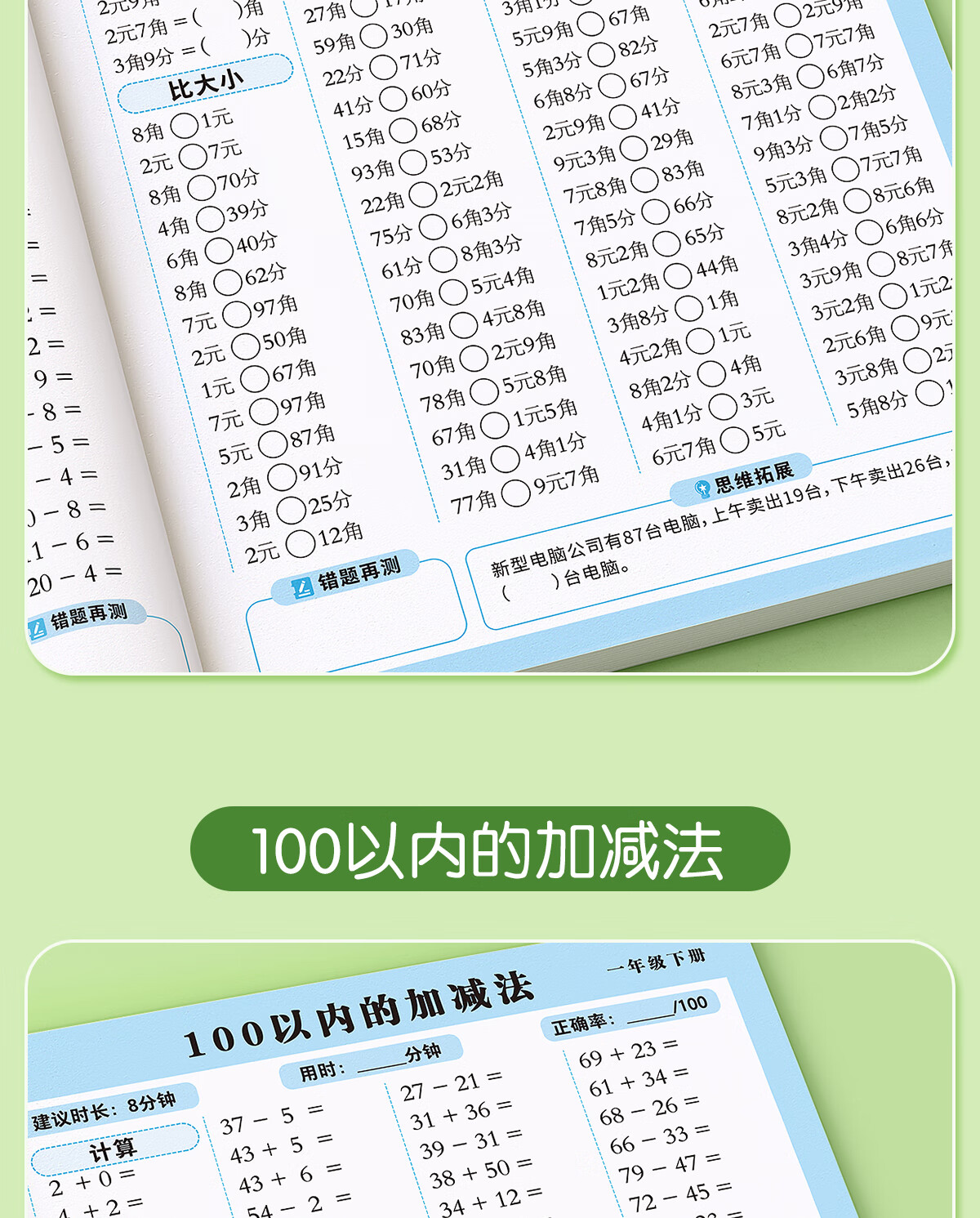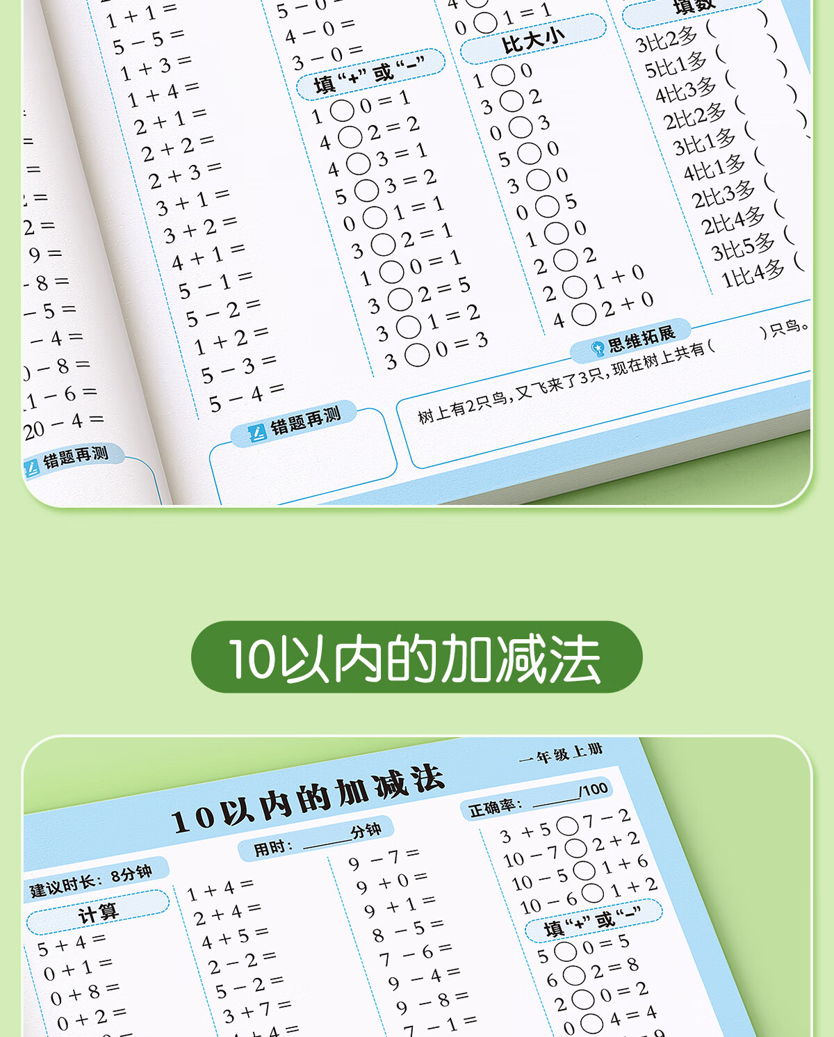 金枝叶一年级上册口算100以内加减法混合练习1-6年级算术题人教版数学练习册口算题卡幼小衔接心算速算二年级应用题每日一练 一年级上册口算10000题