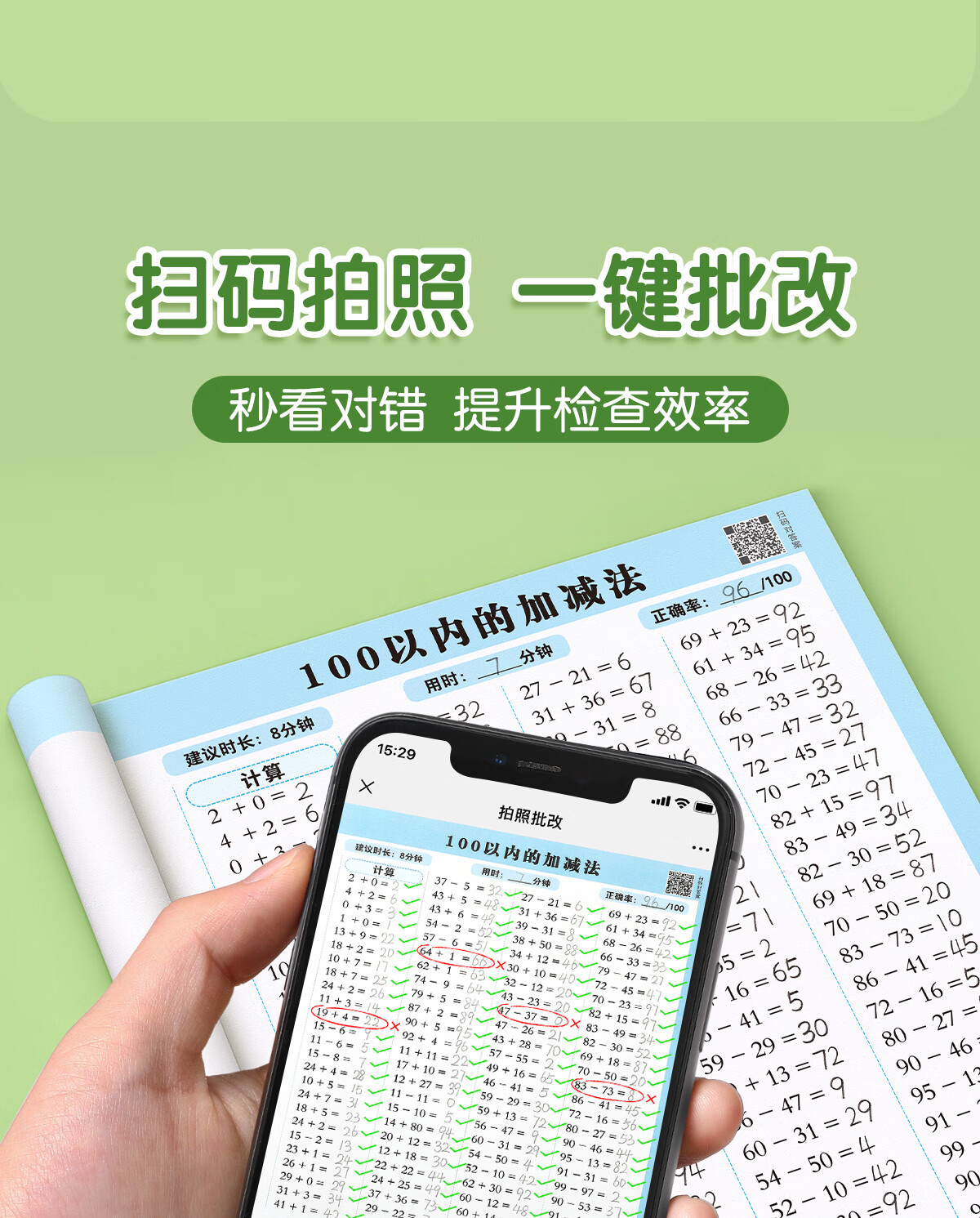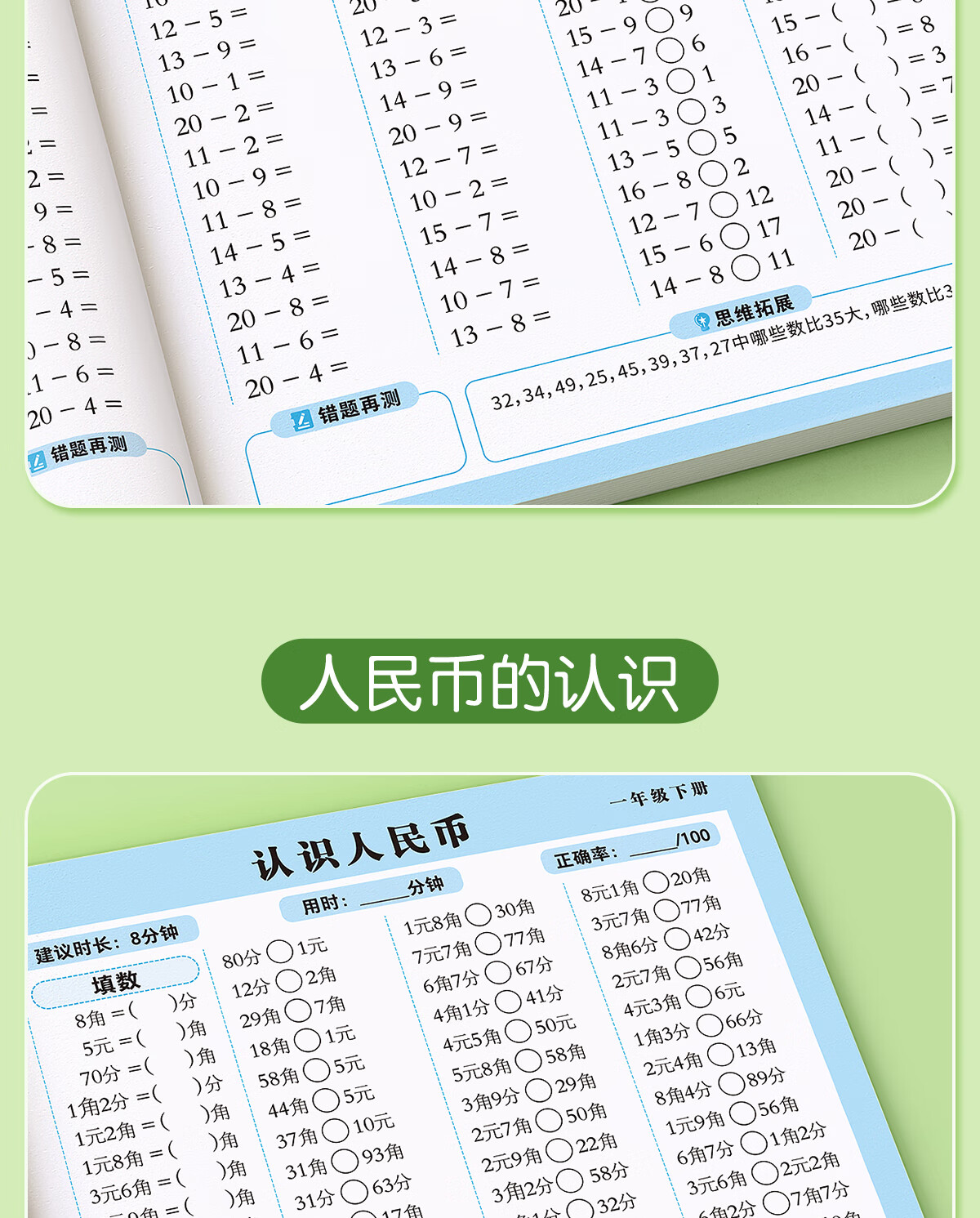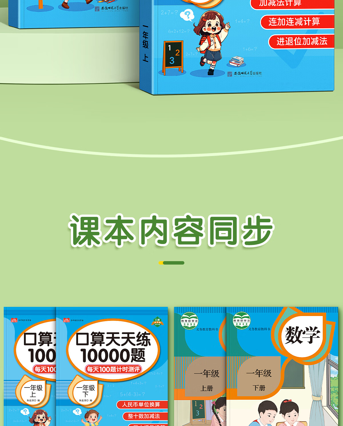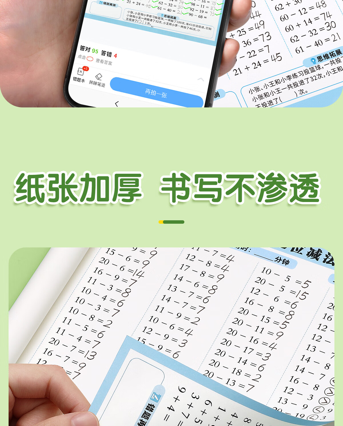 金枝叶一年级上册口算100以内加减法混合练习1-6年级算术题人教版数学练习册口算题卡幼小衔接心算速算二年级应用题每日一练 一年级上册口算10000题