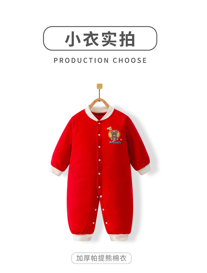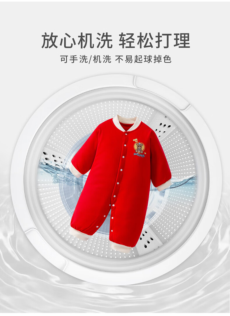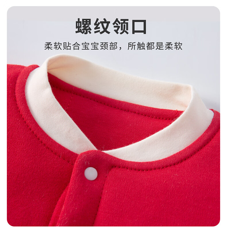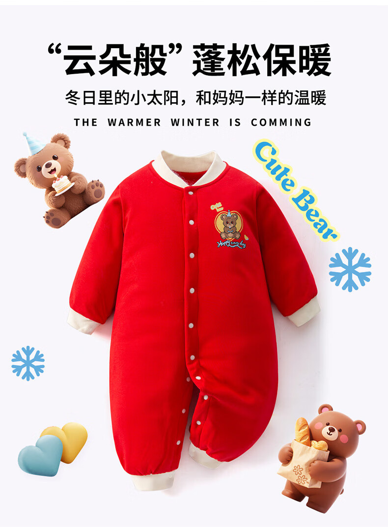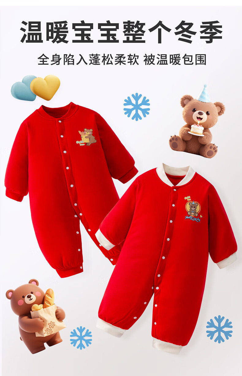 班杰威尔(Banjvall)婴儿衣服秋冬季夹棉连体衣加厚宝宝棉衣红色外出服过年衣服 加厚月亮熊棉衣 90cm