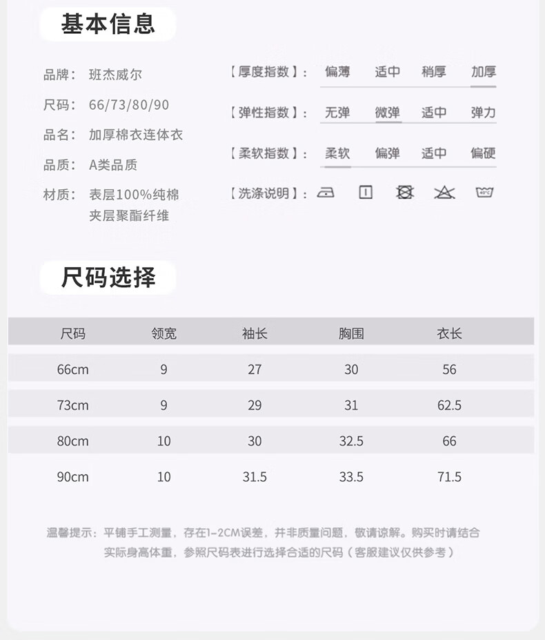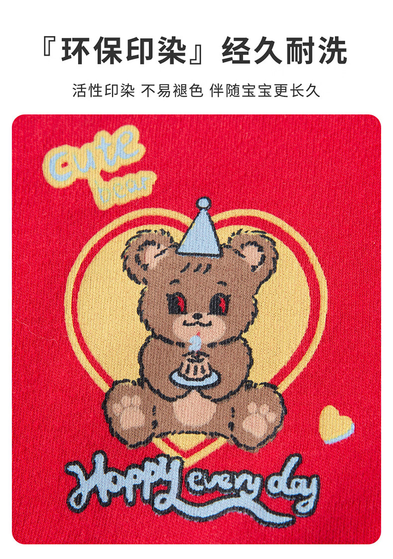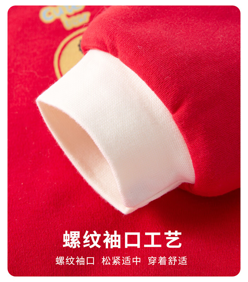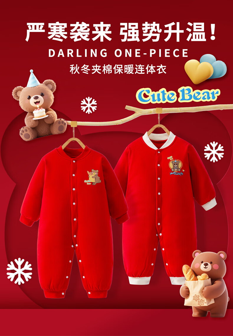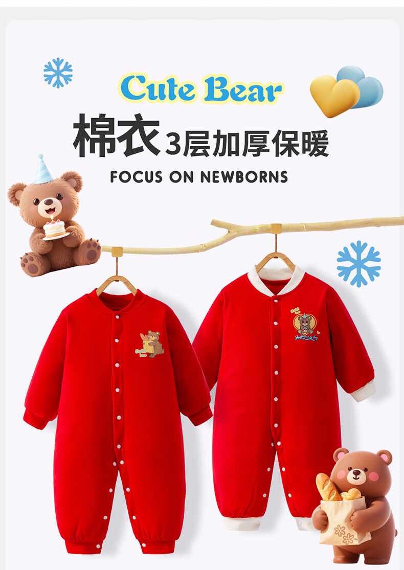 班杰威尔(Banjvall)婴儿衣服秋冬季夹棉连体衣加厚宝宝棉衣红色外出服过年衣服 加厚月亮熊棉衣 90cm