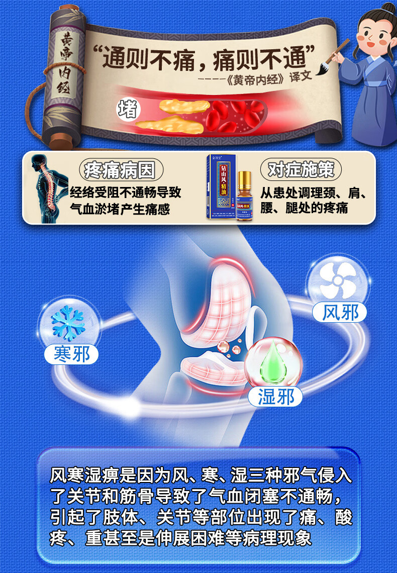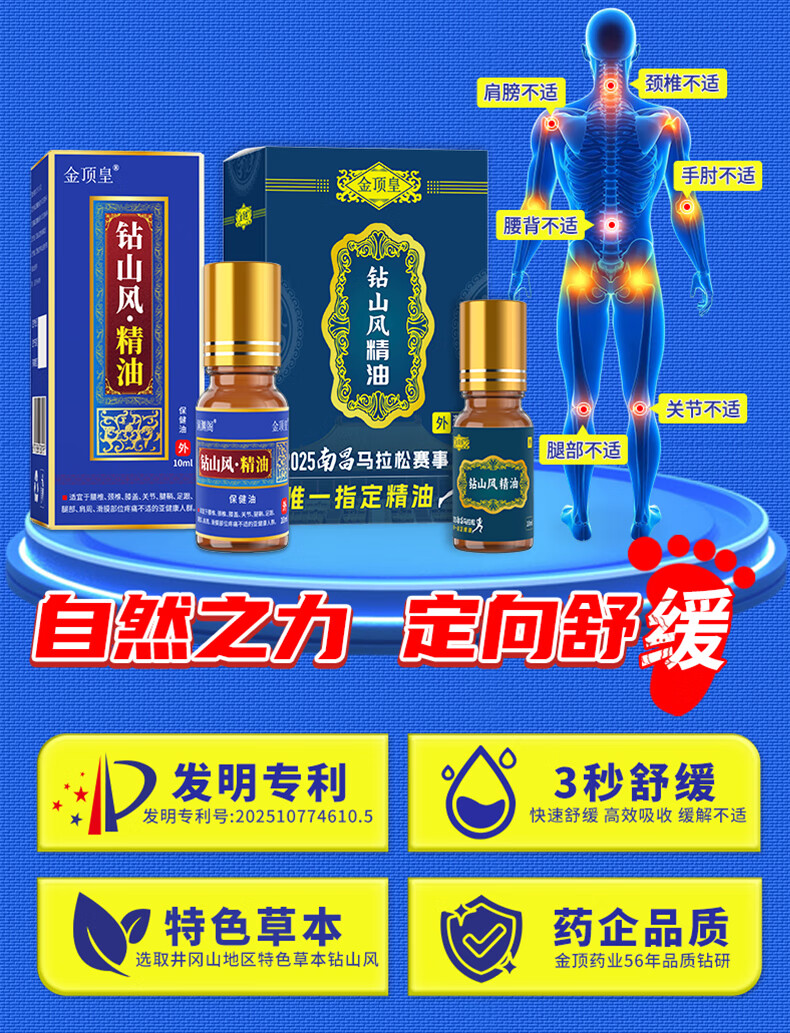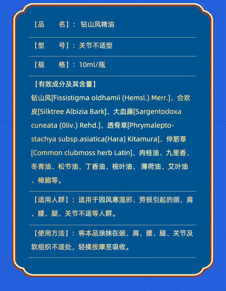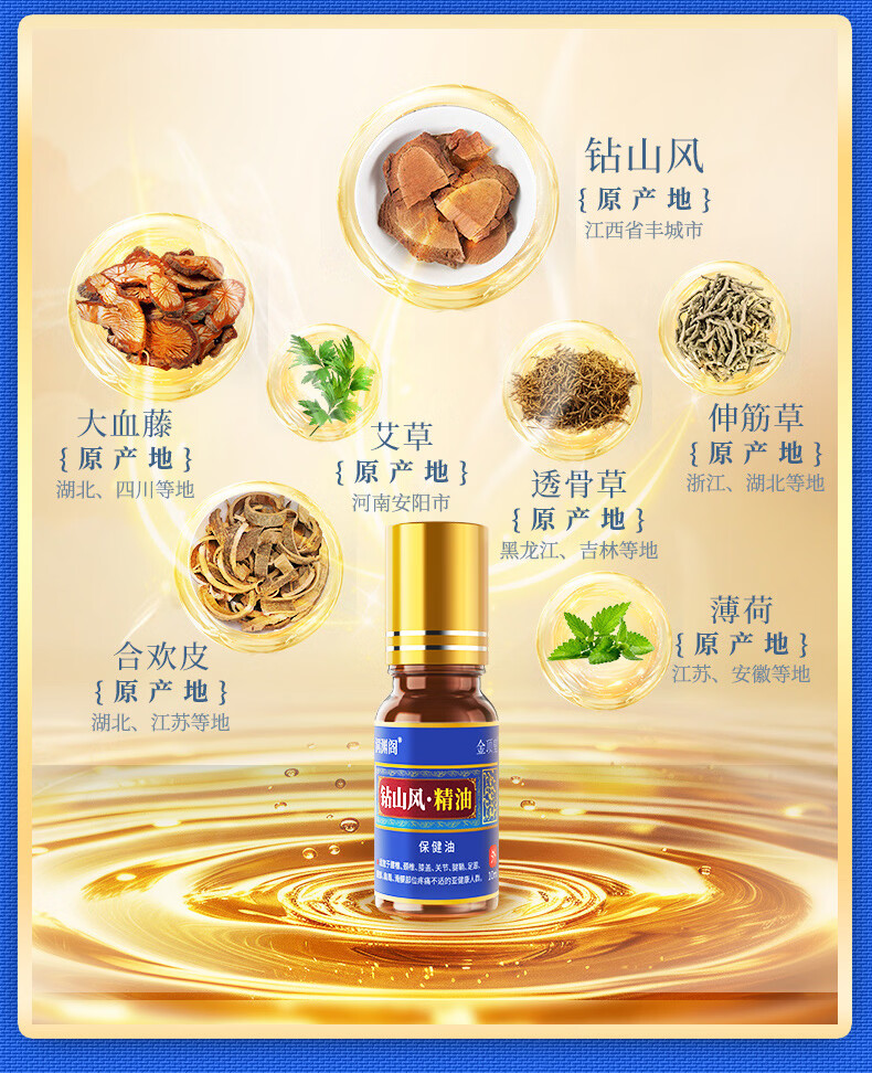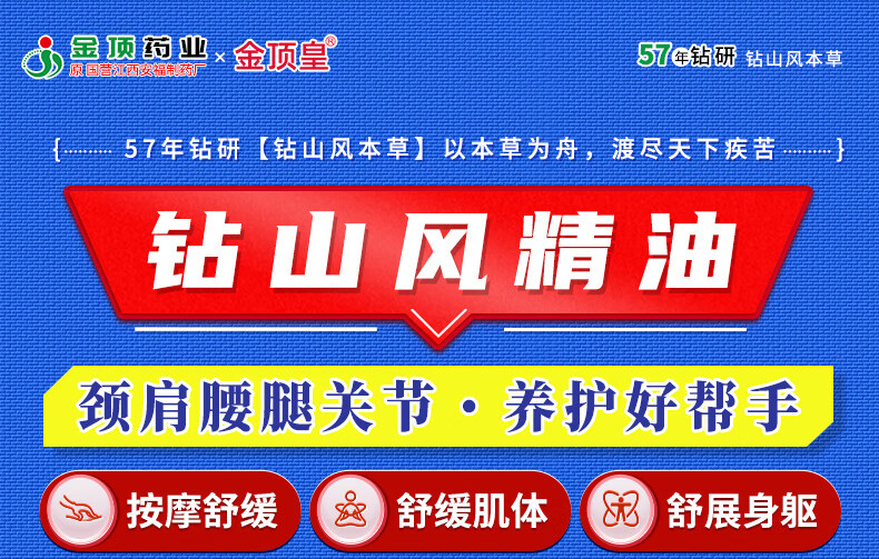 金顶皇钻山风艾草薄荷精油按摩全身身体驱风活络油舒筋活血化瘀通经络 2瓶装
