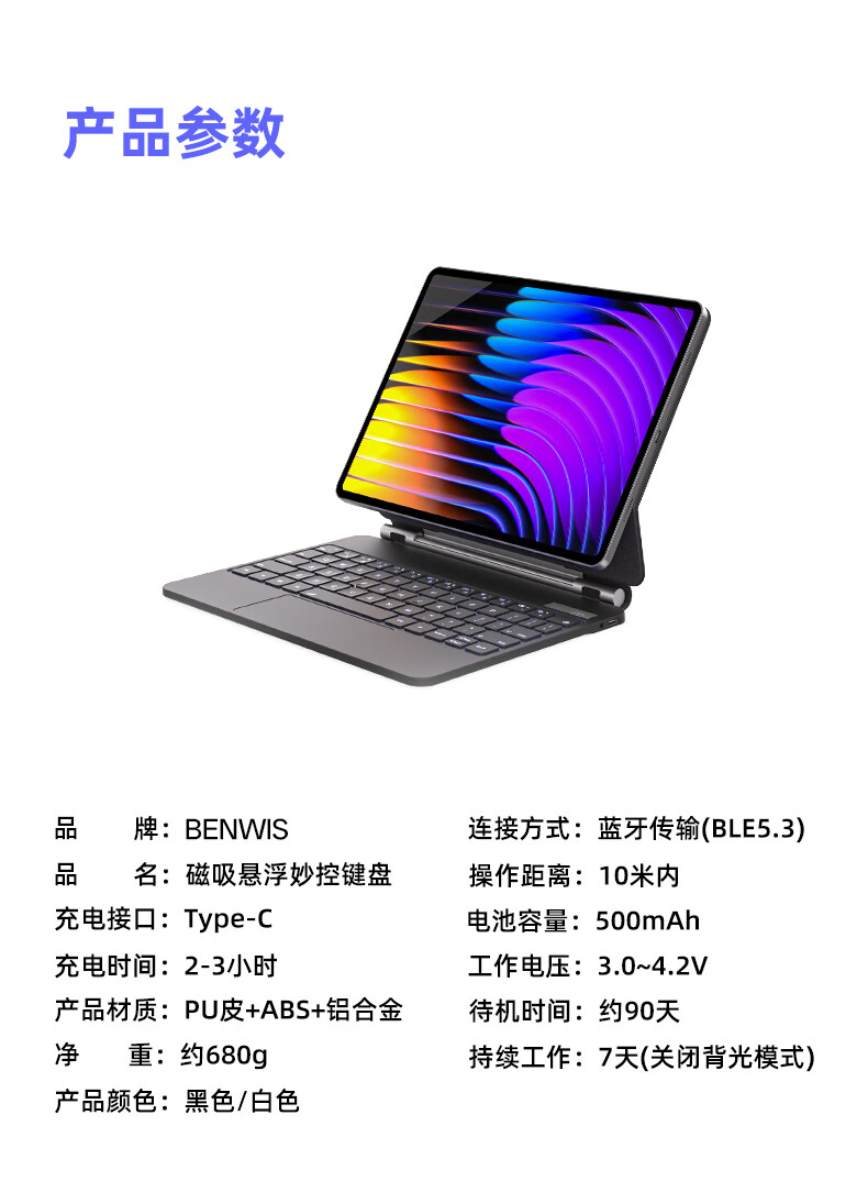 奔维斯适用于小米pad8pro悬浮键盘2025款小米平板8/7spro键盘11.2英寸7/6spro外接妙控蓝牙键盘12.5寸套 【官配白】磁吸悬浮-蓝牙数显-超静音-送键盘膜 适用于小米8/8Pro-11.2英寸
