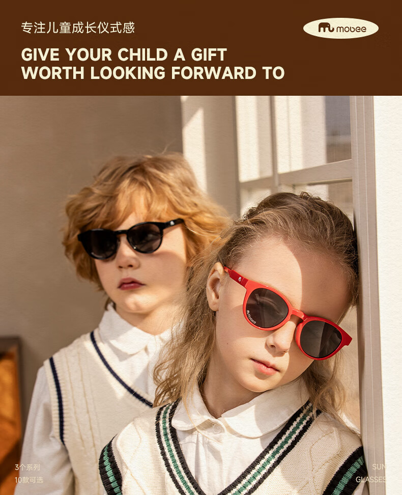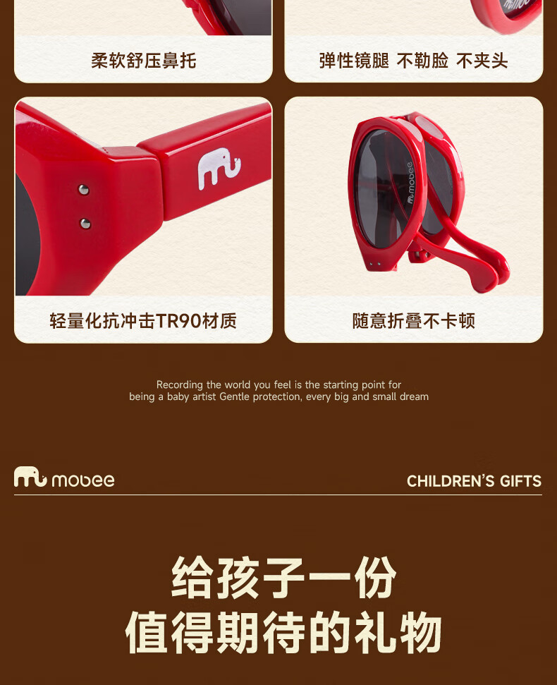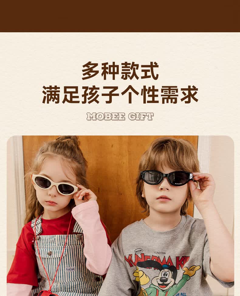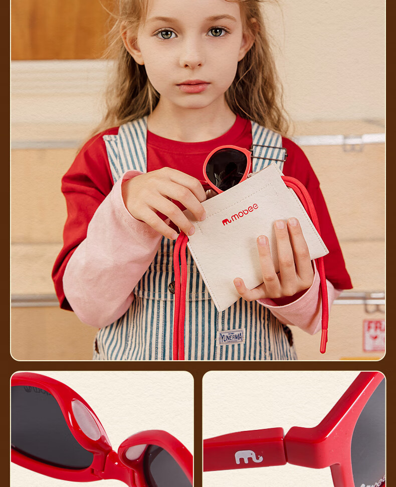 mobee儿童墨镜太阳镜3-6岁12宝宝防晒可折叠uv偏光小模特拍照 方框可折叠款-暗影黑 佩戴无负担 专业护眼 无惧强光
