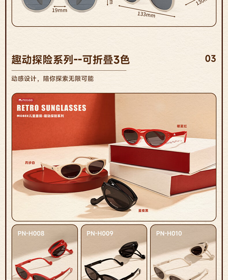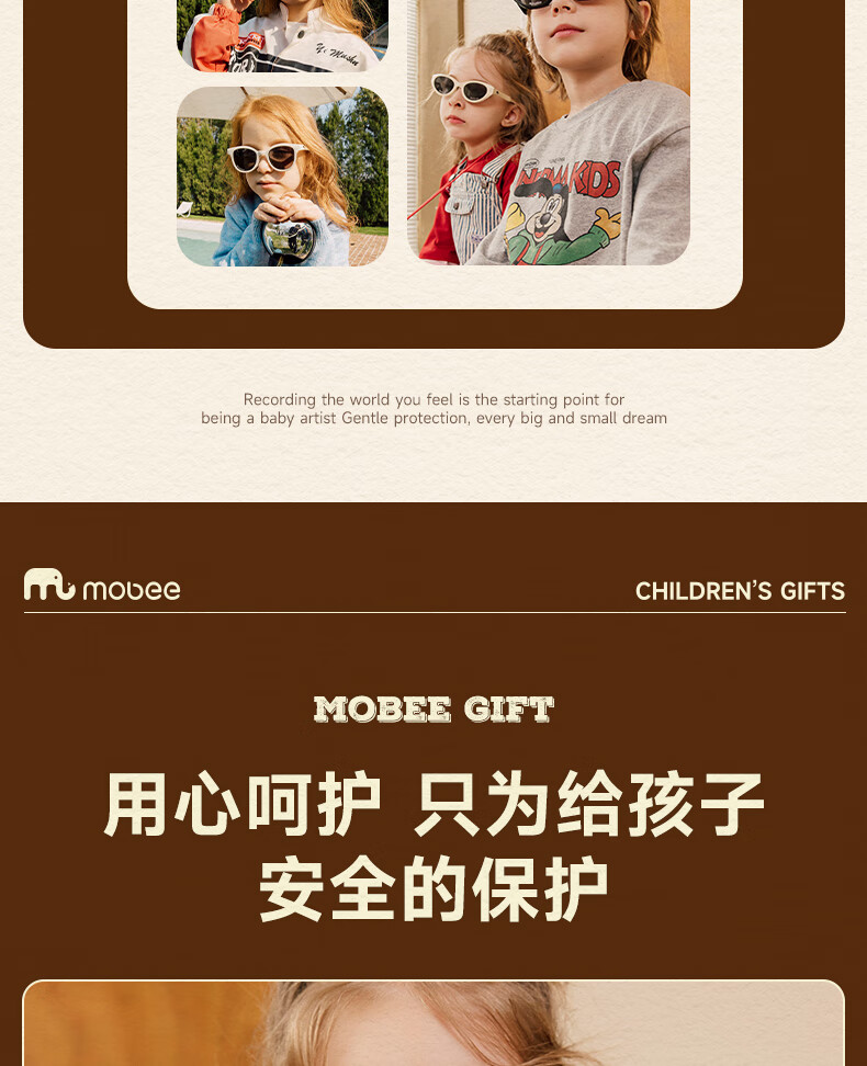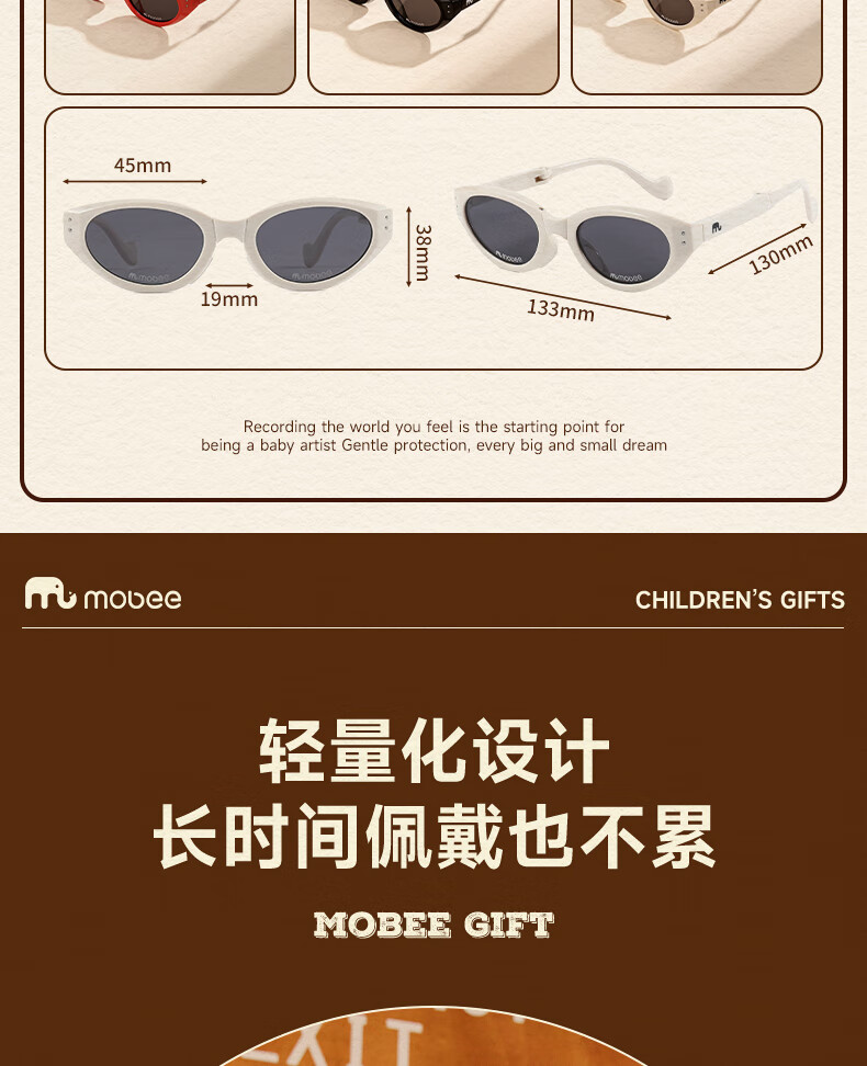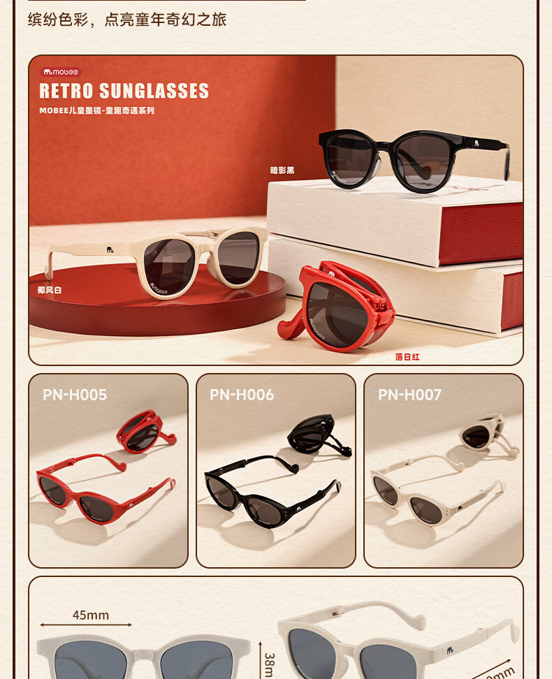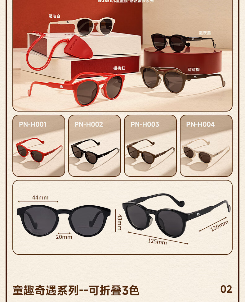mobee儿童墨镜太阳镜3-6岁12宝宝防晒可折叠uv偏光小模特拍照 方框可折叠款-暗影黑 佩戴无负担 专业护眼 无惧强光