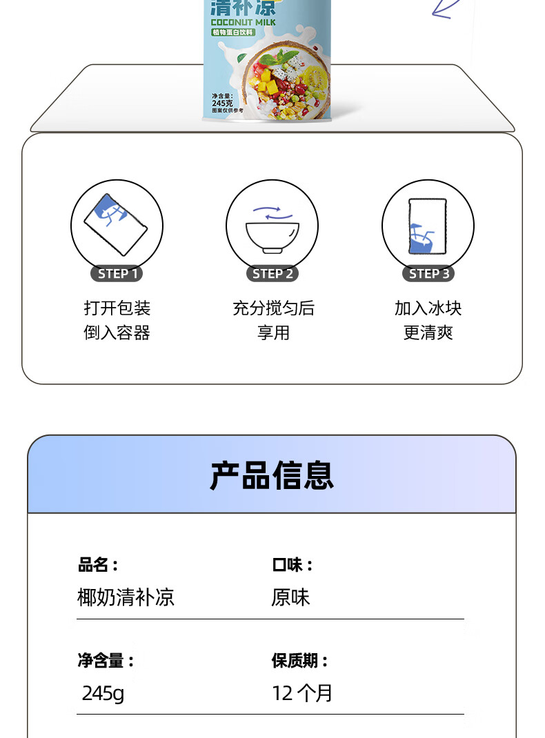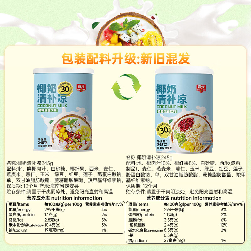 春光 食品椰奶清补凉245g*6罐/箱海南特产椰汁饮品植物蛋白饮料代餐 0糖椰奶清补凉245g*6