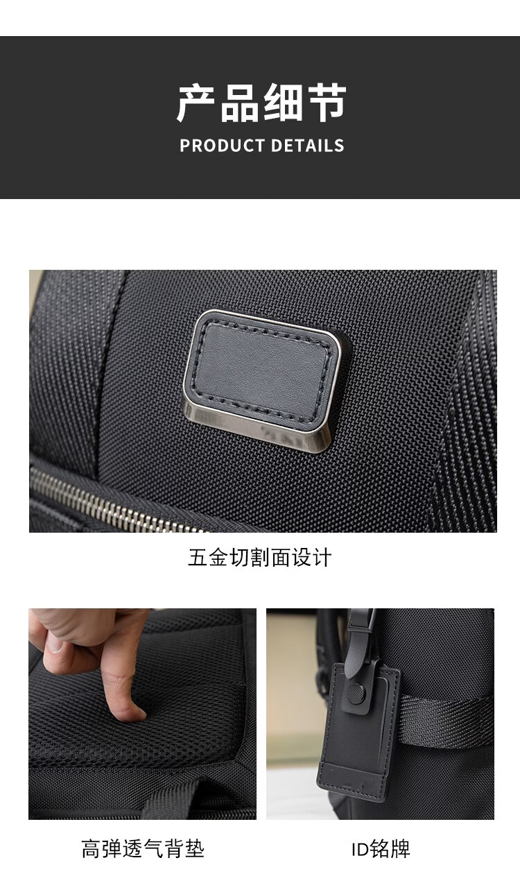 弹道尼龙双肩包男士商务通勤出差旅行大容量16寸防水电脑背包 黑色 232389黑色