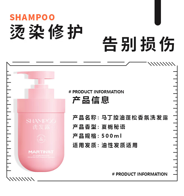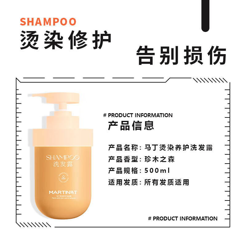 马丁(Martin)男/女士通用香氛植萃清爽洗发露深层清洁洗发水乳护发素套装礼物 烫染洗护套装 500ml*2瓶