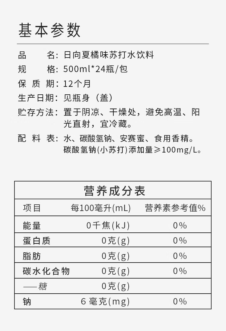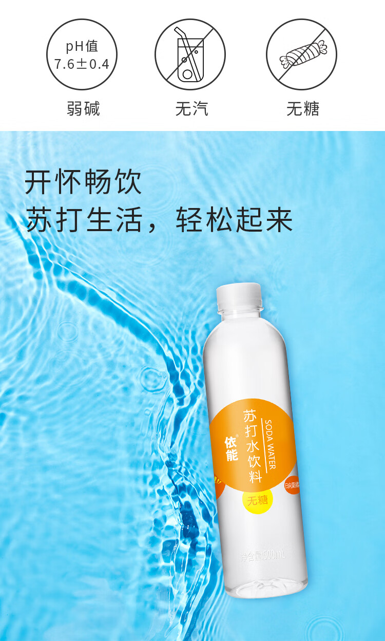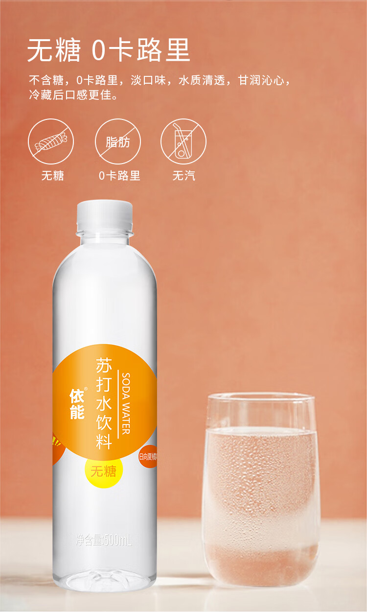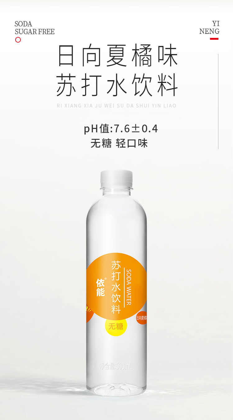 依能 日向夏橘味苏打水 无糖无汽弱碱 0脂饮料 500ml*24瓶 塑膜装