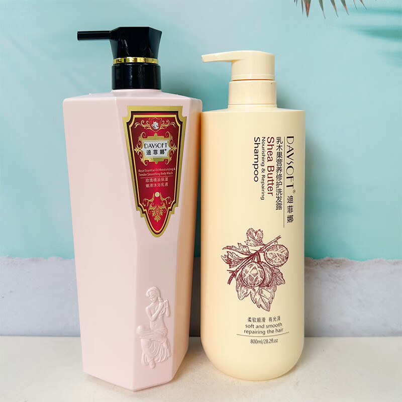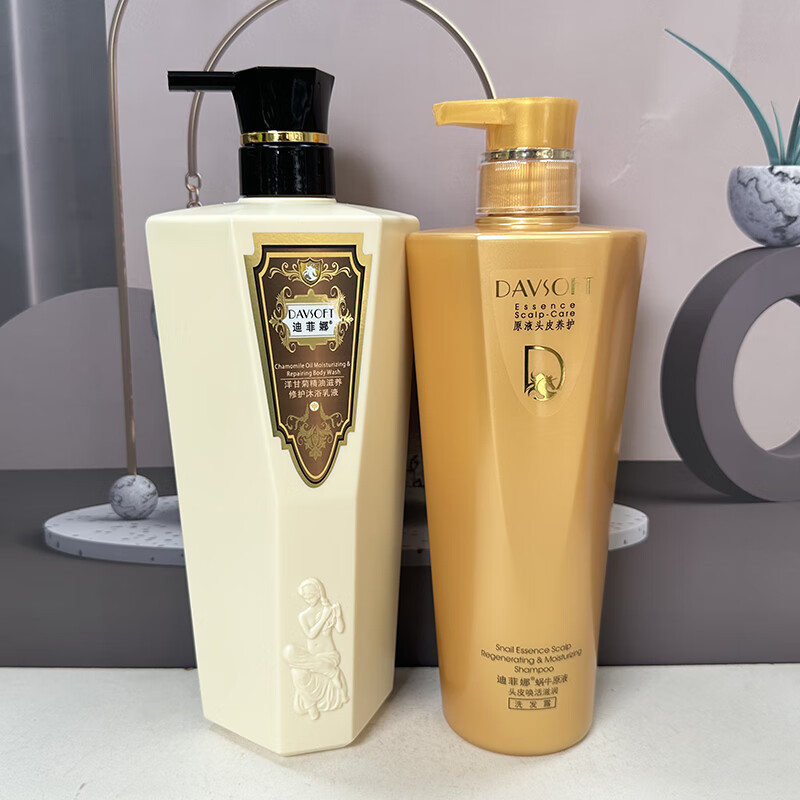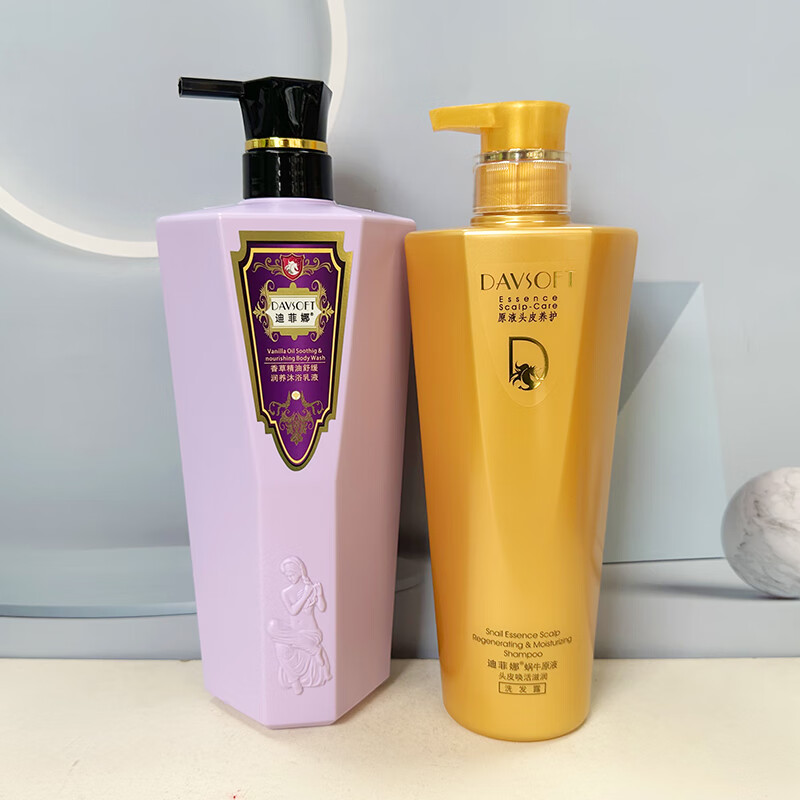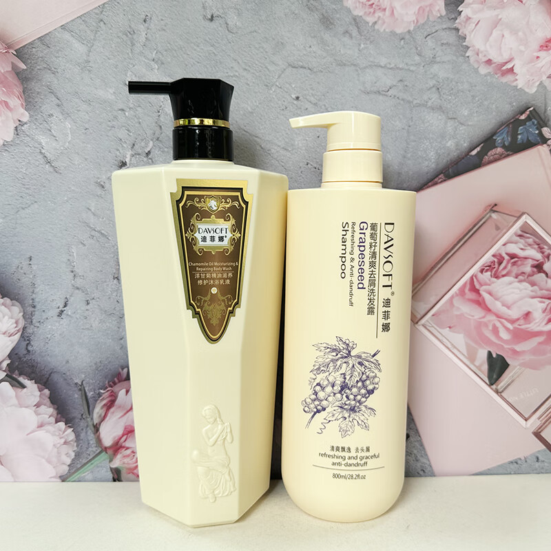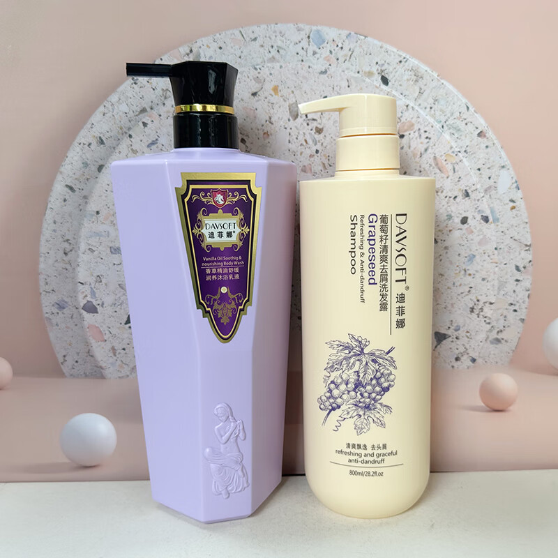 迪菲娜洗发水沐浴露套装蜗牛茶树洋甘菊香草玫瑰滋润烫染补水保湿 葡萄籽洗发800ml香草沐浴900ml