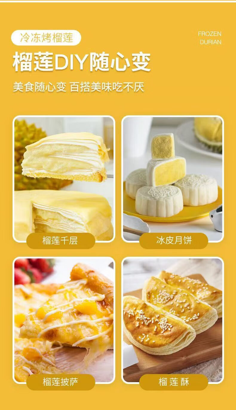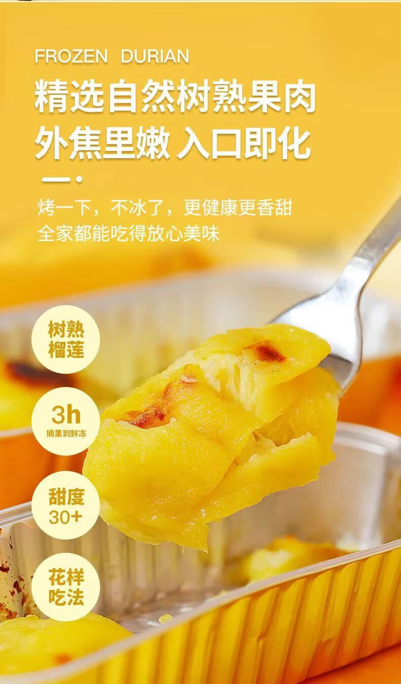 烤榴莲小金条泰国榴莲冷冻金枕榴莲纯果肉无核装加热即食自然树熟 100g/盒*5【无壳无核】加热5分钟