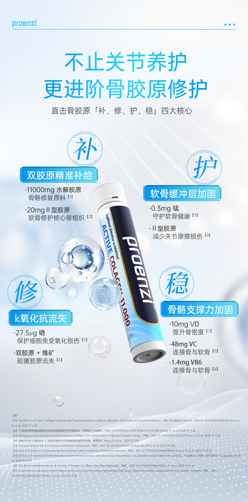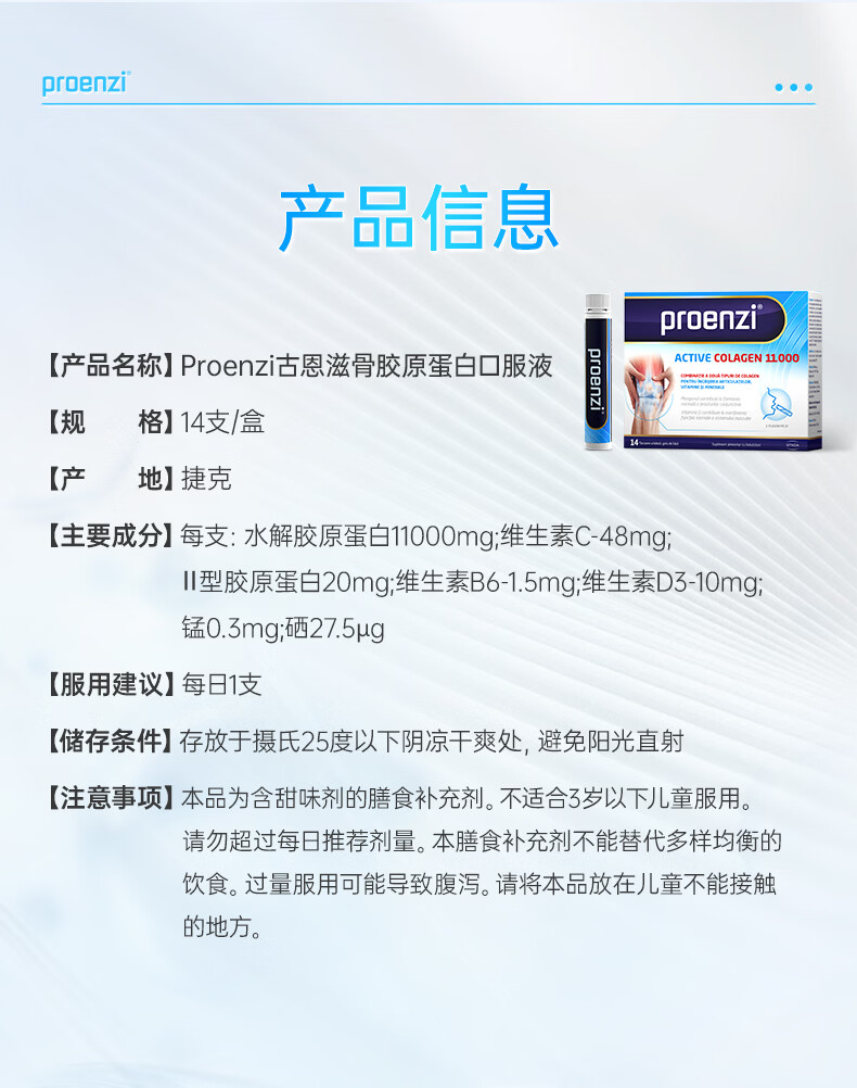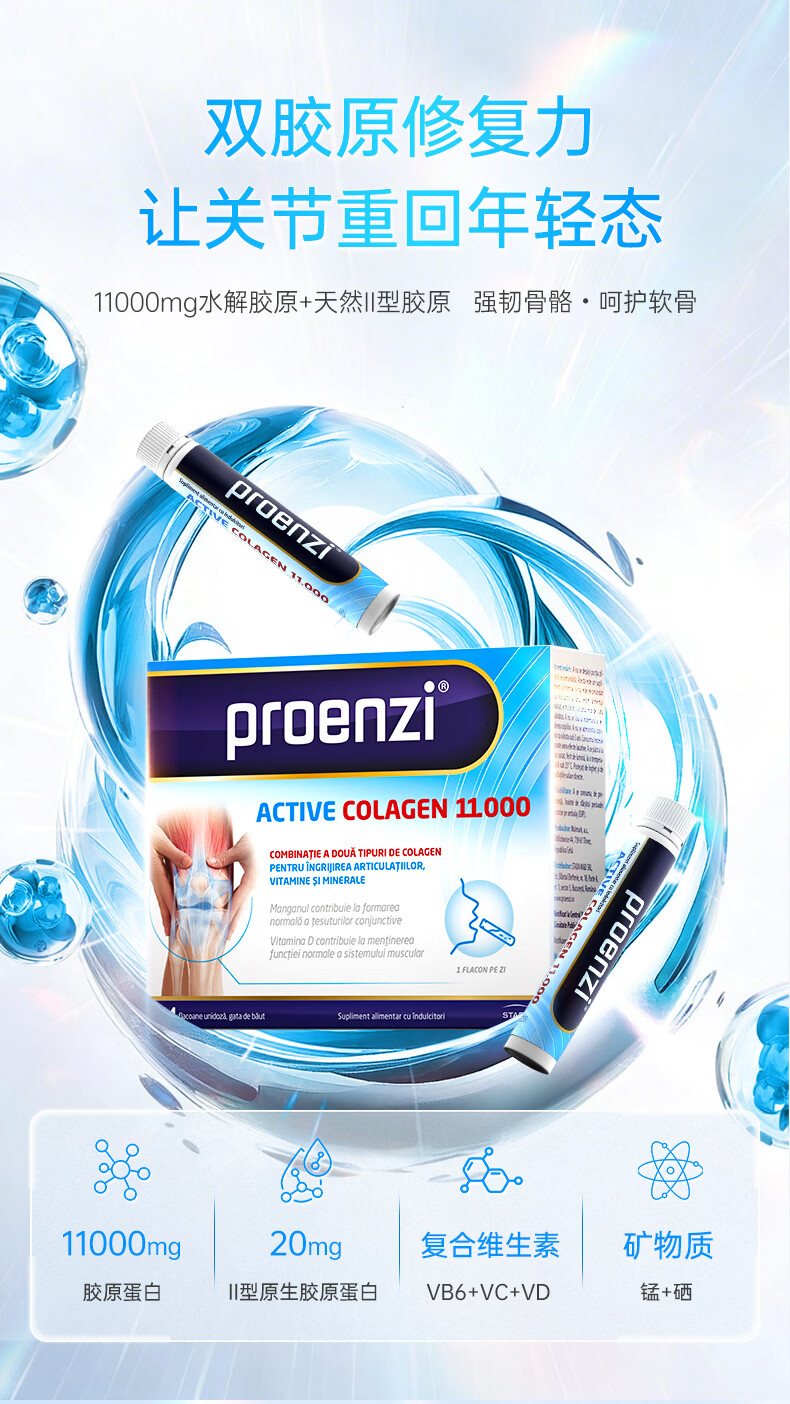 Proenzi古恩滋骨胶原蛋白口服液 5重维生素矿物质 水解胶原蛋白肽钙片 【关节灵活改善】3盒装 25ml*42瓶