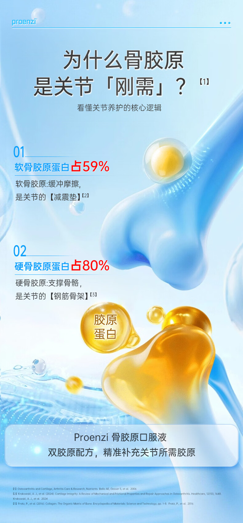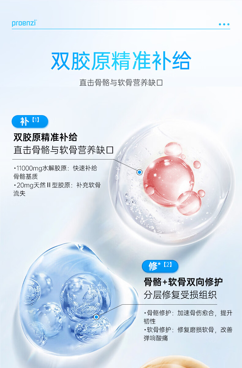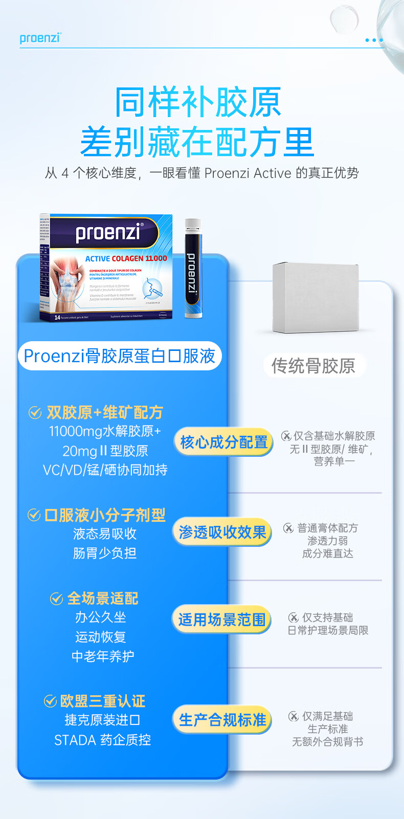 Proenzi古恩滋骨胶原蛋白口服液 5重维生素矿物质 水解胶原蛋白肽钙片 【关节灵活改善】3盒装 25ml*42瓶