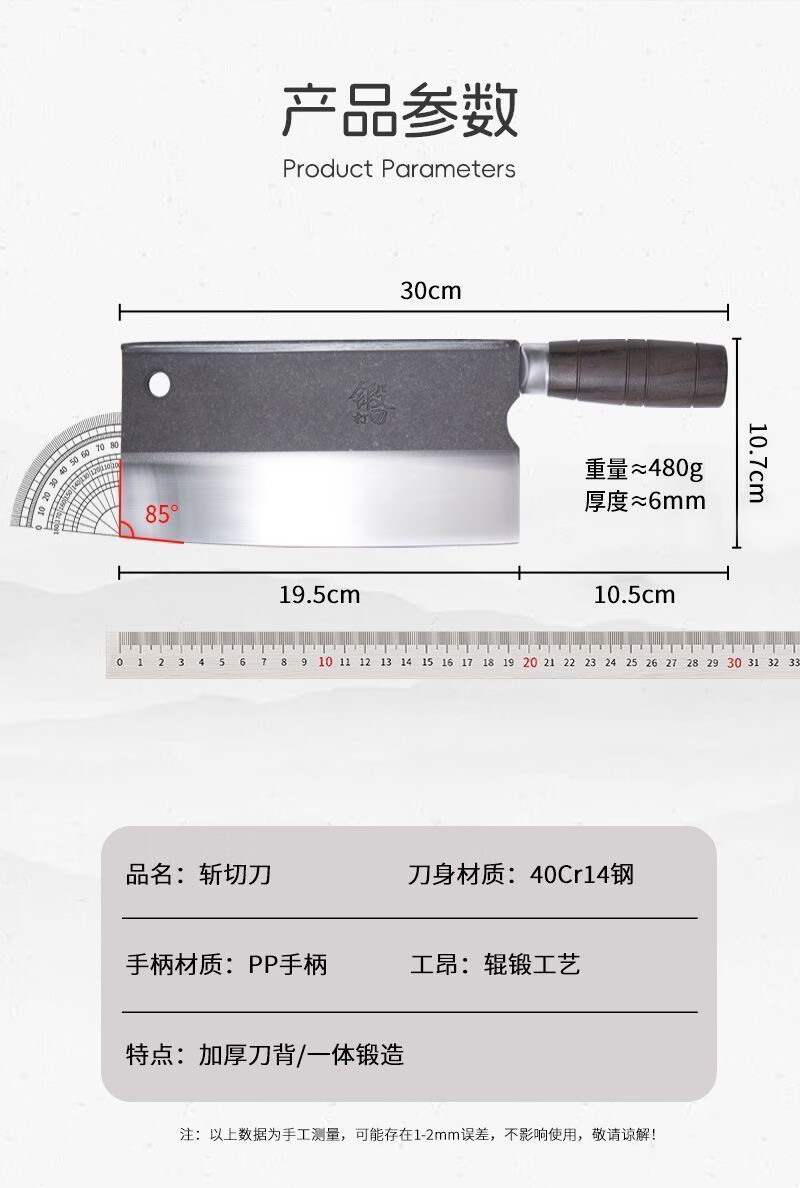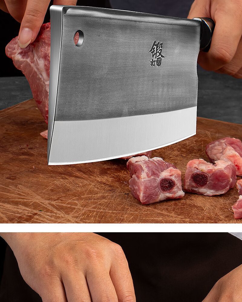 优赏轴承钢锻打斩切两用刀厨房家用酒店商用锋利切肉剁骨厨师专用菜刀 【加大特厚】斩切刀