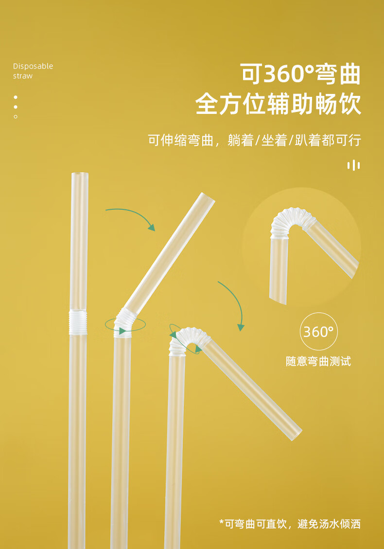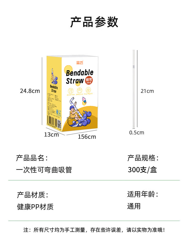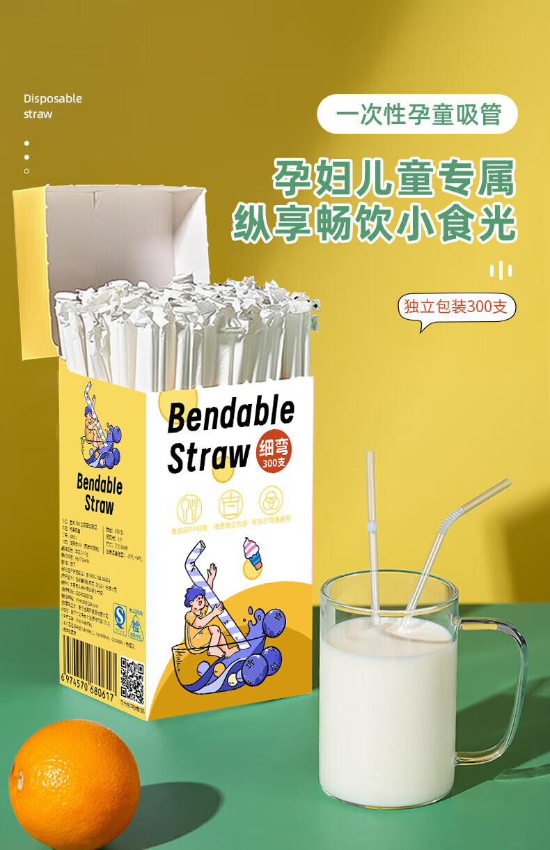 星坊一次性吸管 独立包装 婴儿食品级可折弯奶茶吸管5*210mm 300支