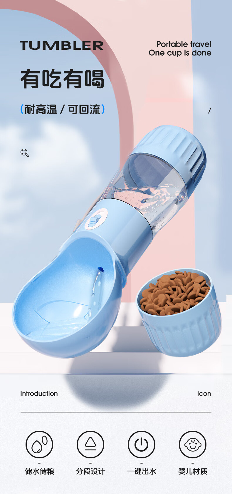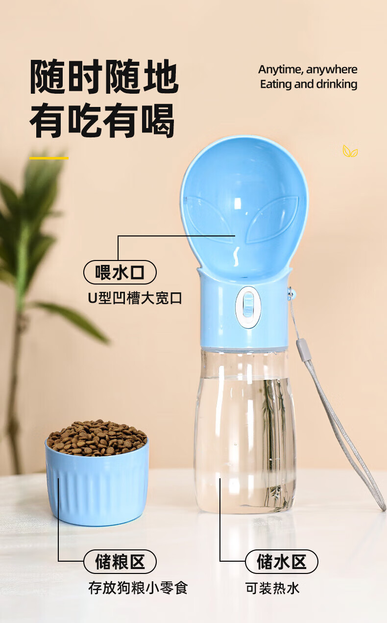华元宠具(hoopet)狗狗外出水杯水粮杯储粮水壶便携式宠物随行杯饮水器户外猫咪喝水