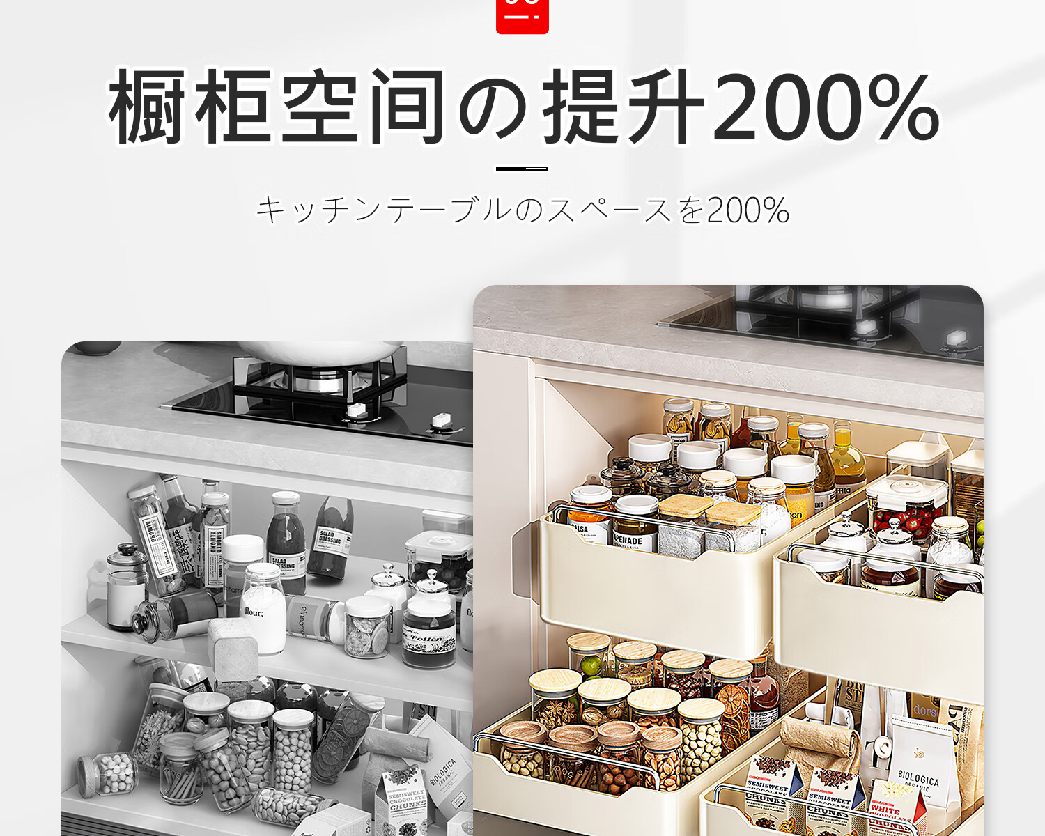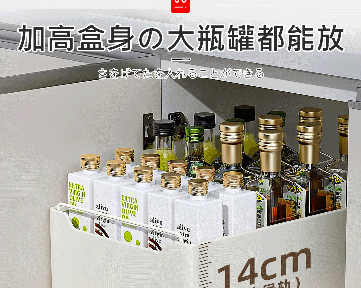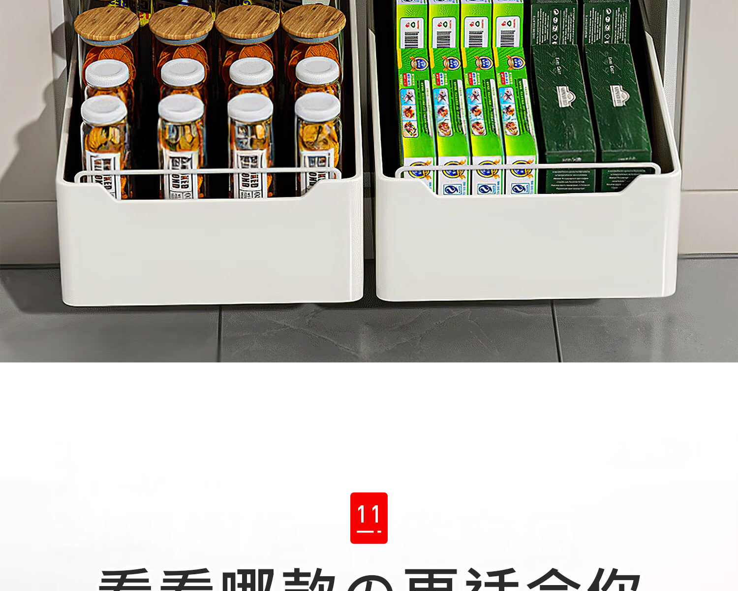 吱凡日本厨房抽拉式置物架下水槽拉篮橱柜内抽屉式超深收纳整理盒神器 【小号】抽拉式收纳盒【20cm宽】