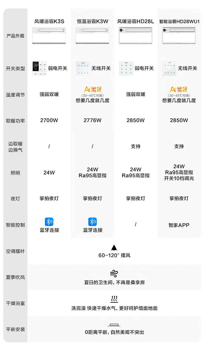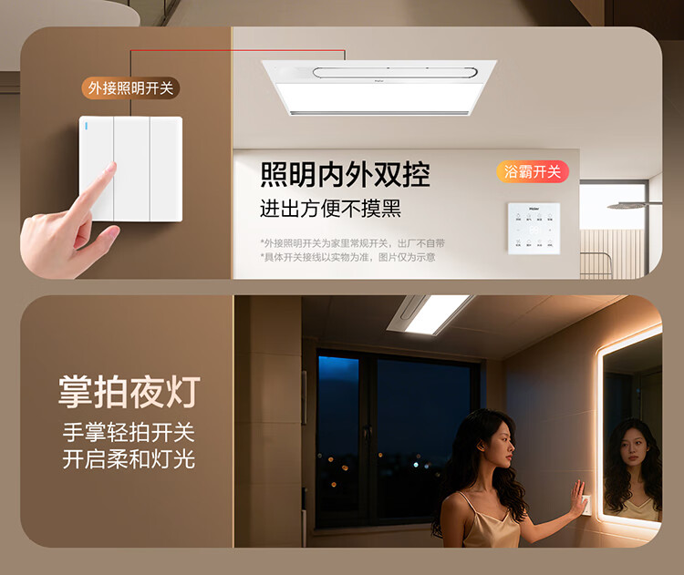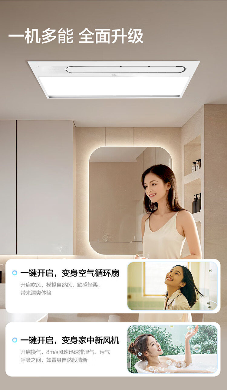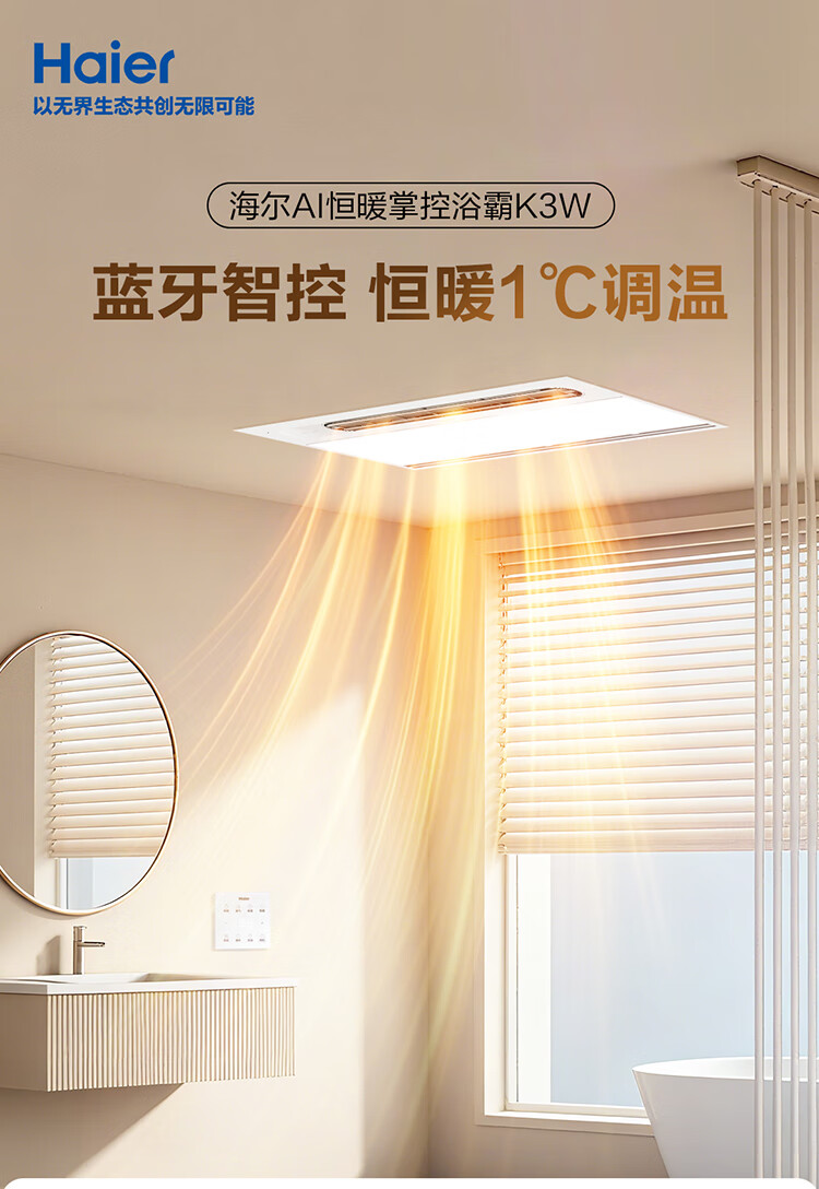 海尔(Haier)浴霸大功率取暖器卫生间风暖暖风机排气扇照明夜灯一体浴霸 K3W