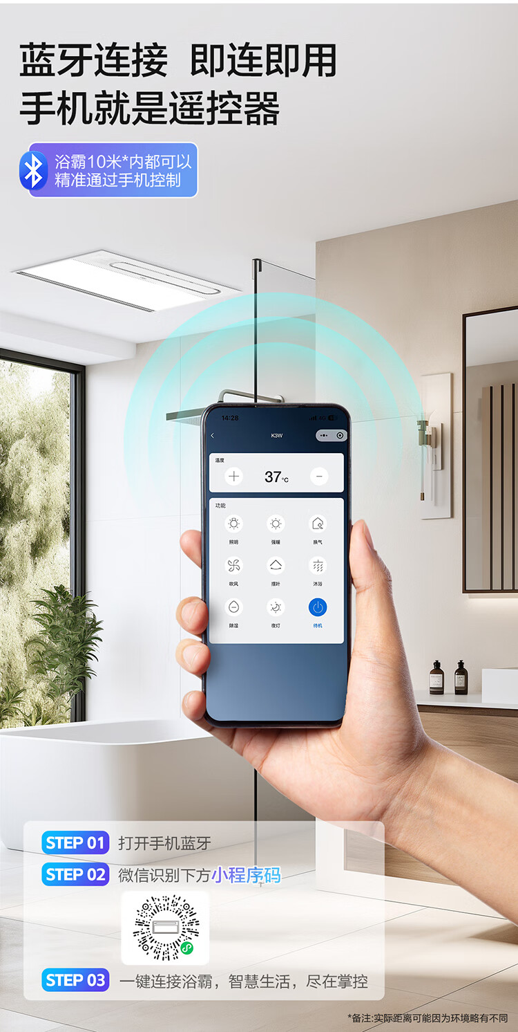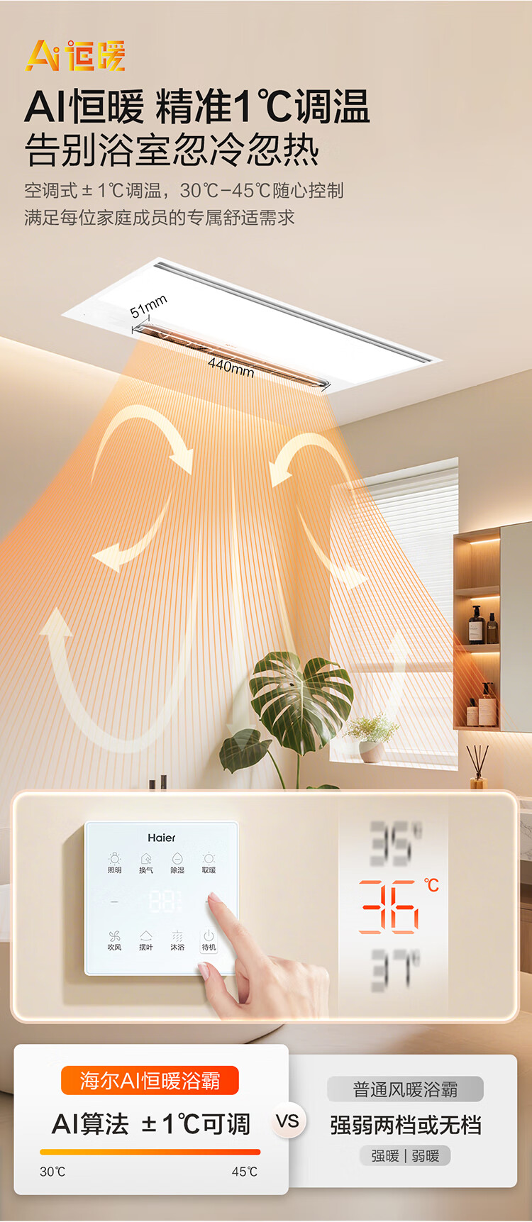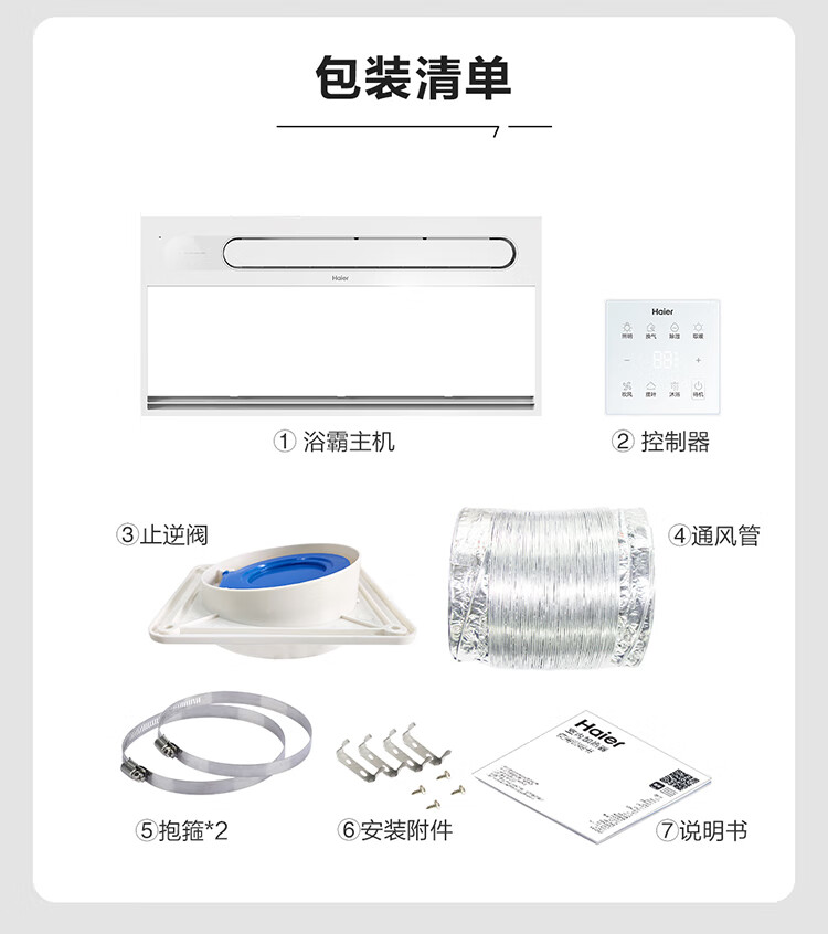 海尔(Haier)浴霸大功率取暖器卫生间风暖暖风机排气扇照明夜灯一体浴霸 K3W