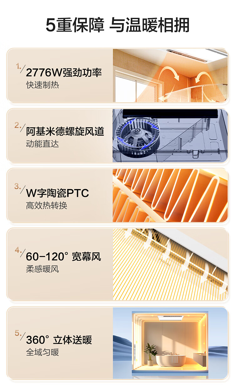 巴洛斯顿免检修口线性风暖型浴霸除菌浴室卫生间蜂窝石膏大板吊顶取暖排气 U1奶油白免检修口