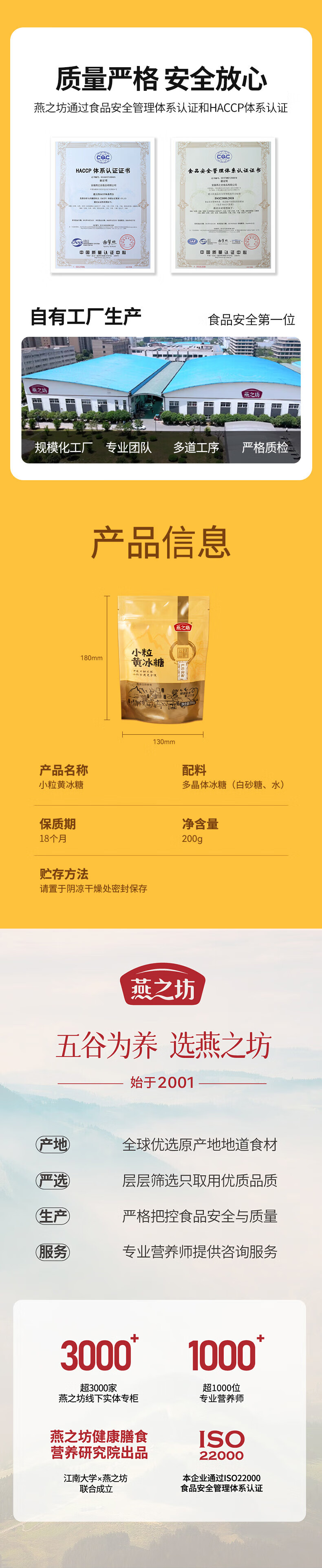 燕之坊 小粒梨汁冰糖黄冰糖散装老冰糖小粒多晶冰糖煮粥煲汤甜品食材 小粒黄冰糖200g*3袋