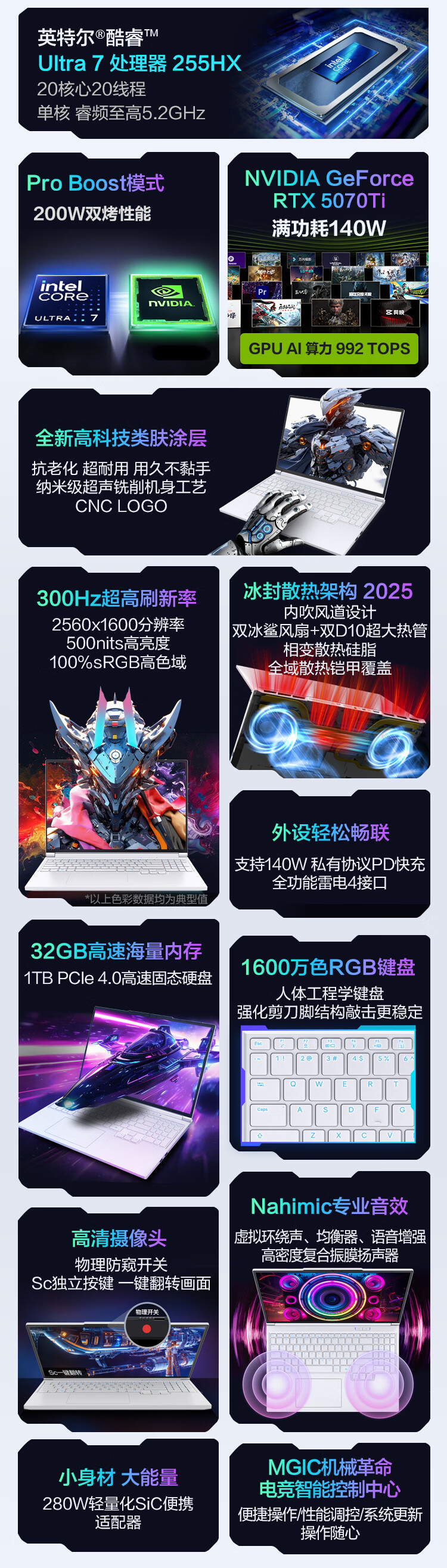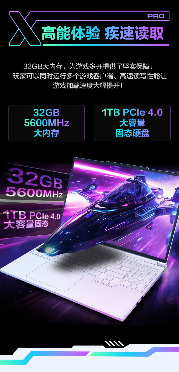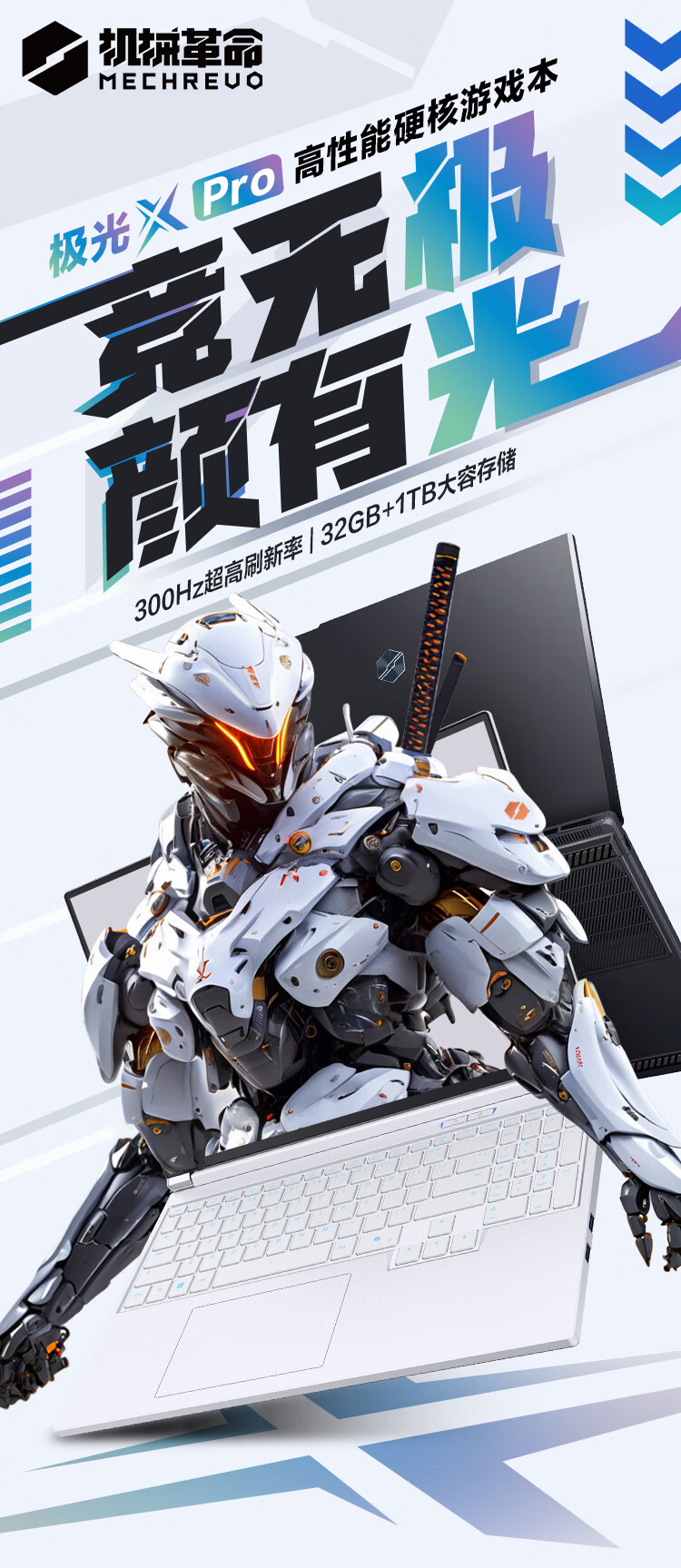 机械革命【国家补贴】极光X Pro 16英寸AI高静游戏本笔记本电脑(U7-255HX 32G 1T RTX5070Ti白)