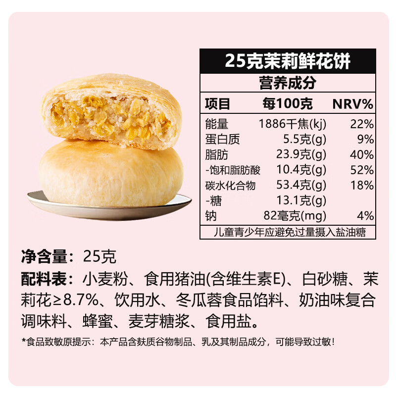 潘祥记 现烤鲜花饼10枚装云南特产玫瑰花饼传统糕点心零食小吃面包早餐 5口味鲜花饼25g*10枚(盒装)