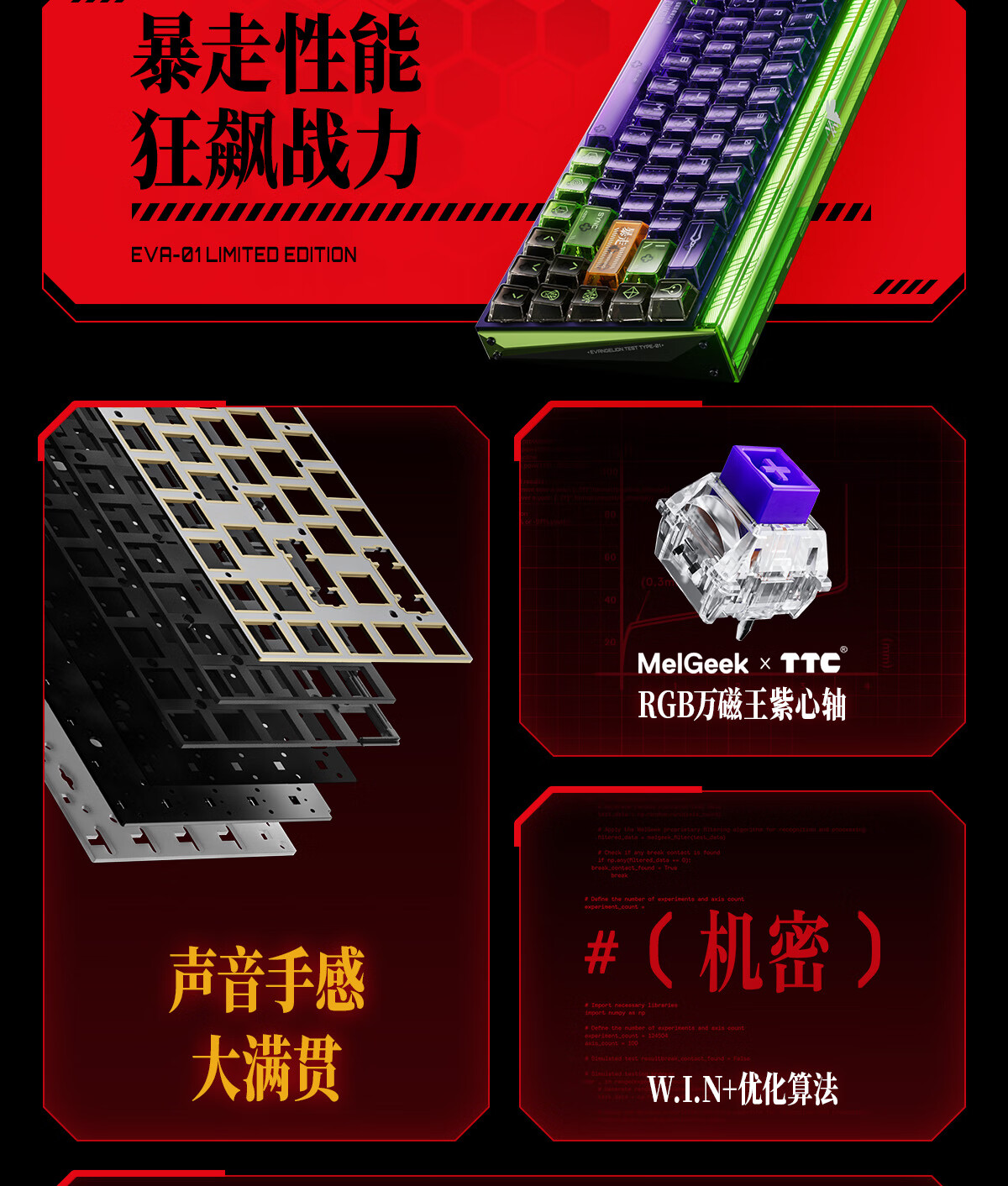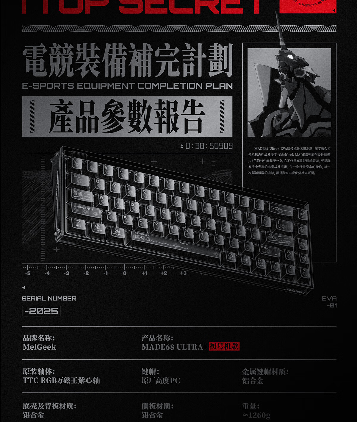 MelGeek蜜氪 【送礼好物】made68ultra+新世纪福音战士初号机磁轴键盘联名EVA电竞游戏无畏契约男女小蜜蜂 MADE68ULTRA+【EVA联名礼盒款】 有线MelGeek