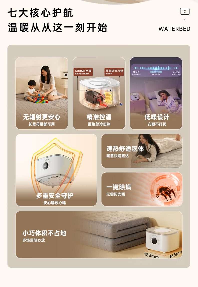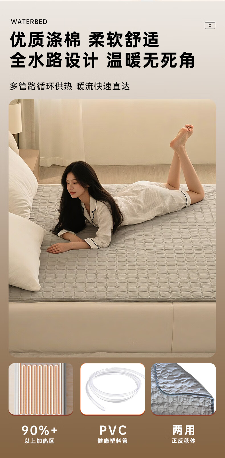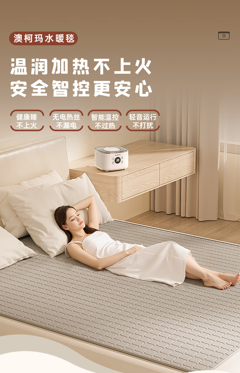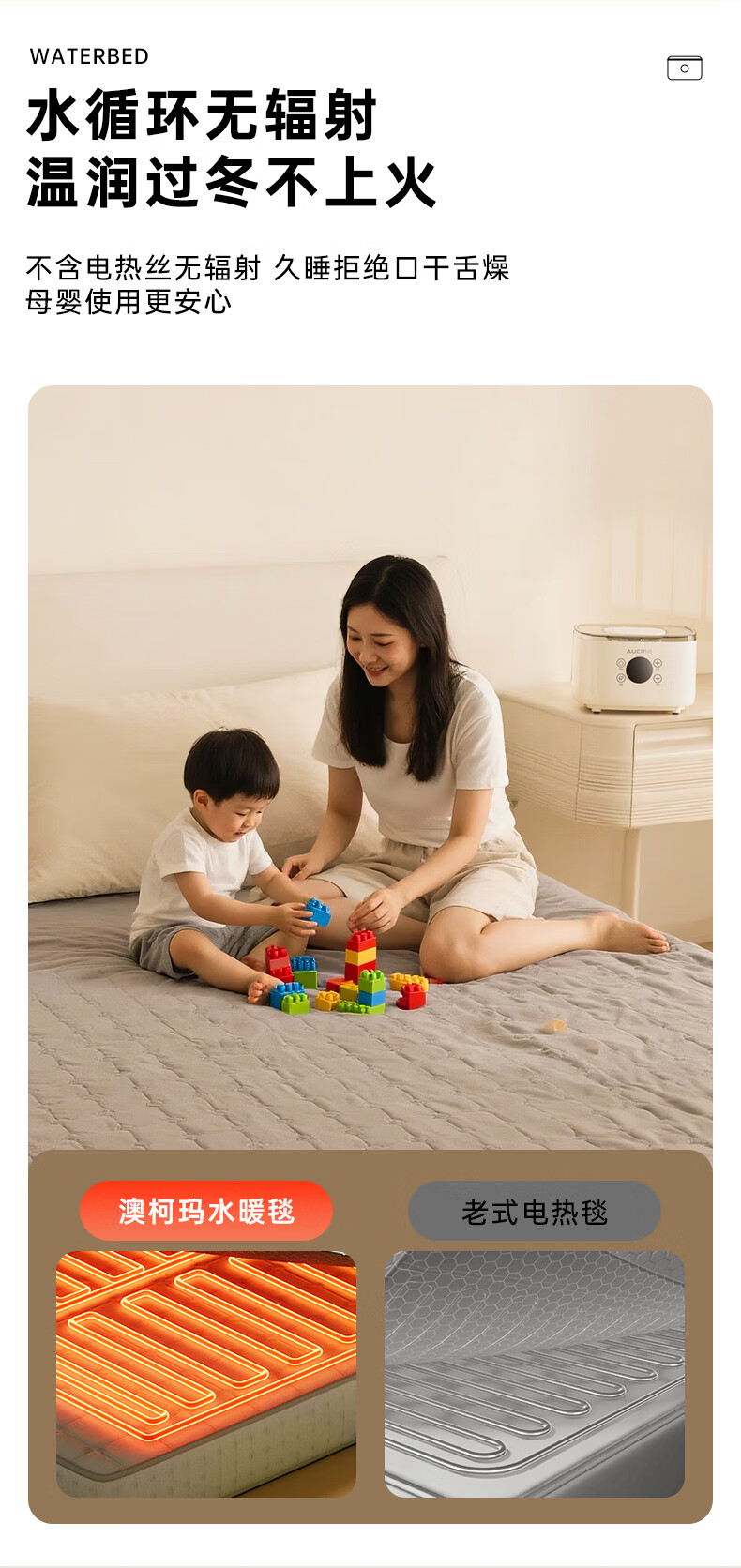 澳柯玛水暖毯双人电热毯电褥子家用除螨水热毯水循环水暖炕母婴床垫单人恒温加热取暖安全1.5米*1.8米55B