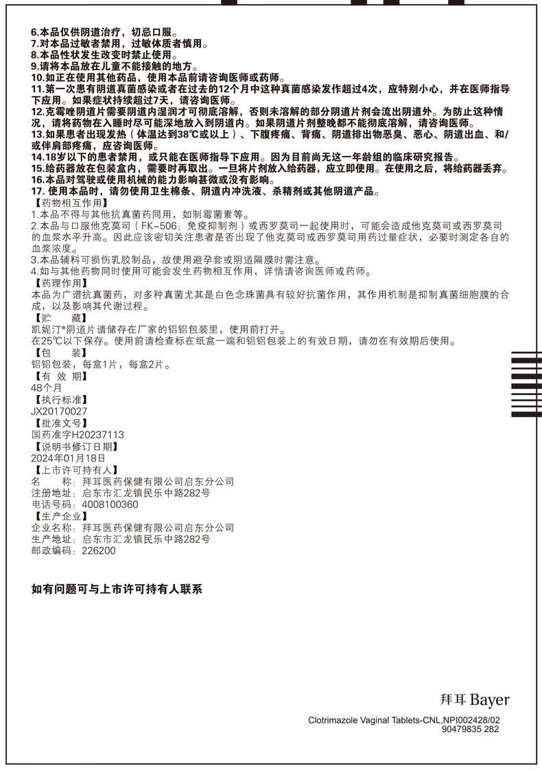 凯妮汀【原研药】克霉唑阴道片0.5g*1片/盒用于念珠菌性外阴阴道病