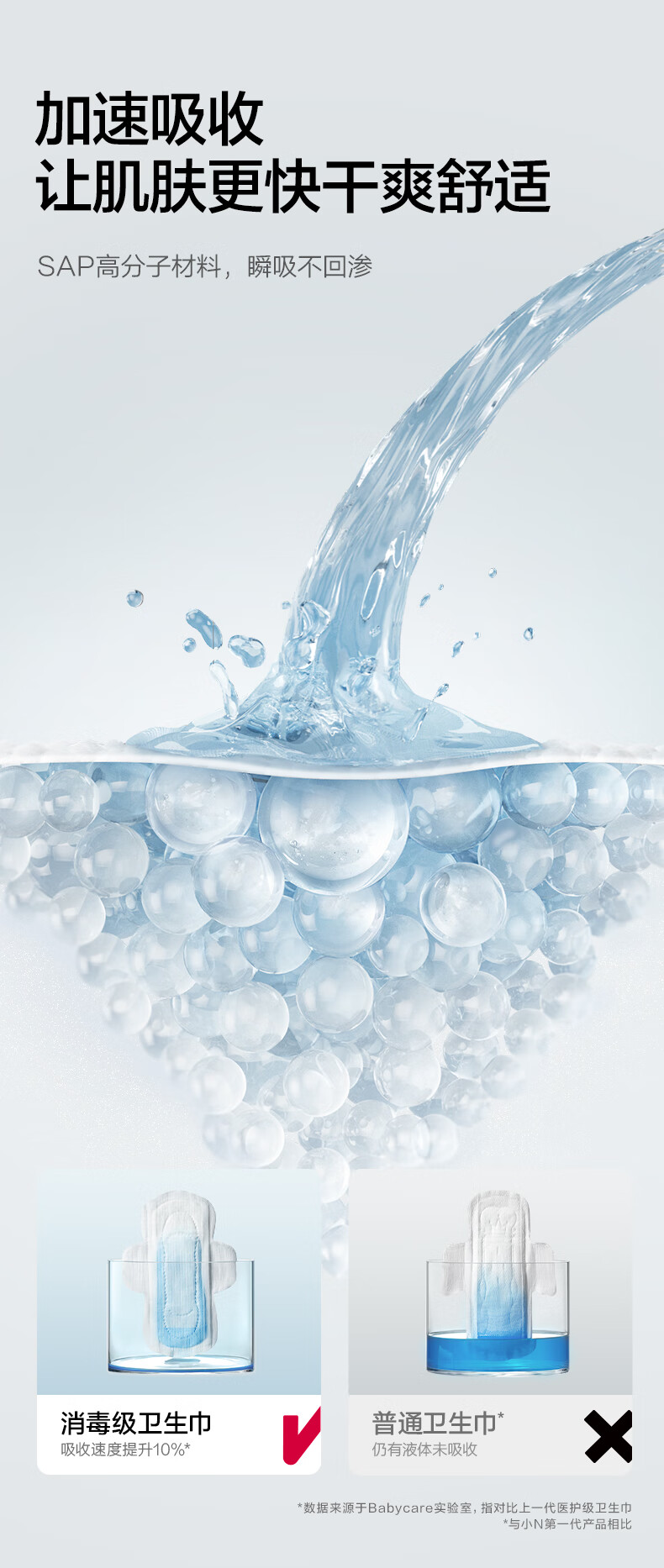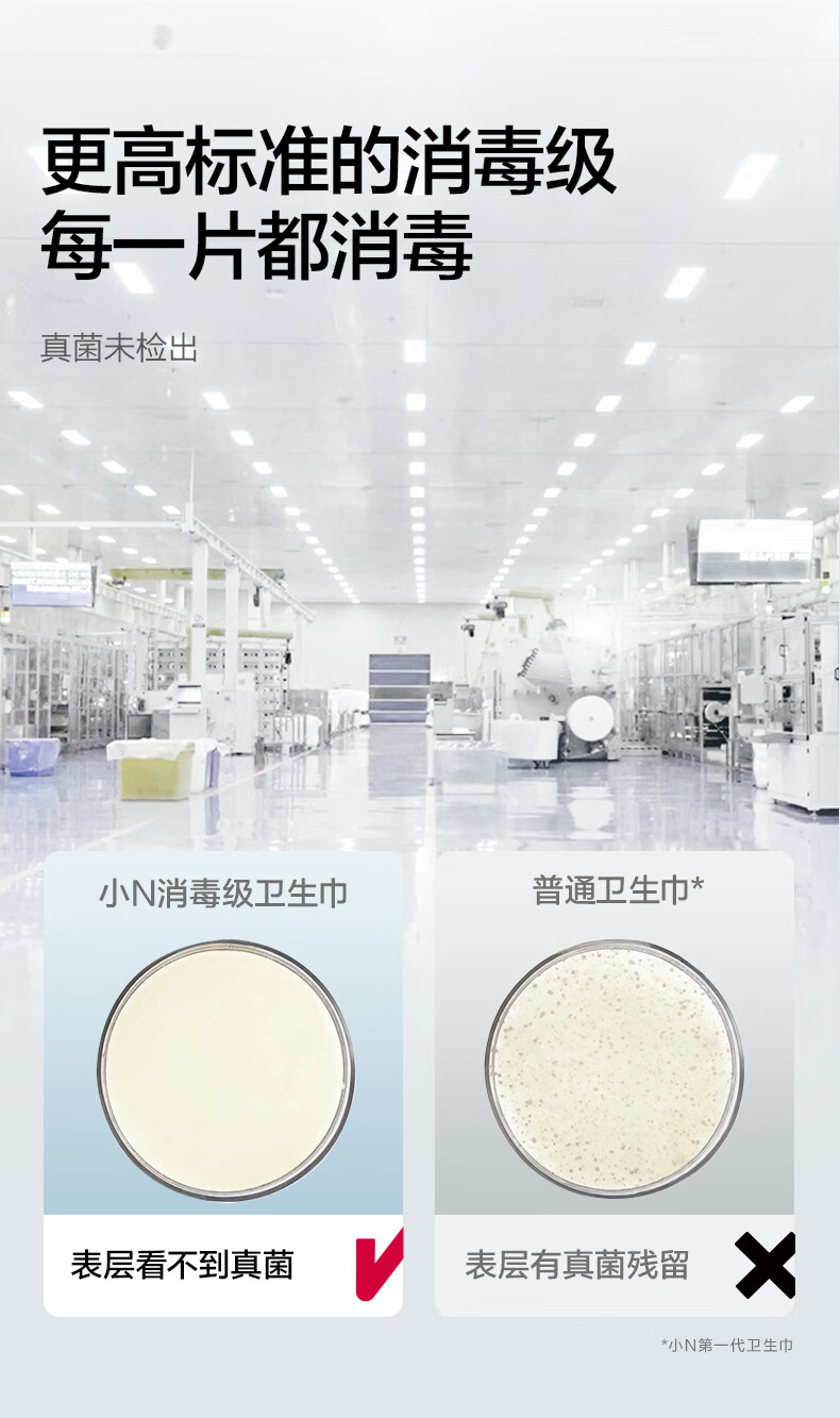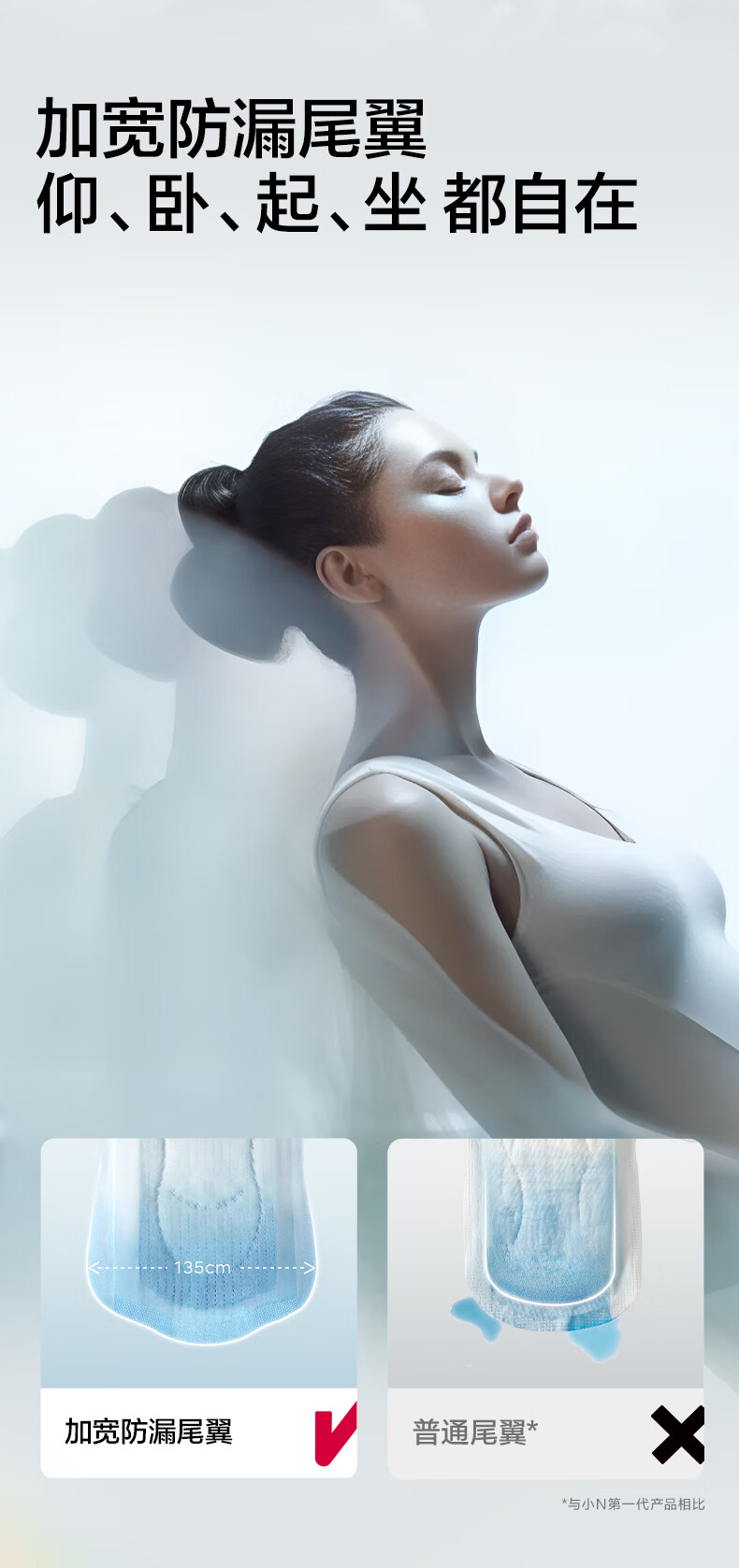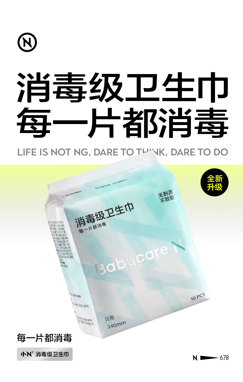 小N消毒级薄防漏卫生巾日用夜用新国标姨妈巾38片4包240+290mm自营