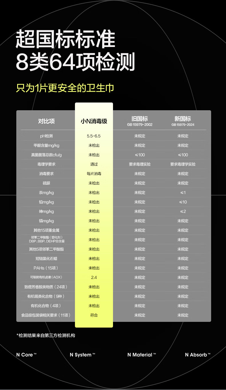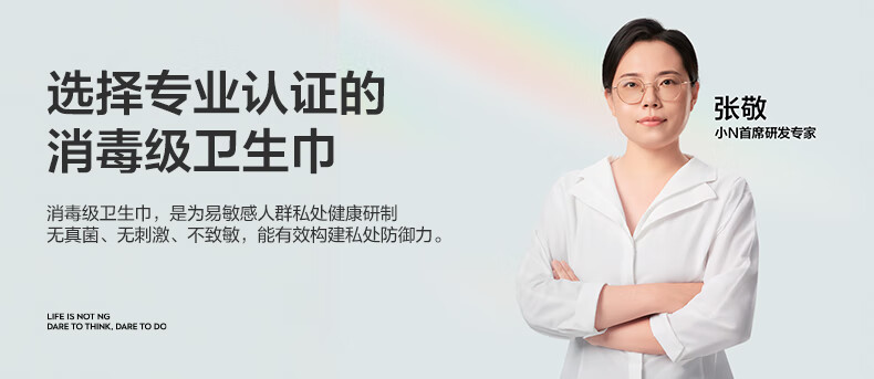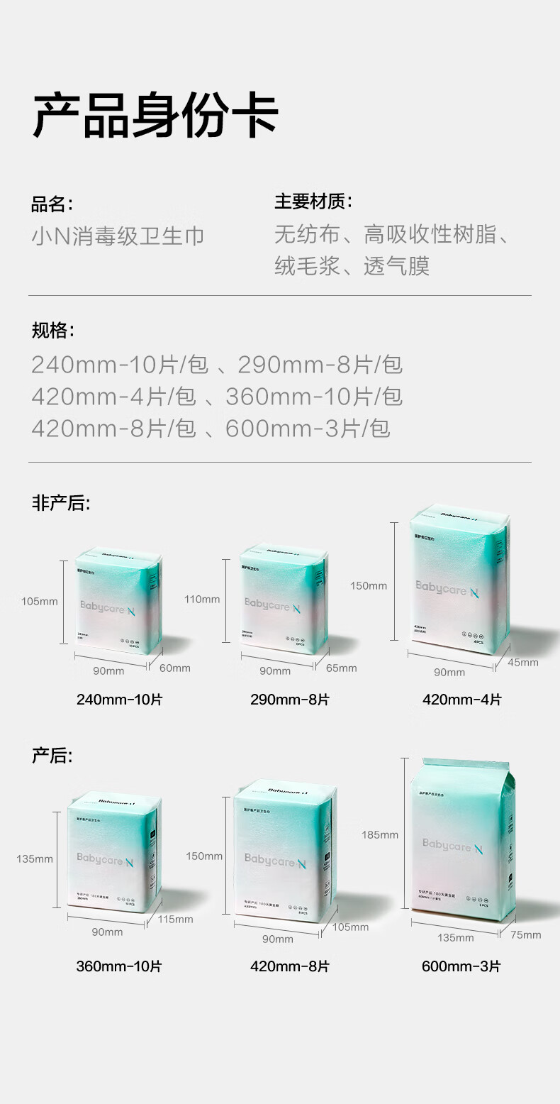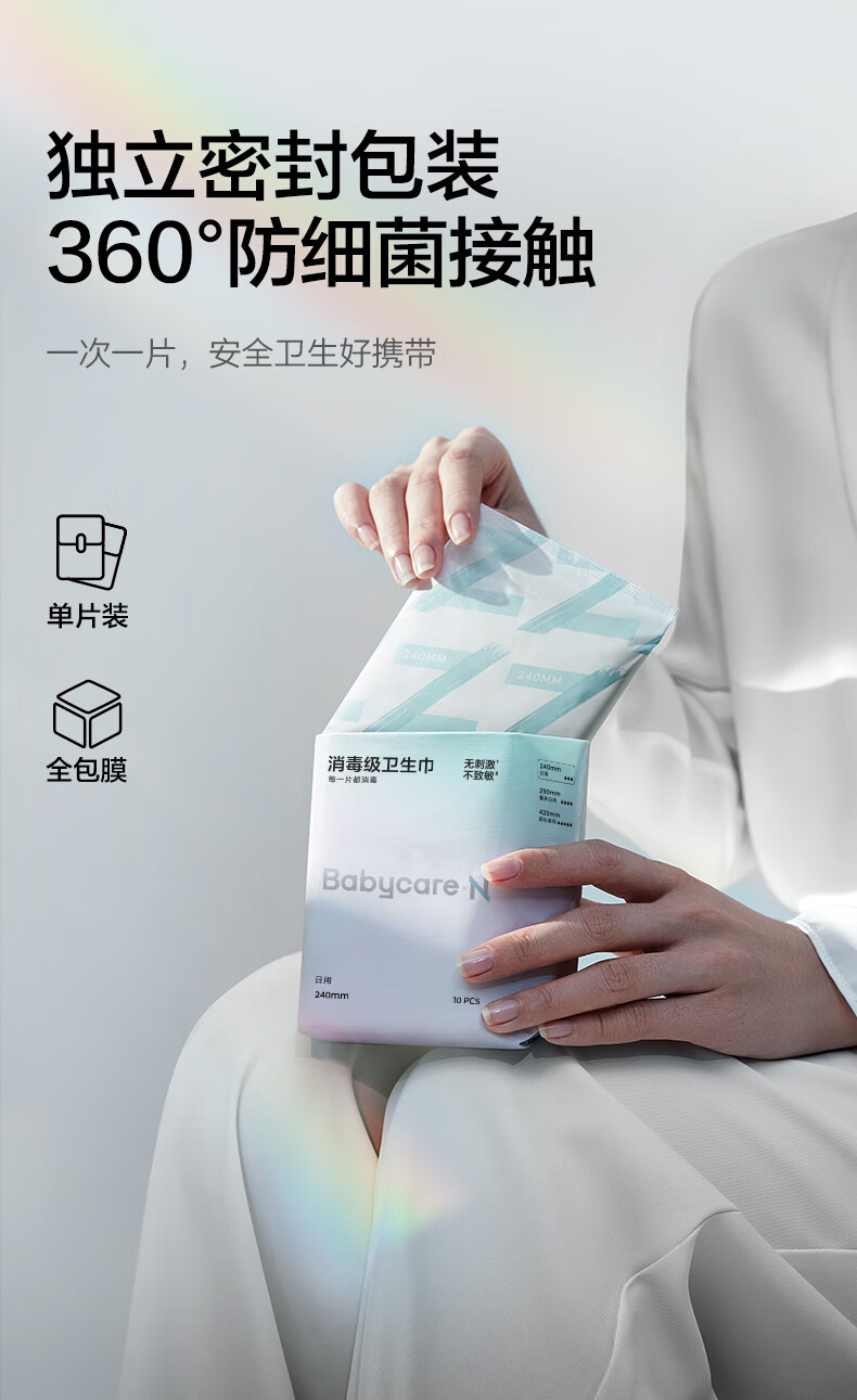 小N消毒级薄防漏卫生巾日用夜用新国标姨妈巾38片4包240+290mm自营