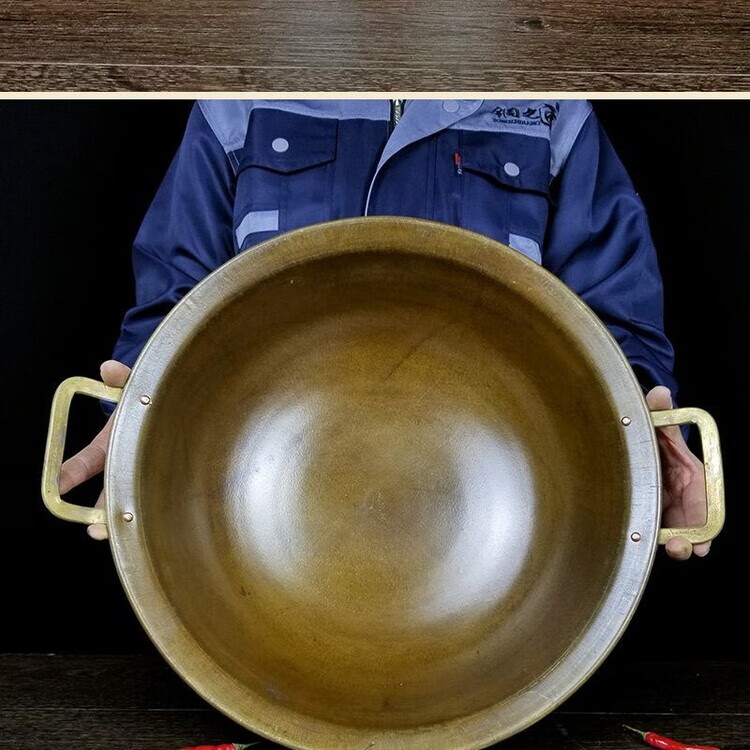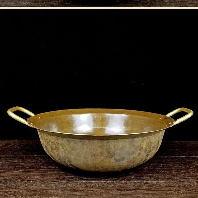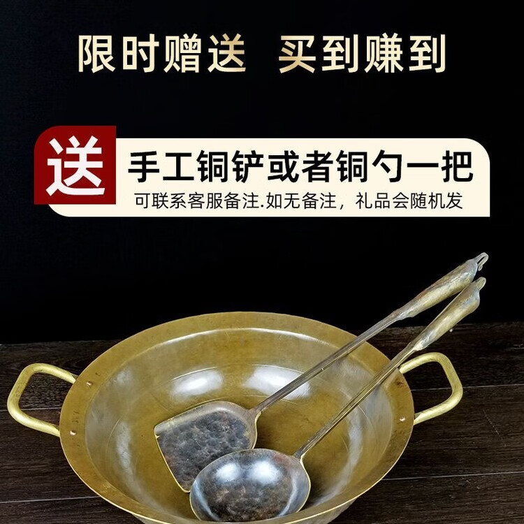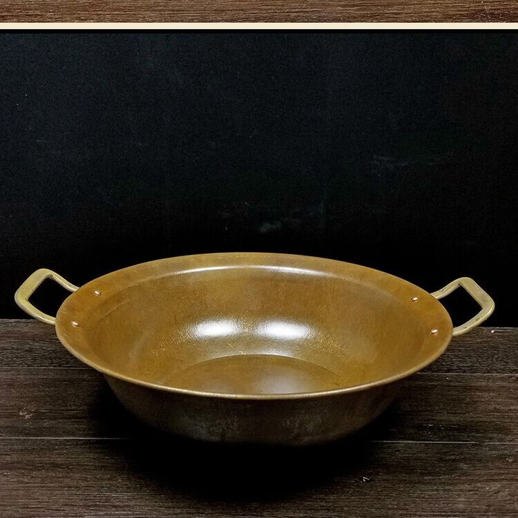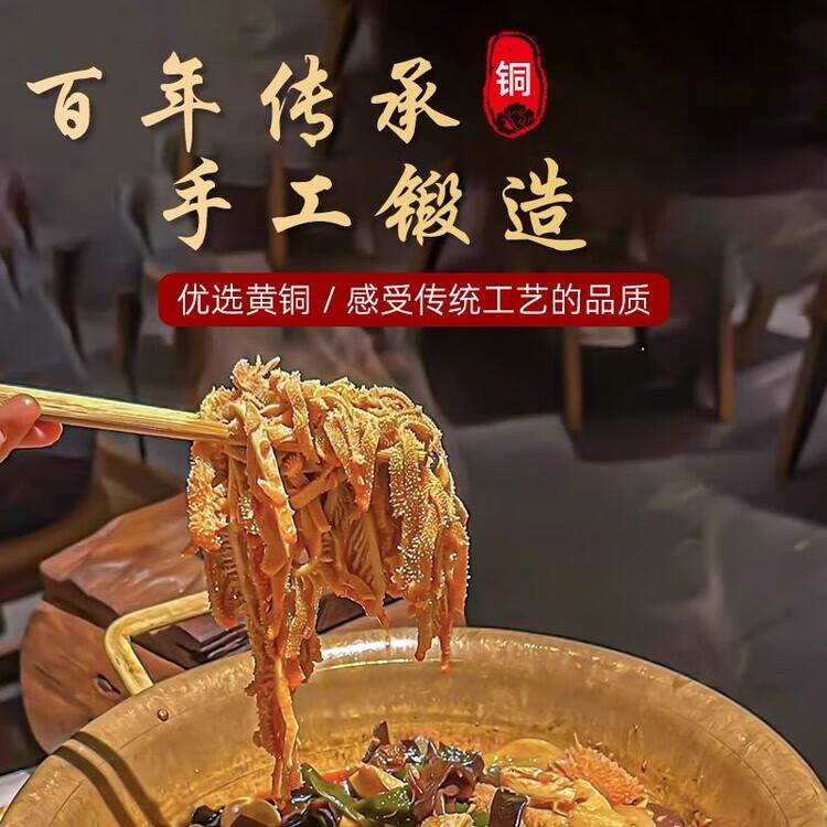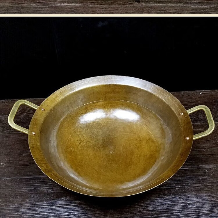 咏夏黄铜锅铜炒锅手工老式熬糖阿胶火锅汤锅家用商用双耳涮羊肉冒菜锅 41.5CM直径(重约1.5公斤) 0寸