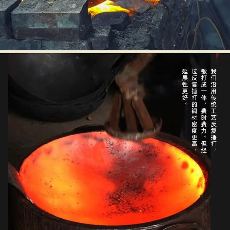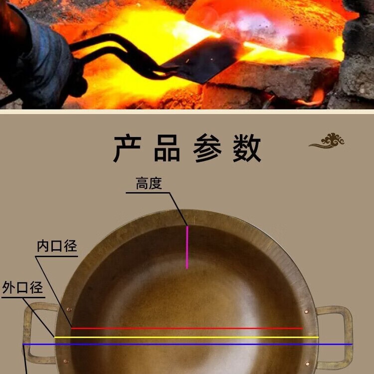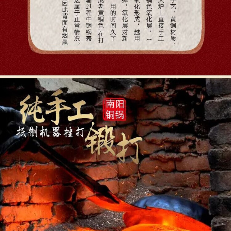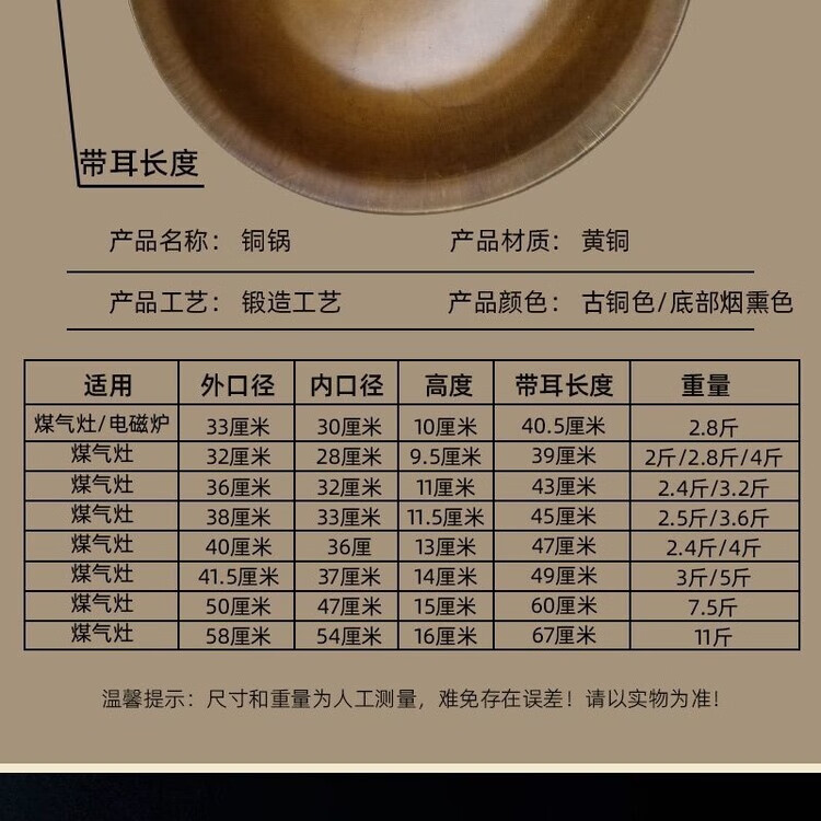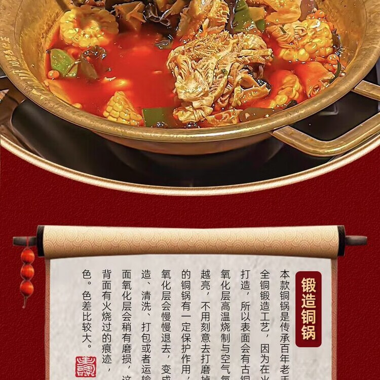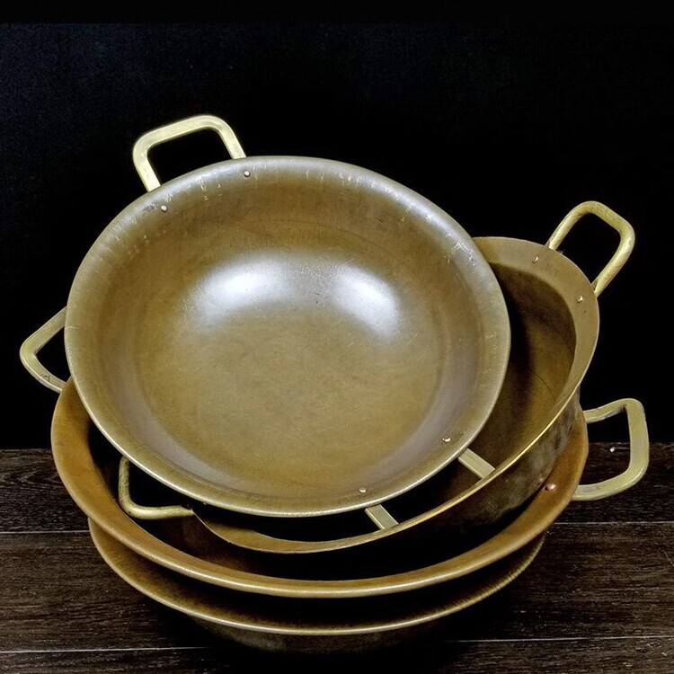 咏夏黄铜锅铜炒锅手工老式熬糖阿胶火锅汤锅家用商用双耳涮羊肉冒菜锅 41.5CM直径(重约1.5公斤) 0寸