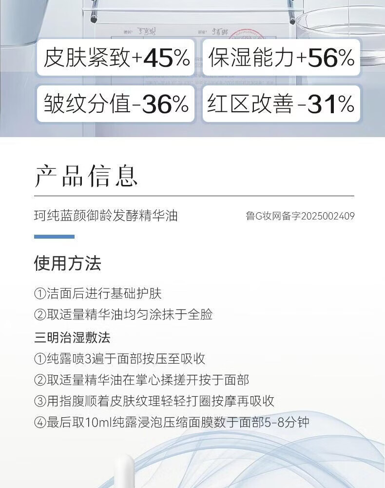珂纯(KEPURE)蓝颜御龄发酵精华油30ml紧致抗皱修护面部精华油蓝颜油 60ml+送35ml+焕亮油5ml