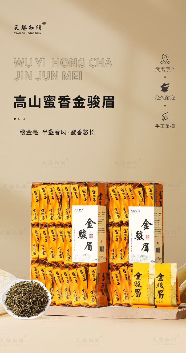 天赐红润2026新茶叶金骏眉特级红茶正宗武夷山桐木浓香蜜香型黄芽散礼盒装