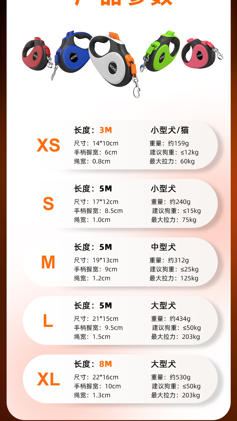 XCHO遛狗绳牵引绳狗狗牵引绳遛狗牵引绳伸缩狗绳小型犬牵引绳小狗链子