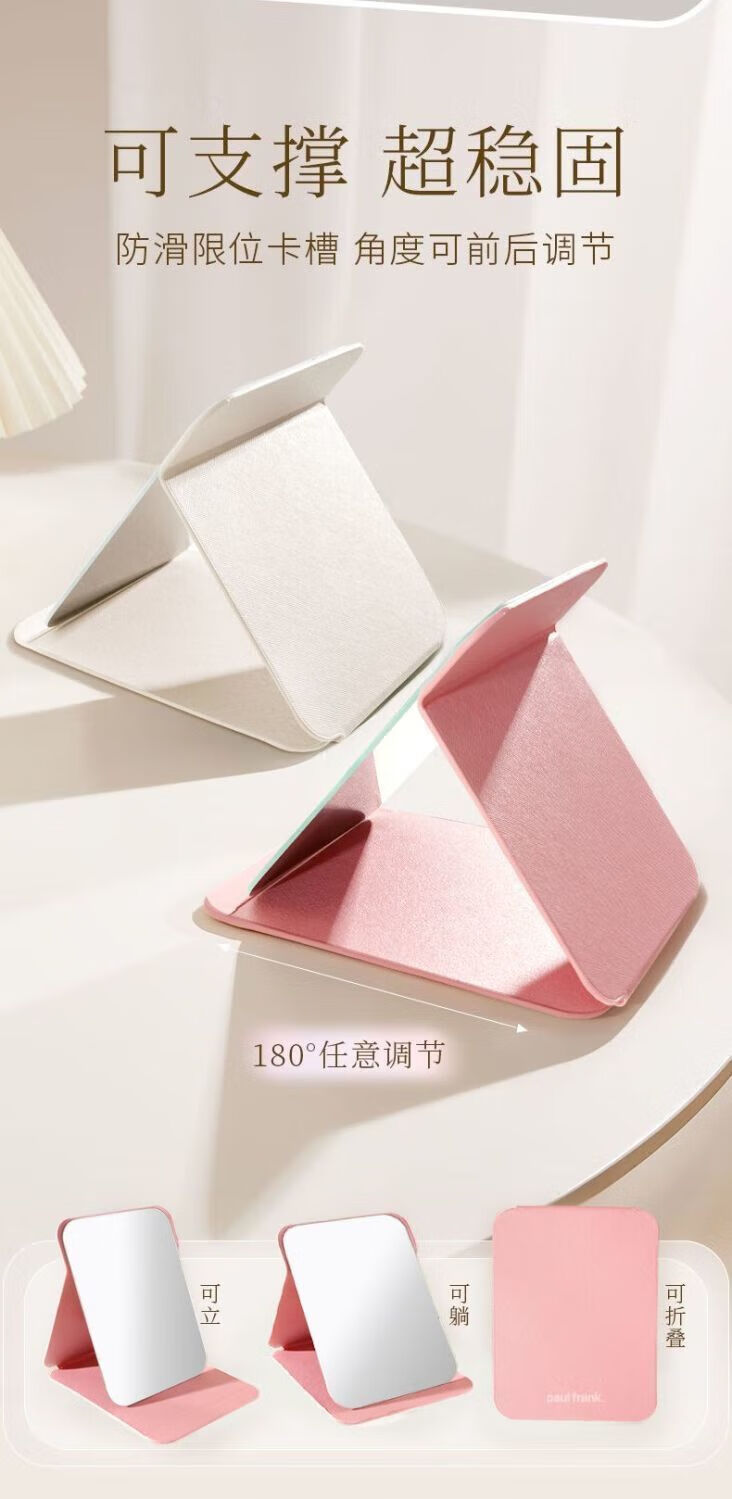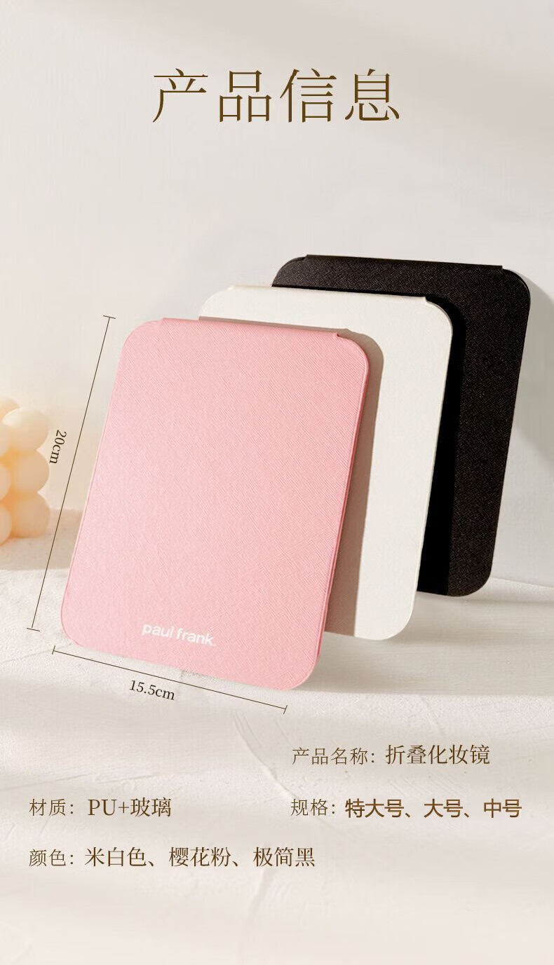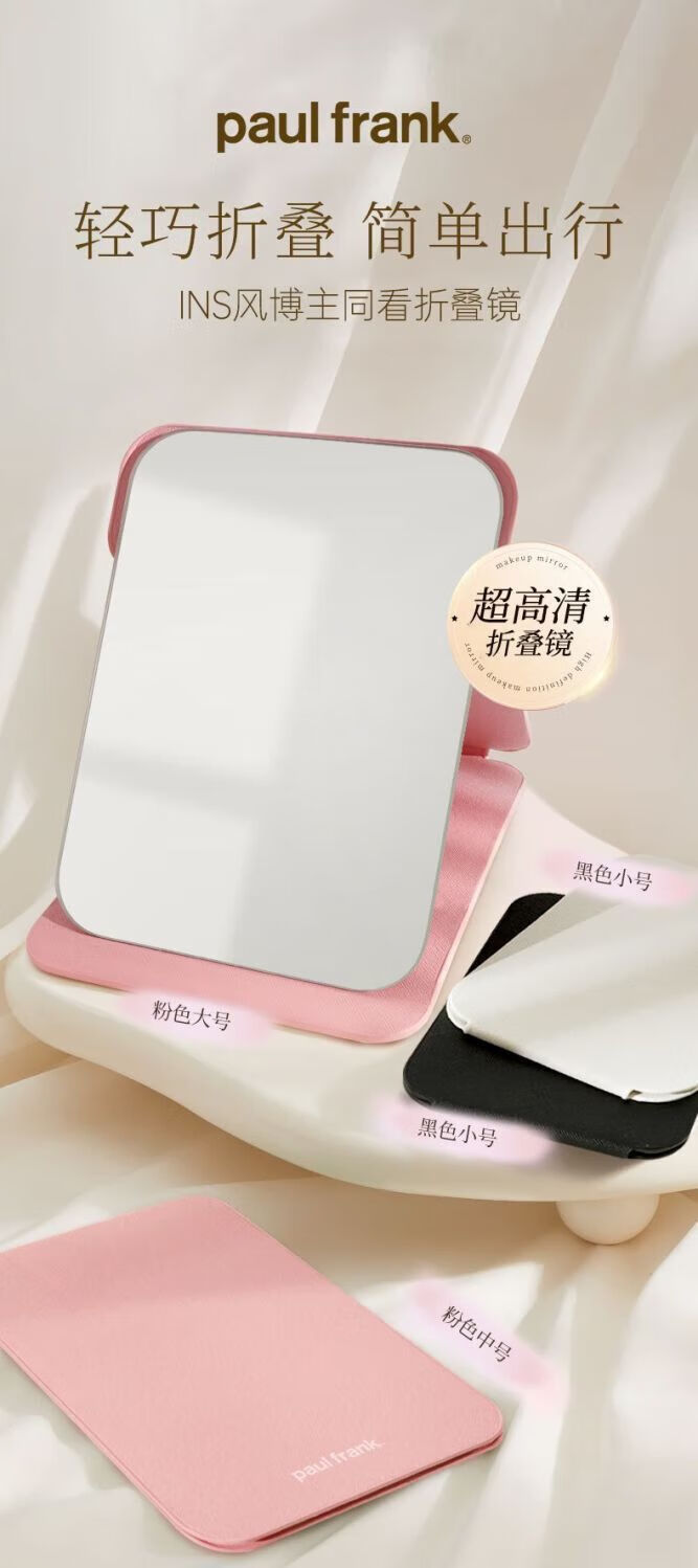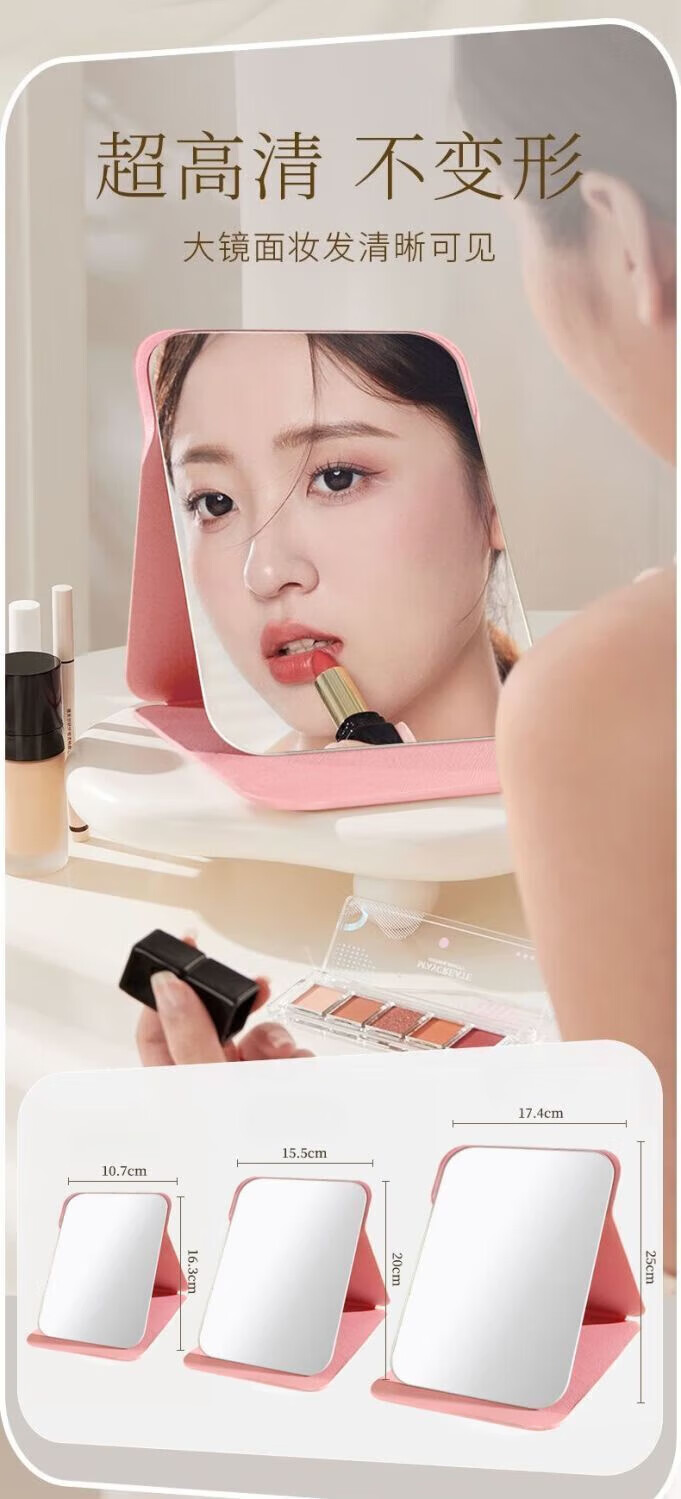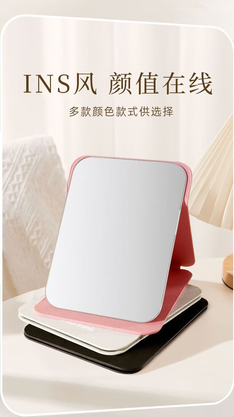 迈途森化妆镜高清镜子可折叠便携家用宿舍梳妆台学生党防摔化妆镜工位用 【小号】尺寸16*11-黑色 高清4K折叠镜