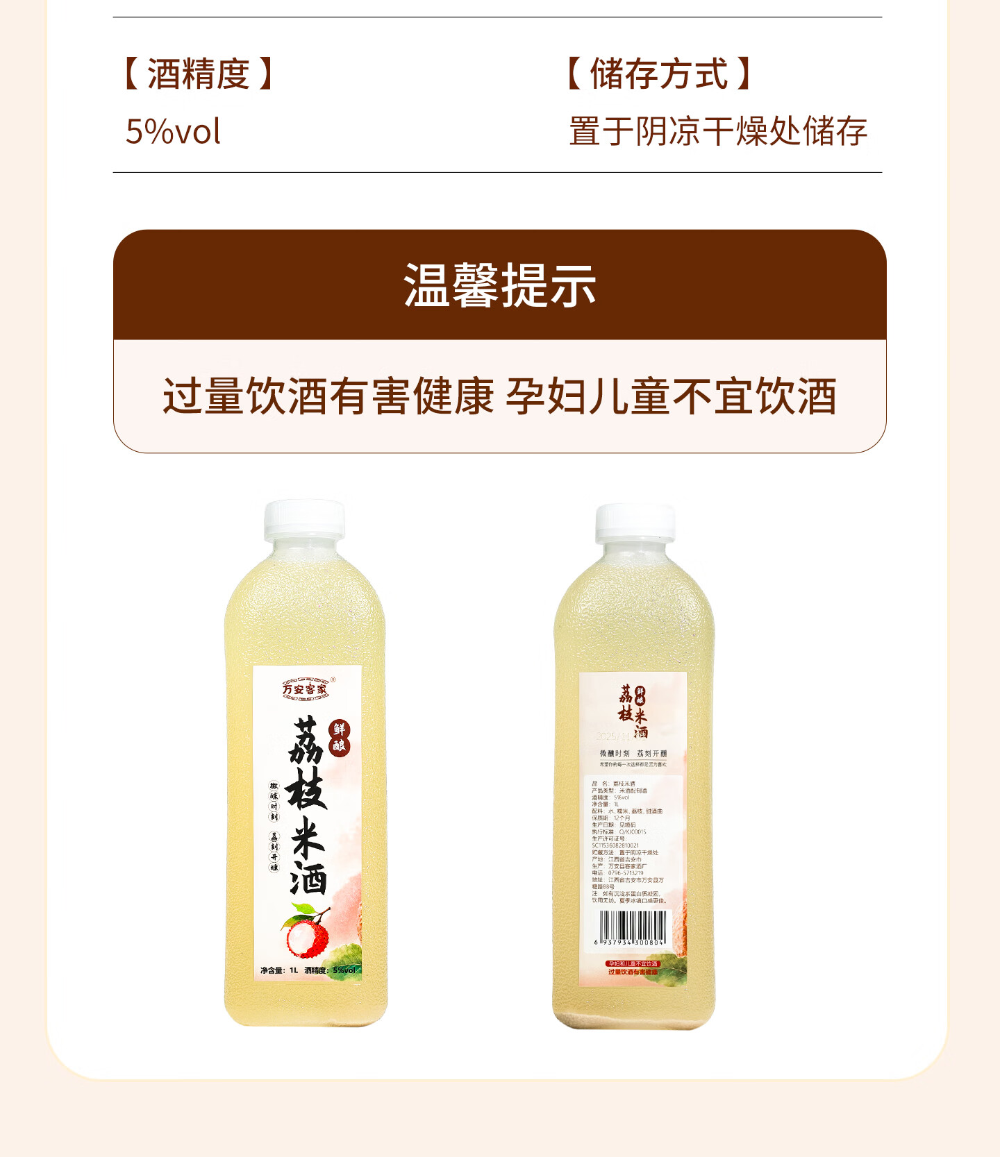 万安客家江西米酒荔枝米酒5度果酒微醺低度甜酒鲜榨糯米发酵酒1L