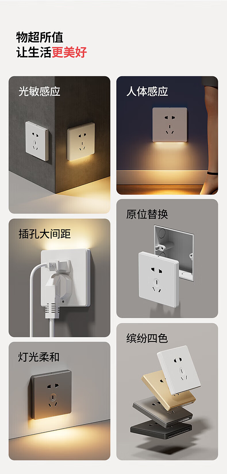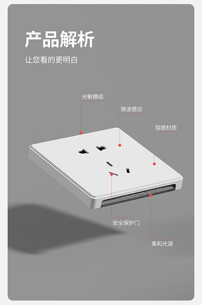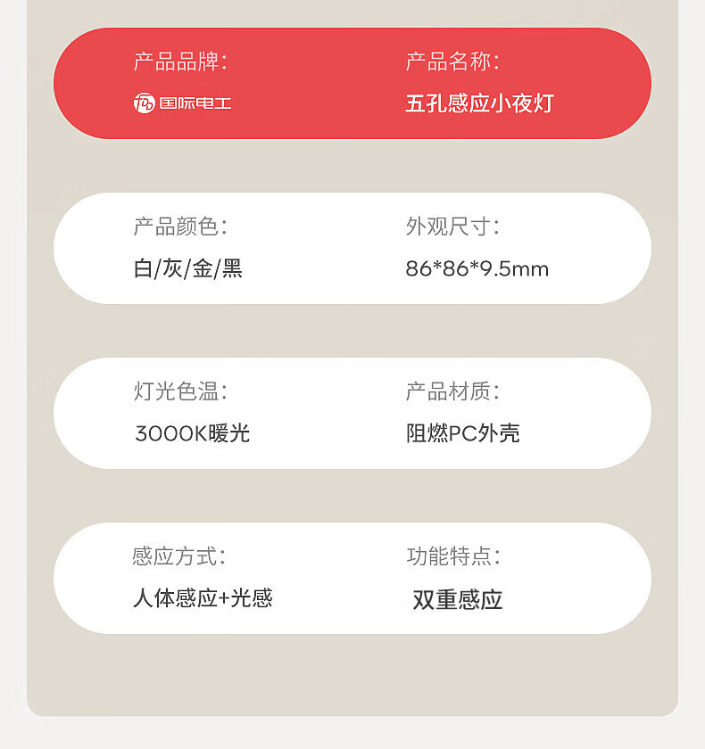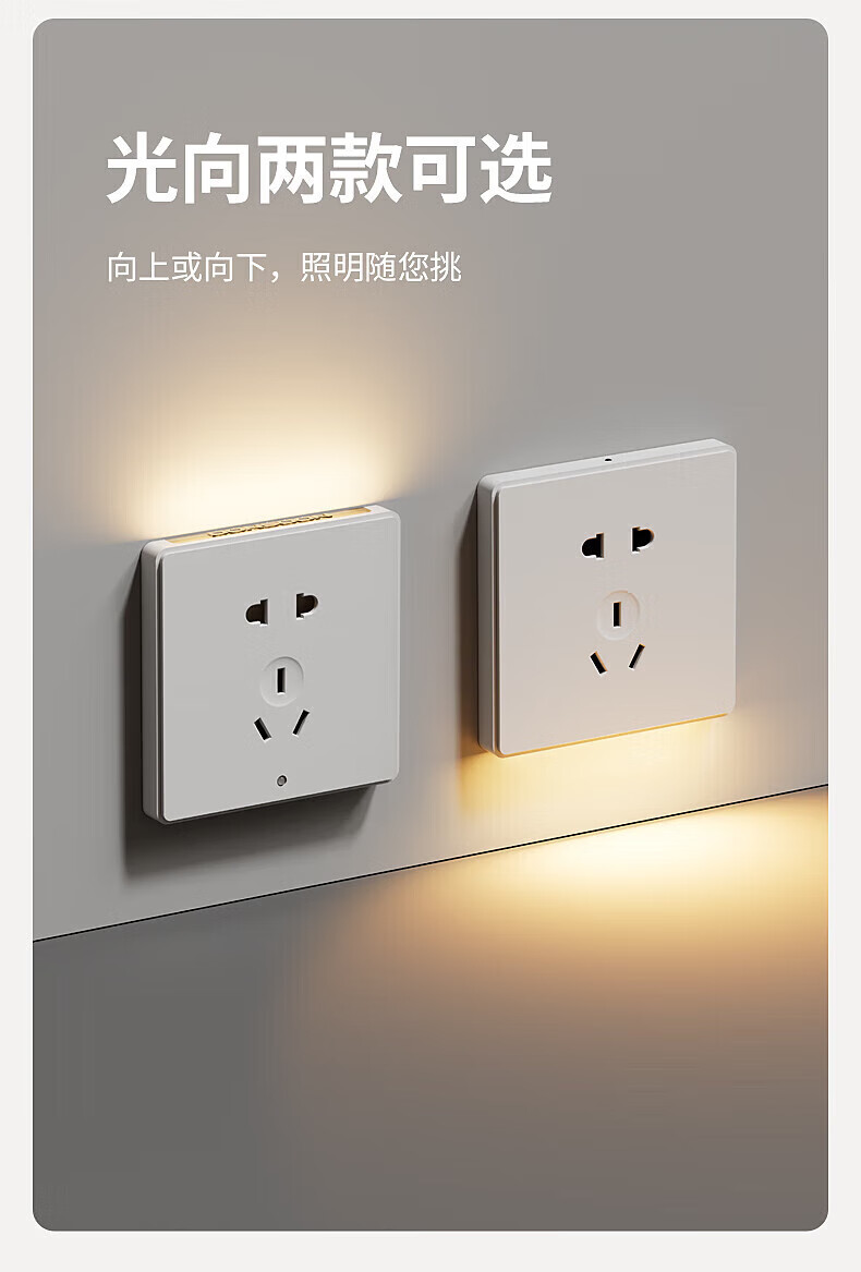 国际电工86型五孔地脚灯智能人体感应灯光敏白天不亮小夜灯卧室楼梯过道灯 白色 五孔感应地脚灯【顶部发光】