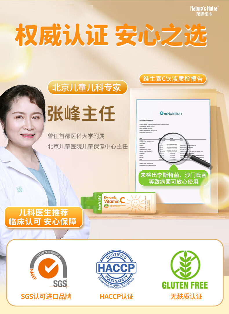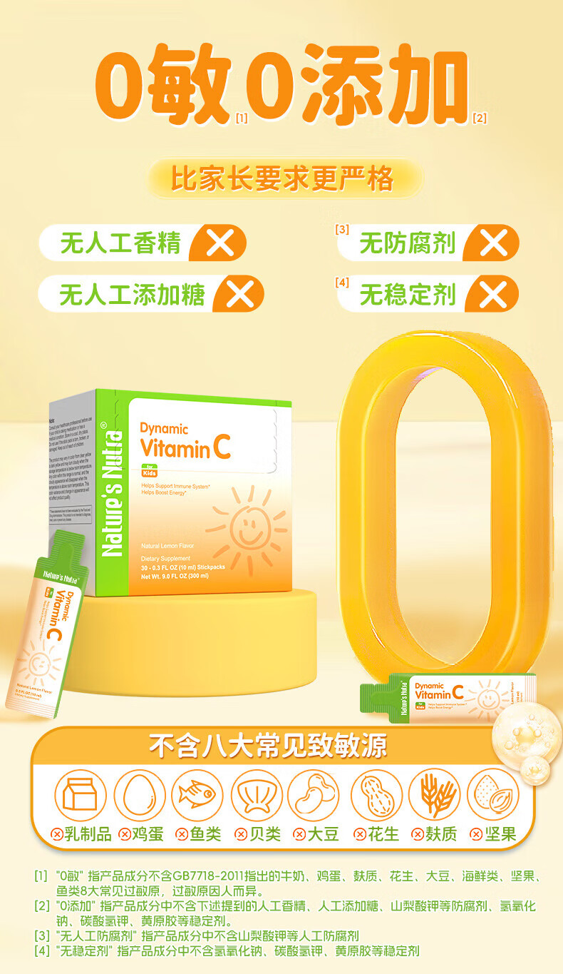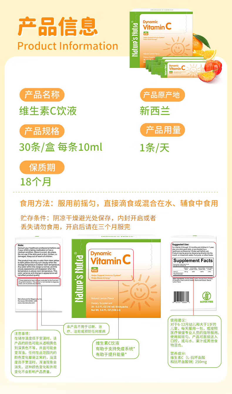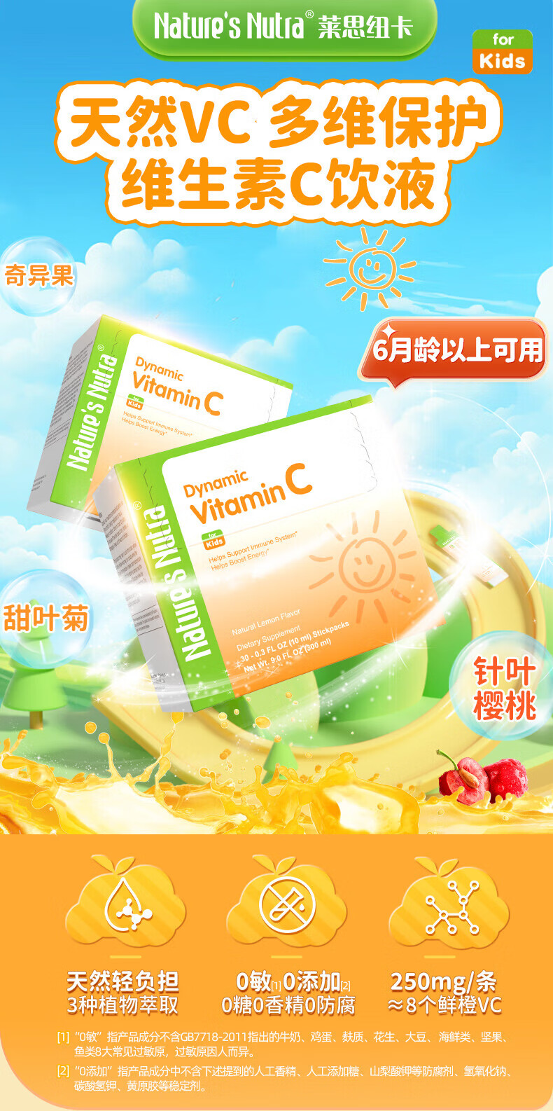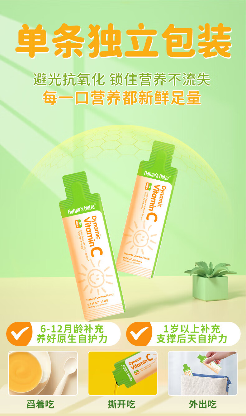 Nature's Nutra莱思纽卡儿童维生素C 婴幼儿增强免疫力宝宝VC 30条/盒 独立包装 【拍2赠5条】维生素C条包 30条*1盒