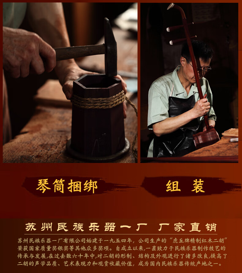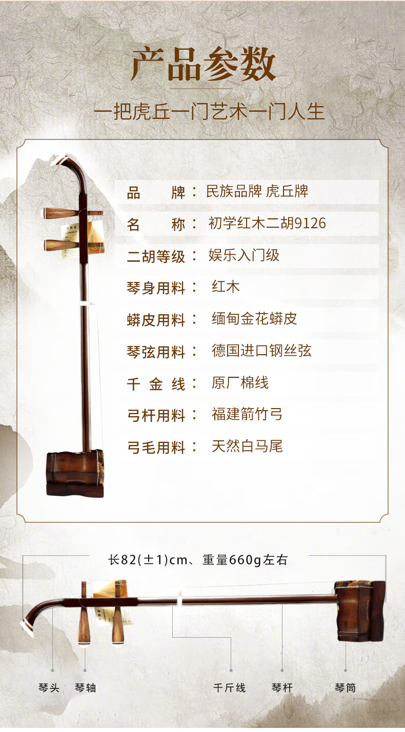 虎丘牌定制 红木初学练习级二胡苏州民族乐器一厂直销 9126