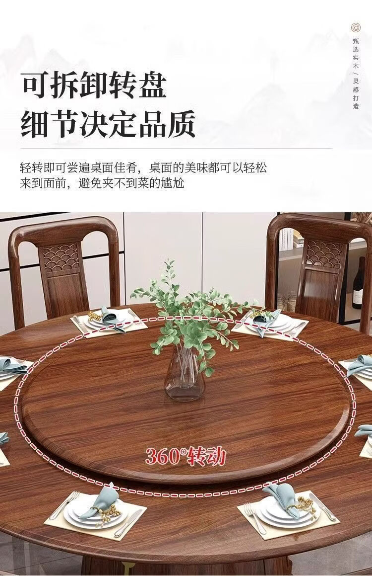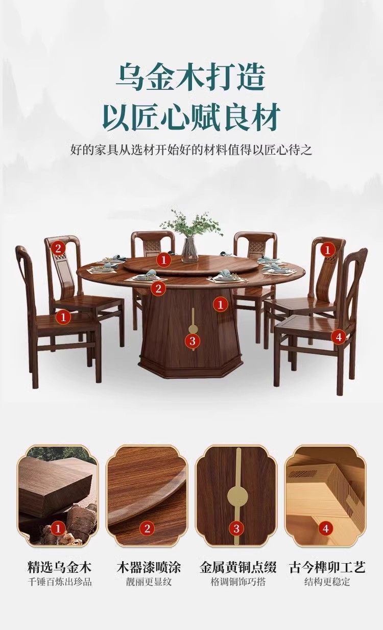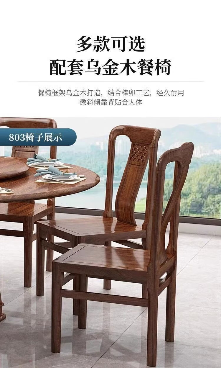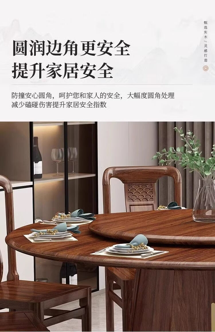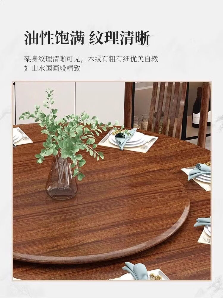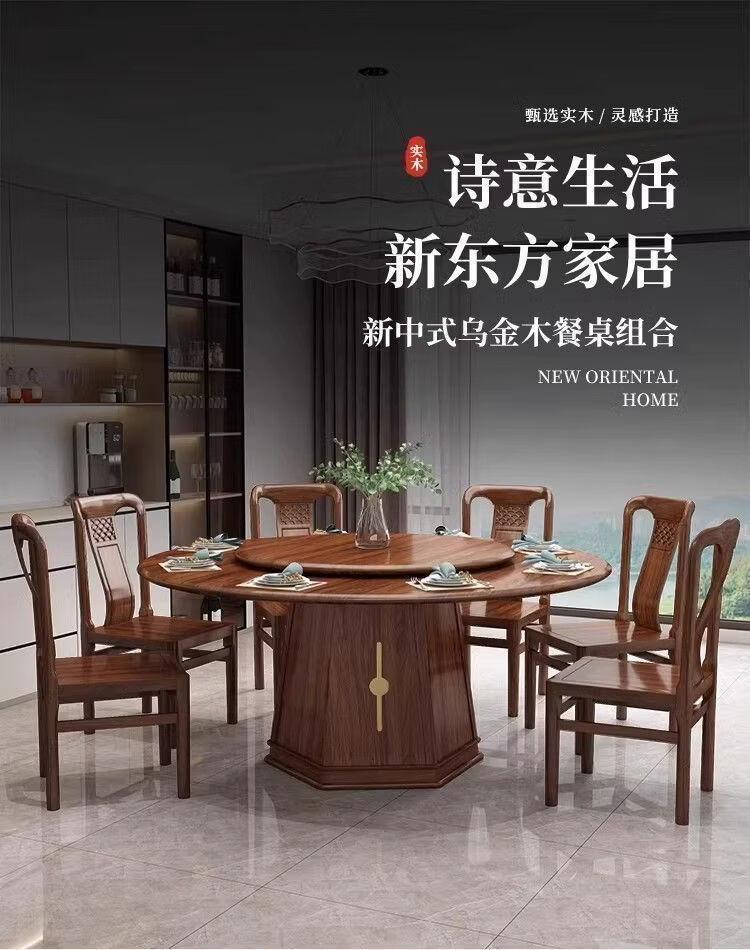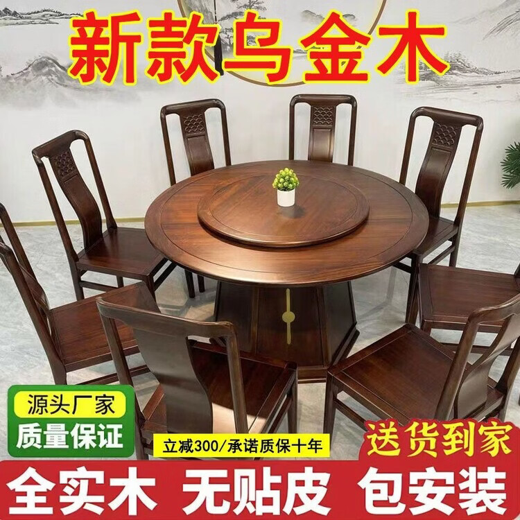 欣慕雅夏木新中式乌金木圆餐桌椅组合转盘现代中式家用餐厅全实木饭桌 1.3米加厚全实木餐桌【送实木转盘】 乌金木全实木单桌【不含椅子】