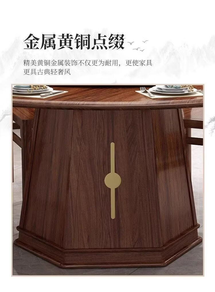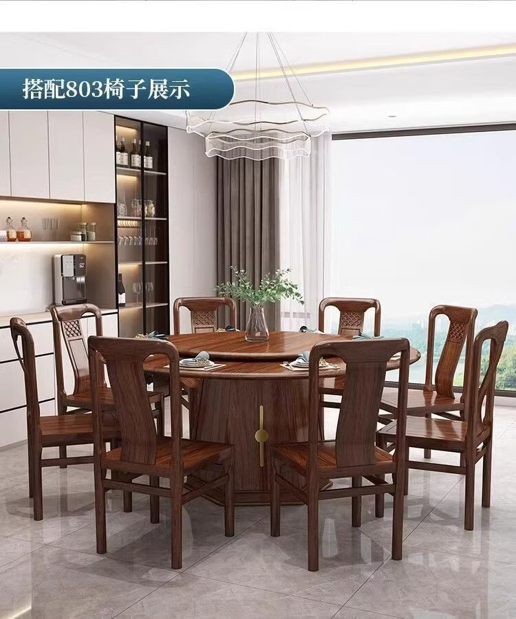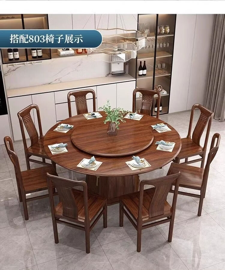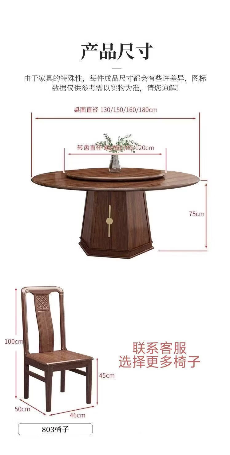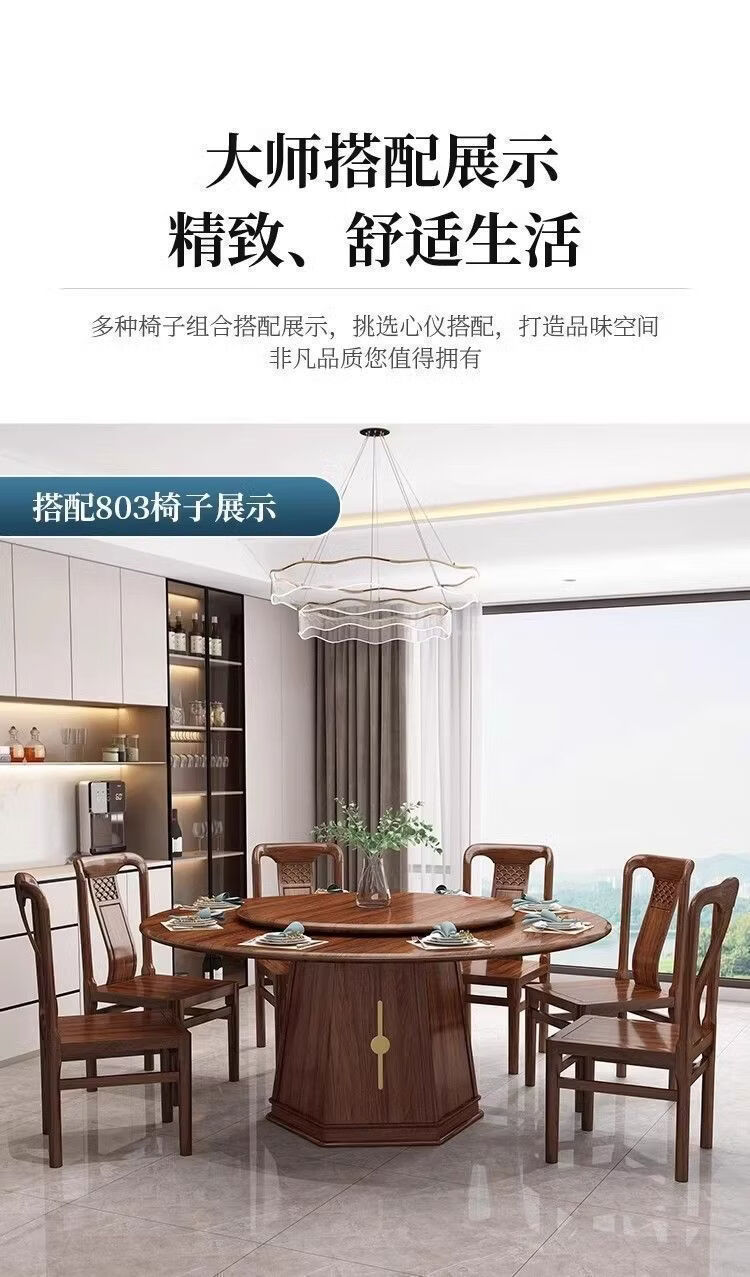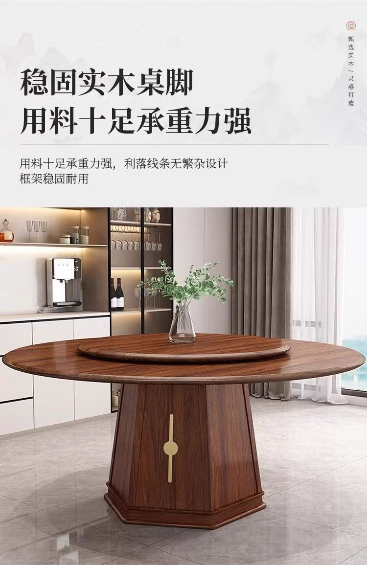 欣慕雅夏木新中式乌金木圆餐桌椅组合转盘现代中式家用餐厅全实木饭桌 1.3米加厚全实木餐桌【送实木转盘】 乌金木全实木单桌【不含椅子】