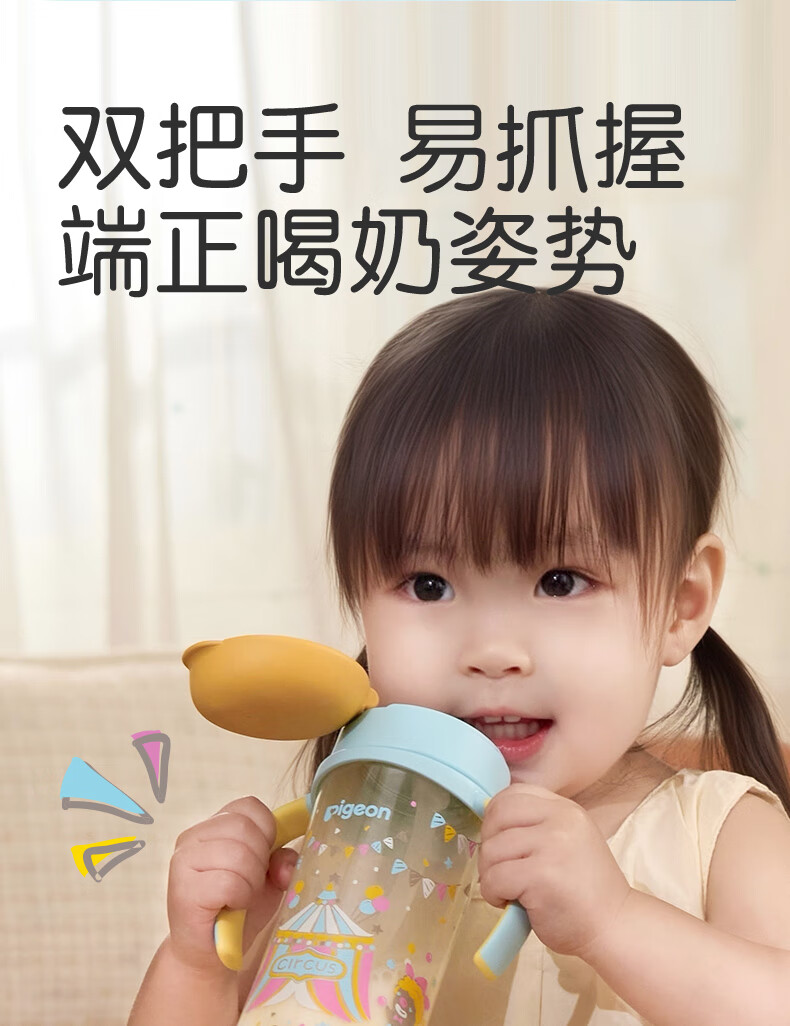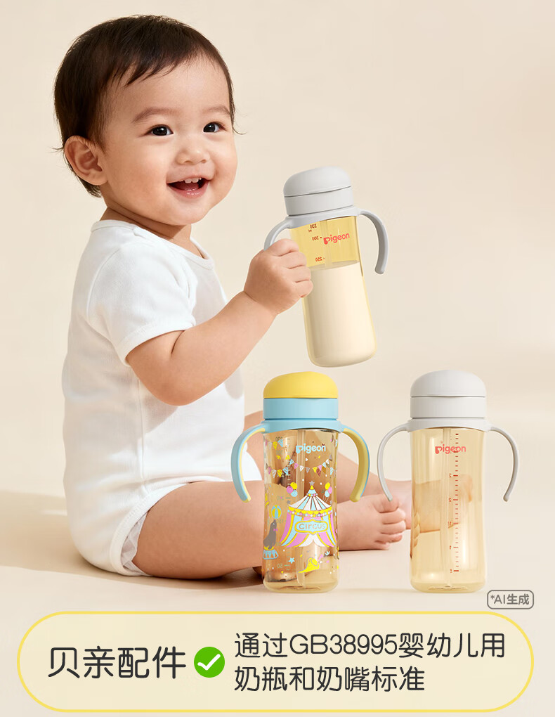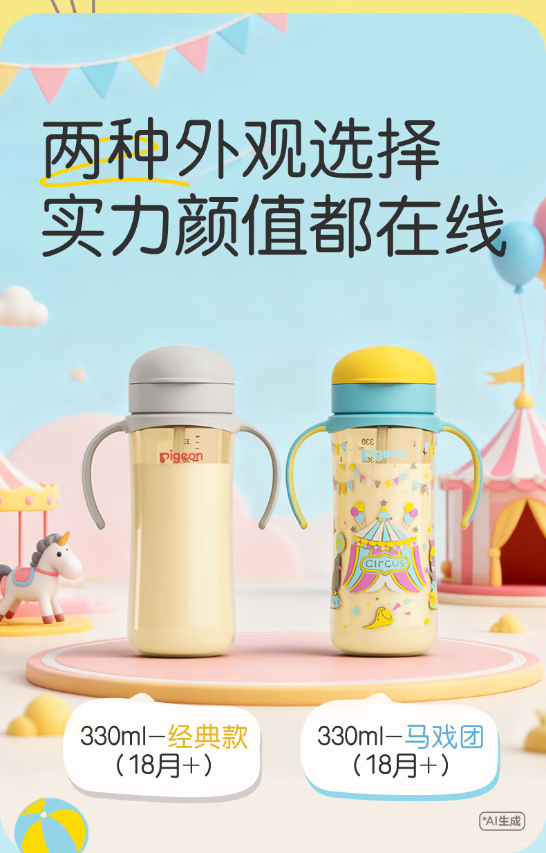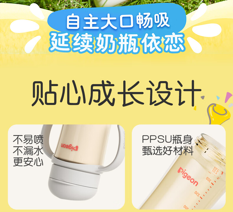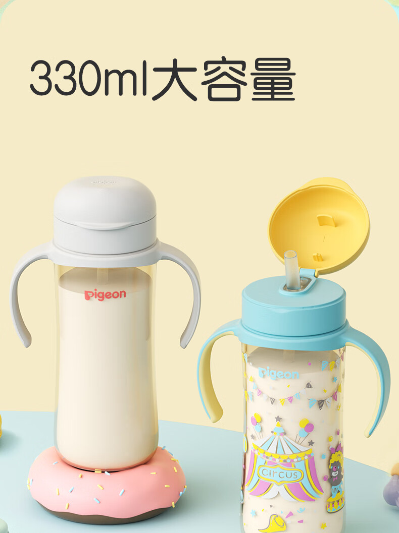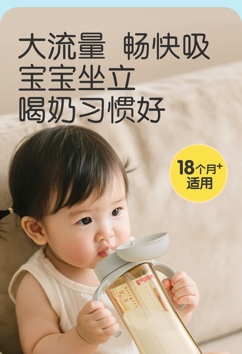贝亲(Pigeon)自然成长翻盖直饮吸管 大童奶瓶330ml 经典款 18月+ AA278