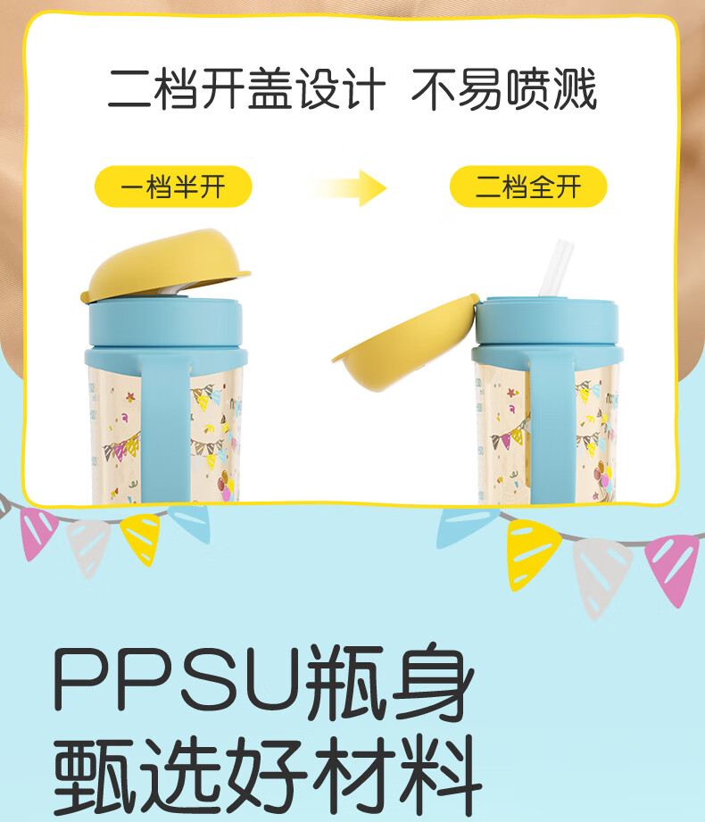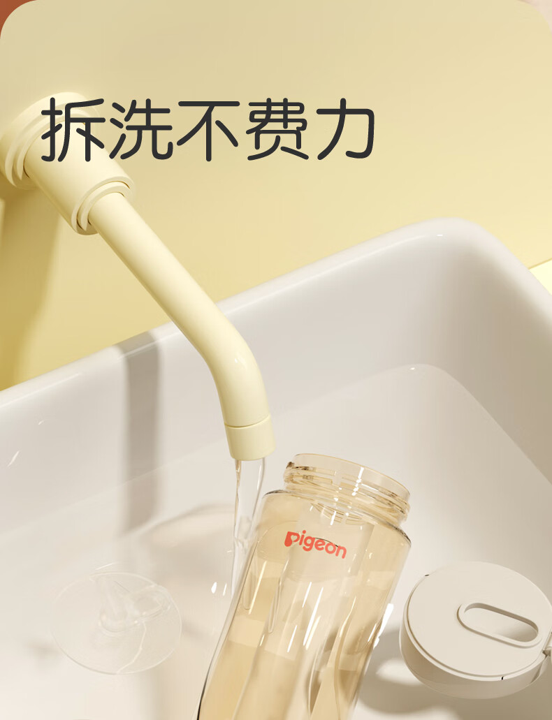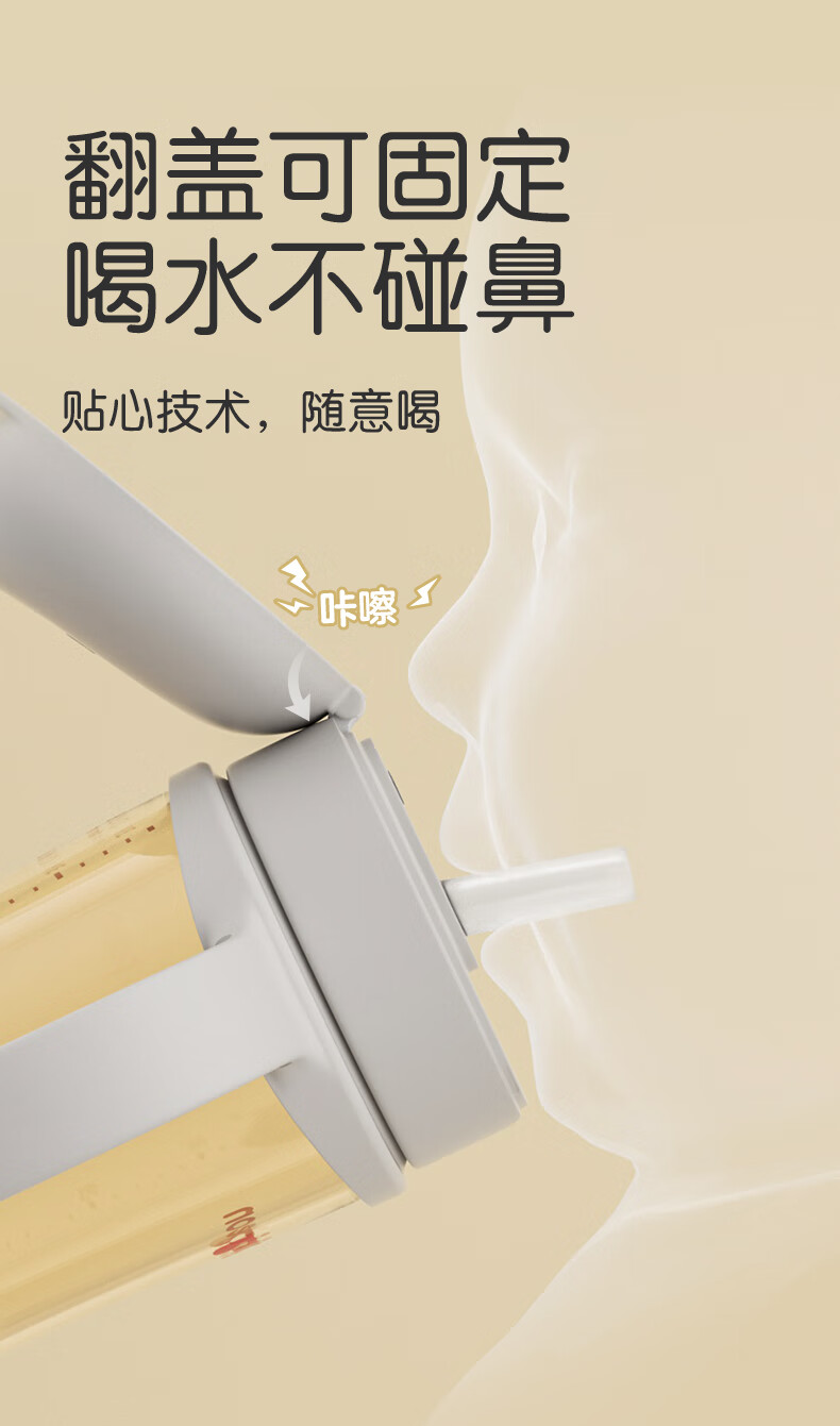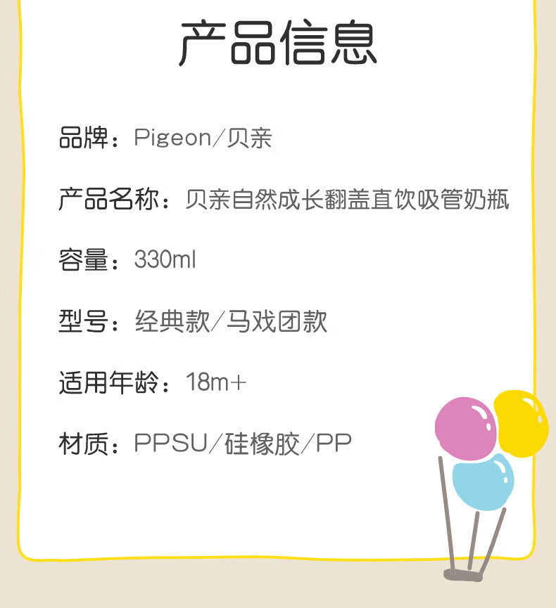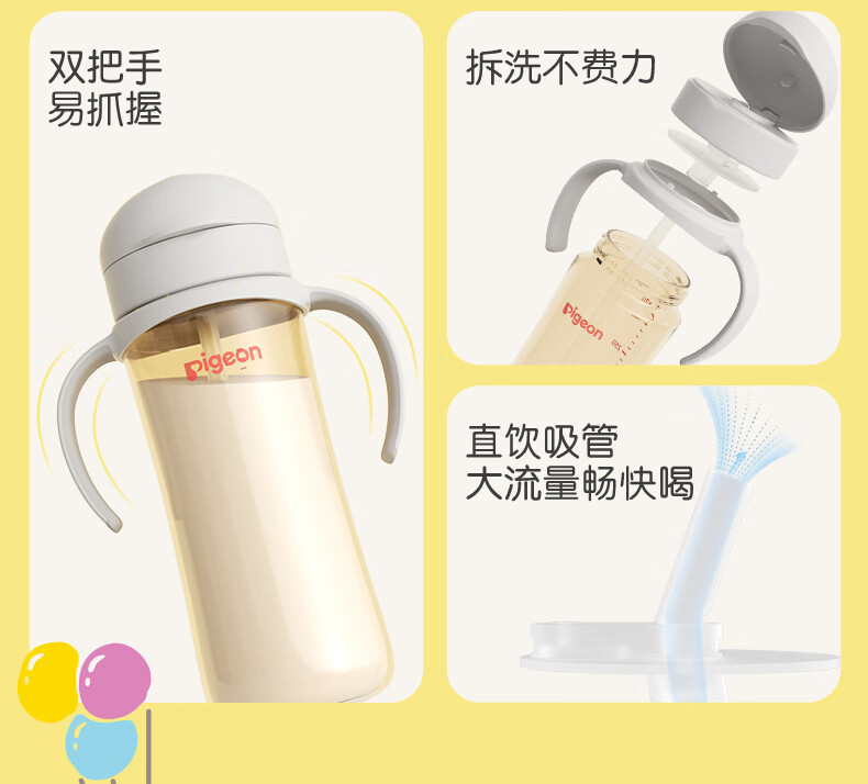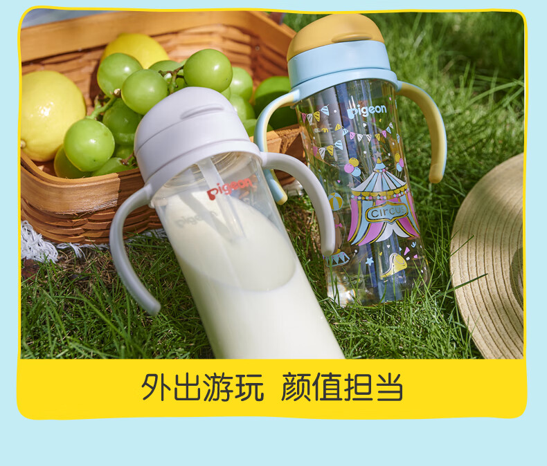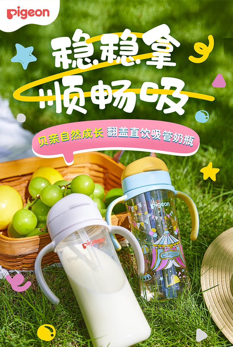 贝亲(Pigeon)自然成长翻盖直饮吸管 大童奶瓶330ml 经典款 18月+ AA278