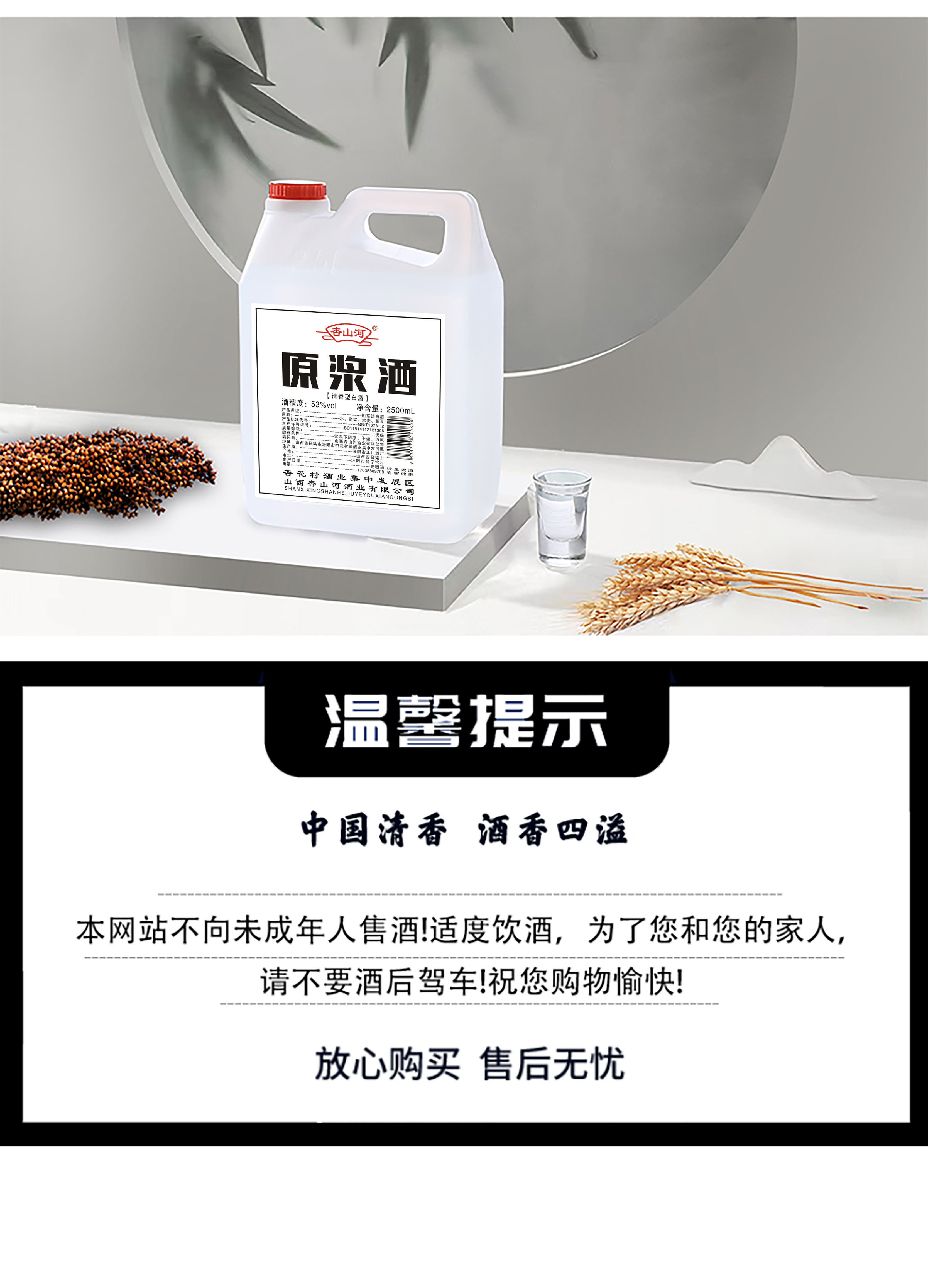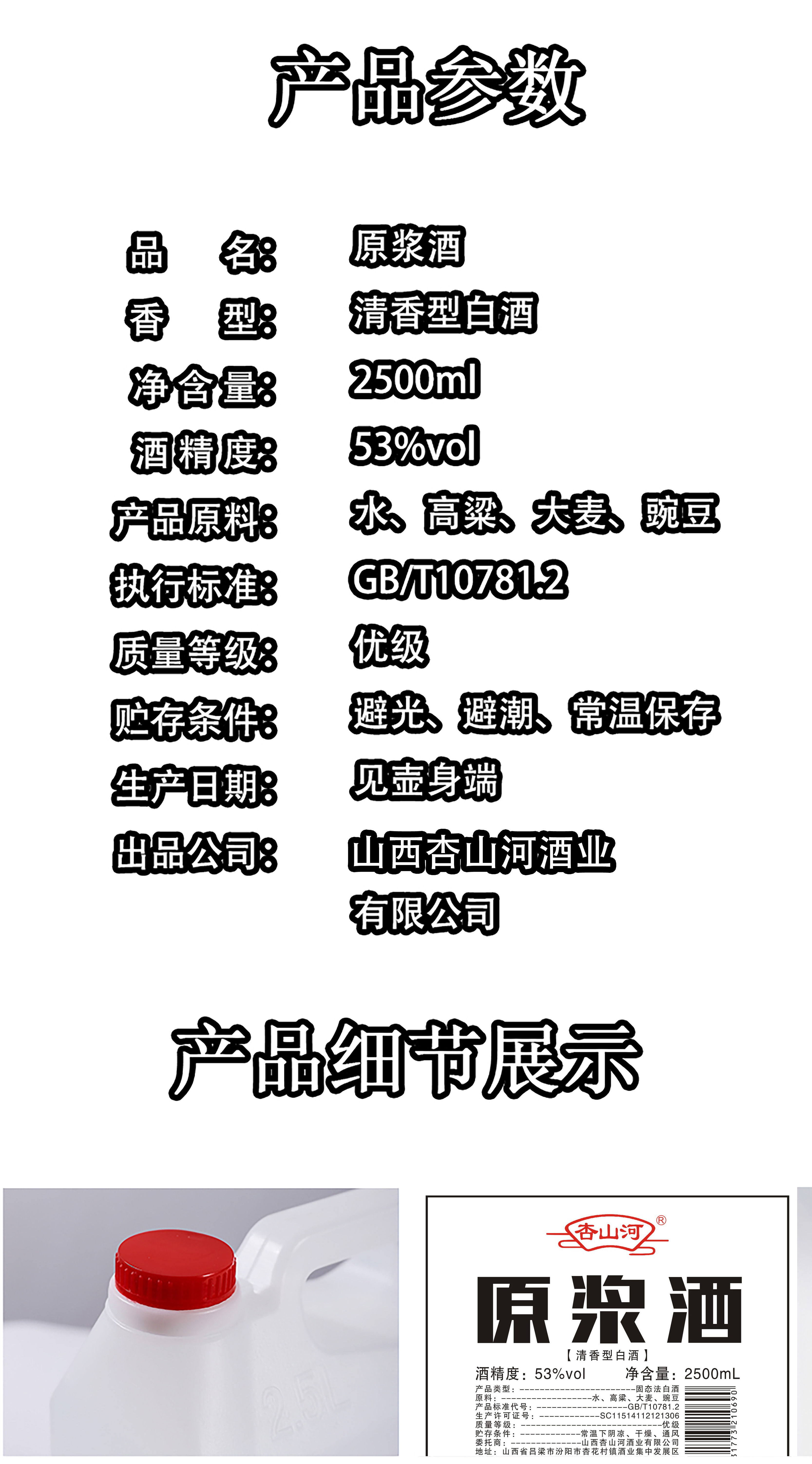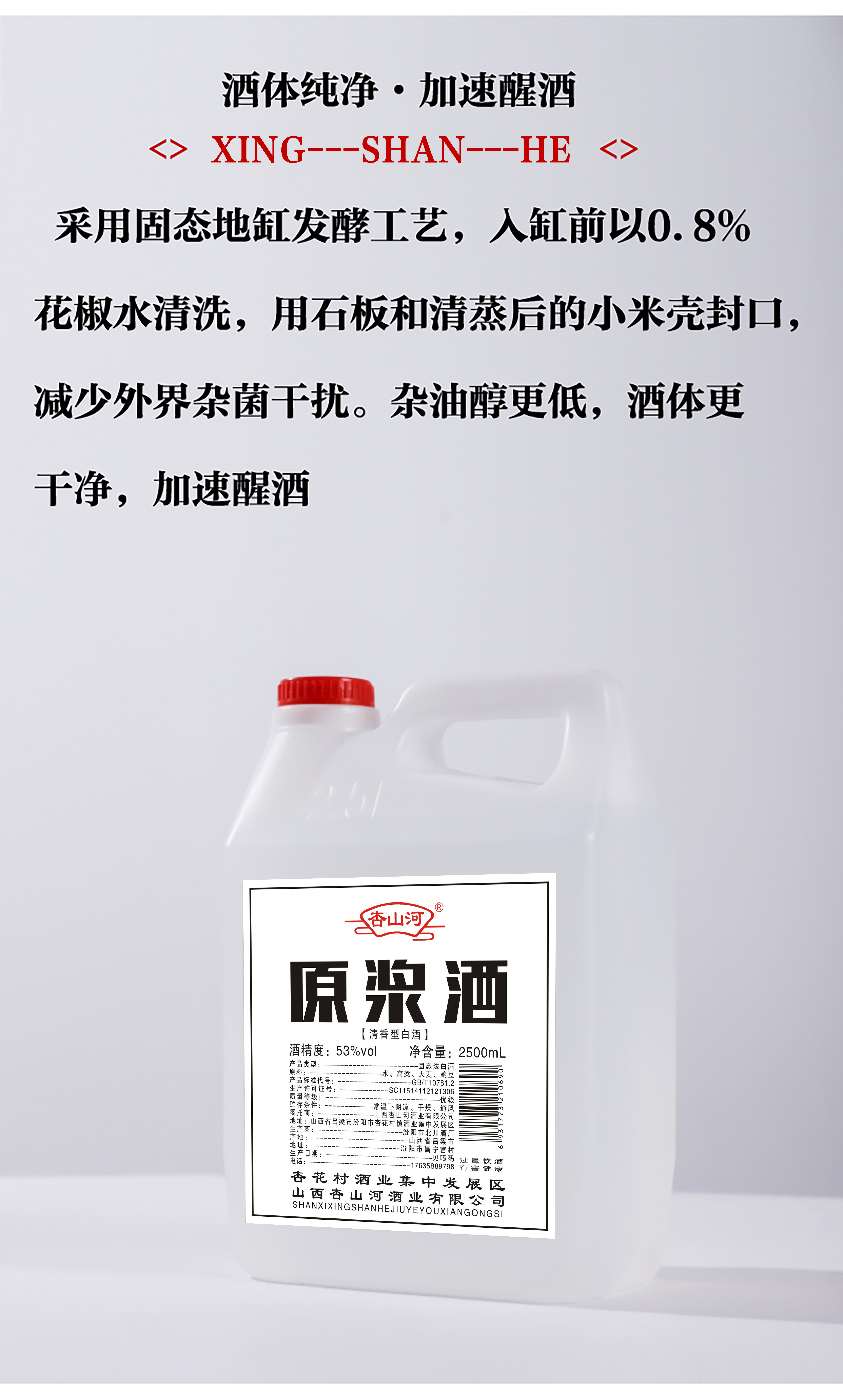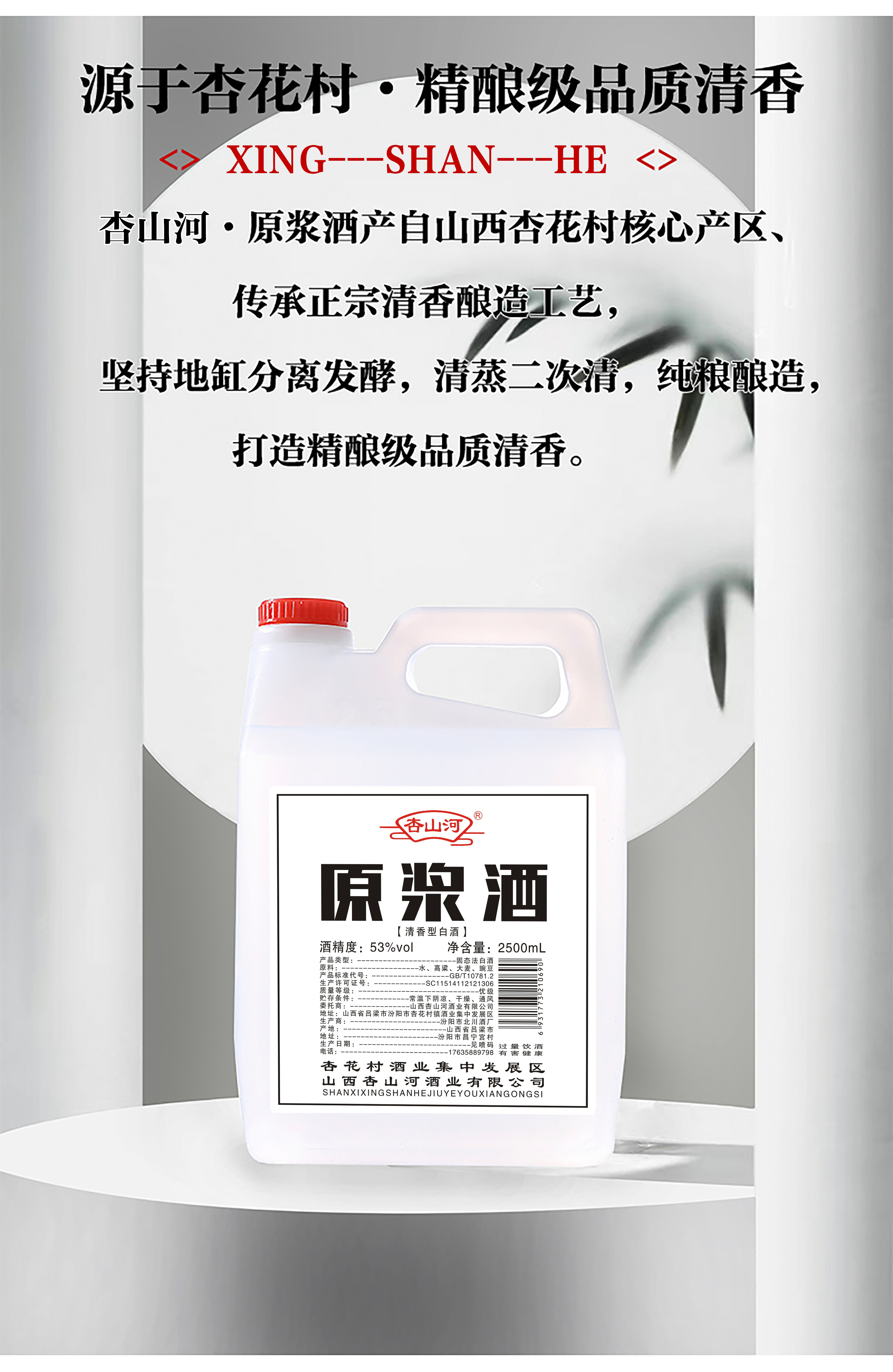 杏山河53度原浆酒清香型白酒 2500ML单桶装优级纯粮好酒 53度 2500mL 1桶