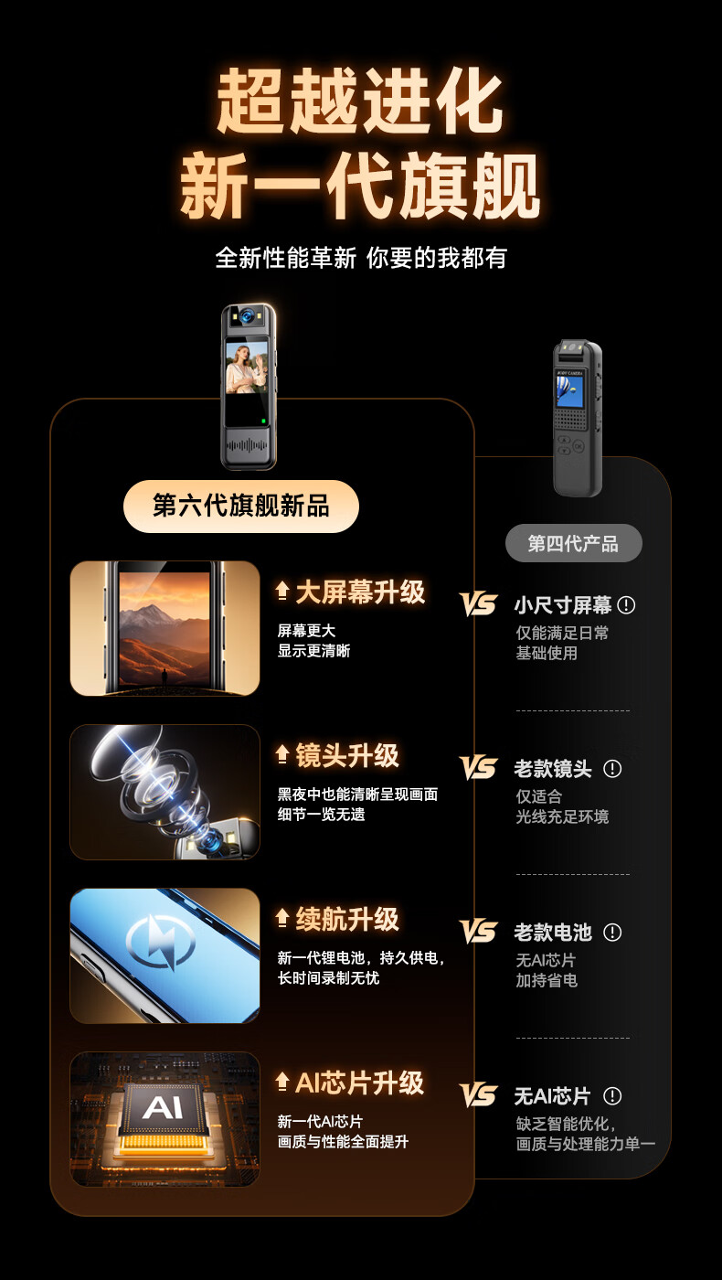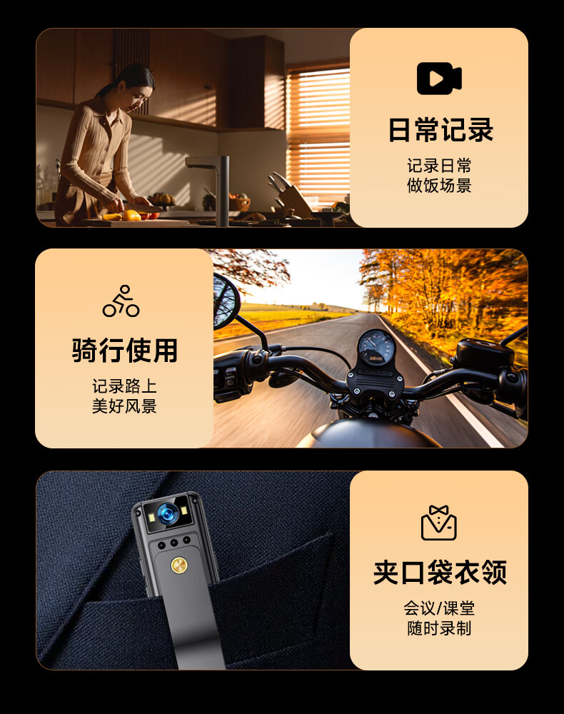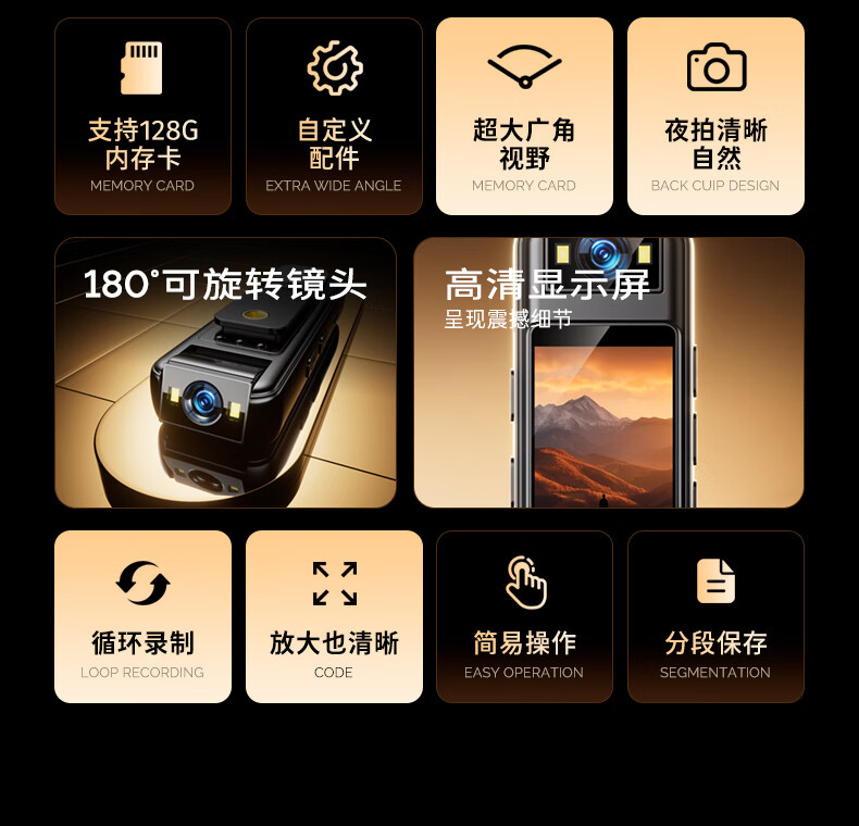 九目执法行车记录仪随身高清夜视执法仪微型胸前小型运动相机会议工作留痕记录仪 【带屏直连+功能支架*2】超长续航+无网录像 32GB内存版 2025新品限时7折优惠